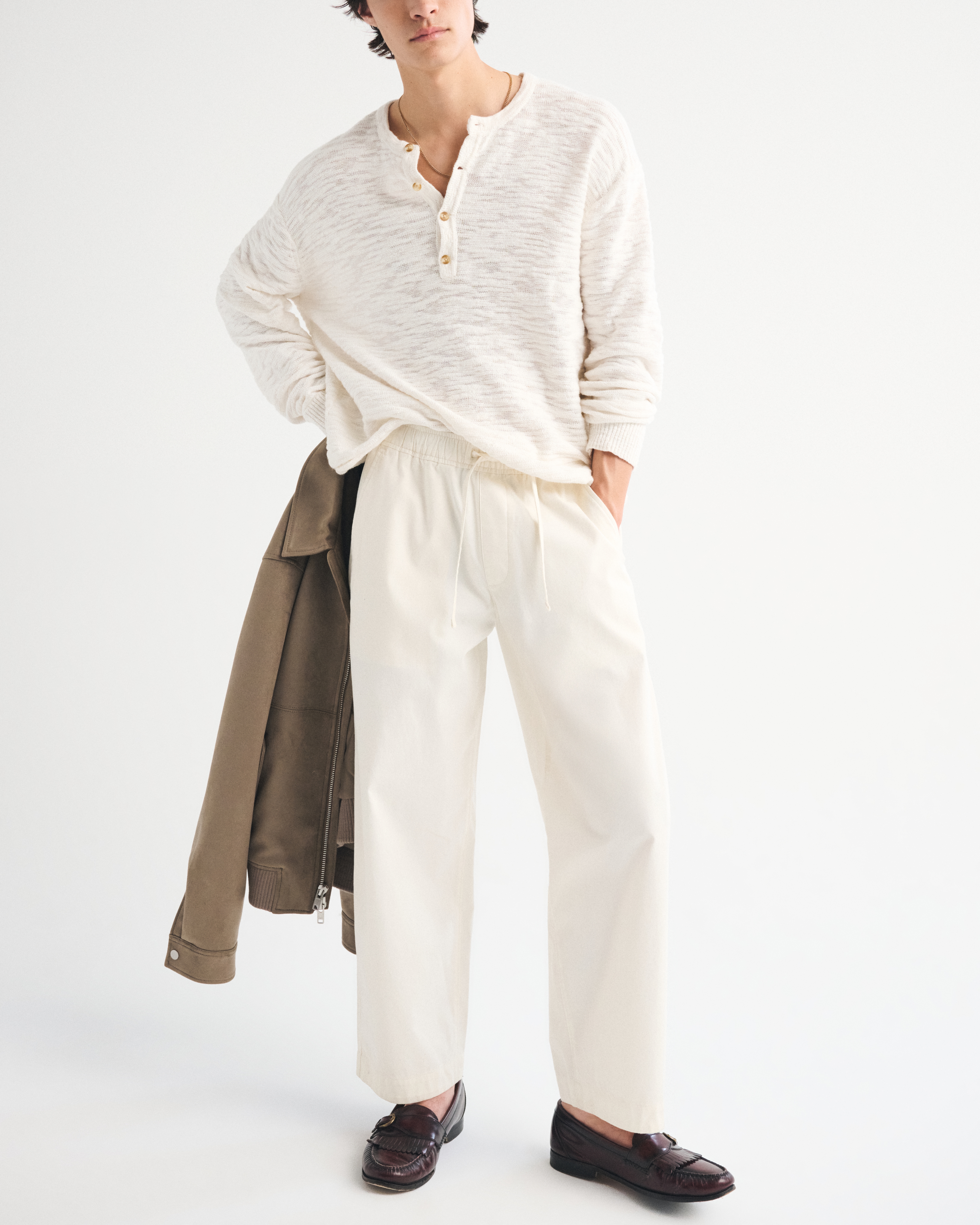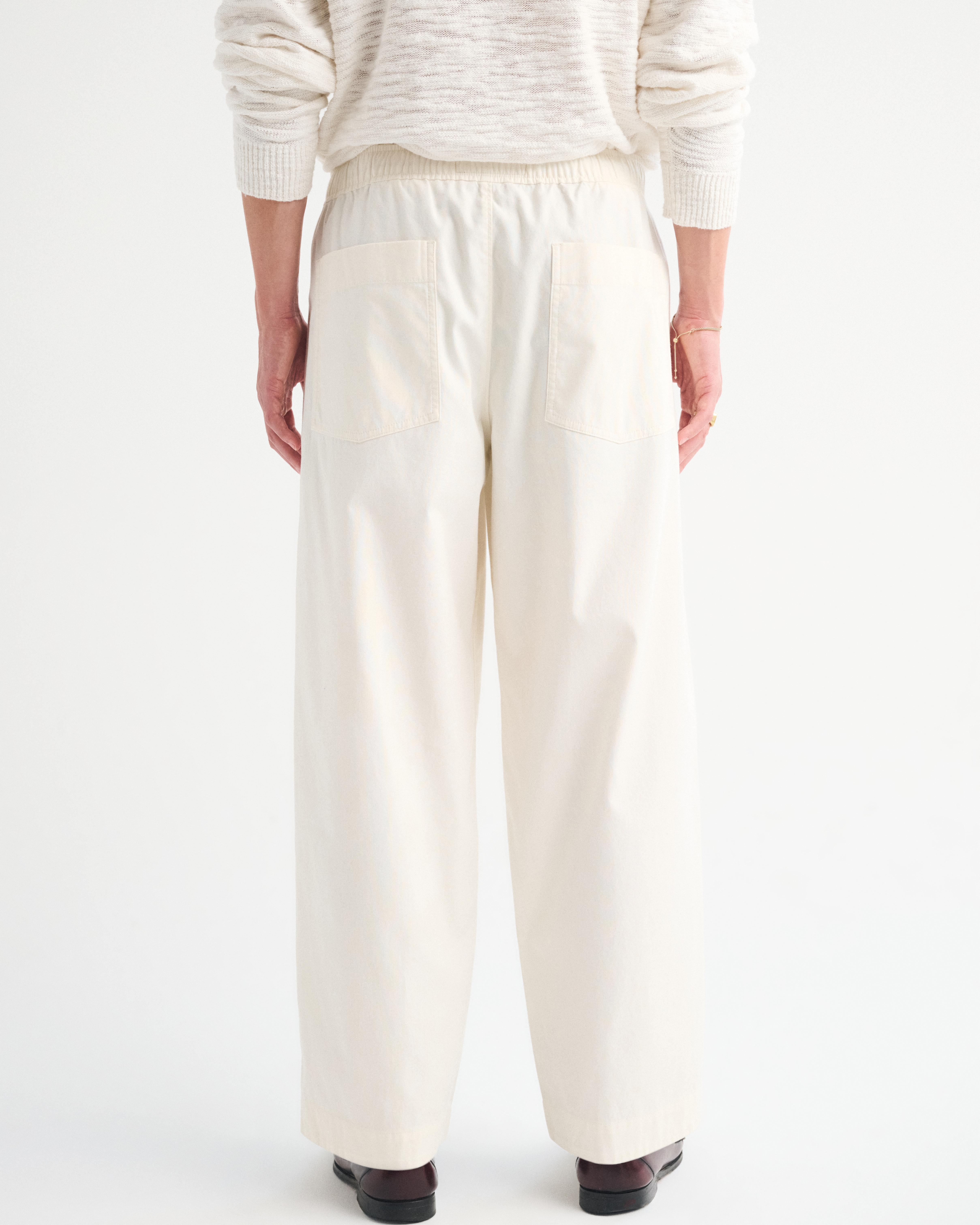 Our comfortable pull-on style pants in a lightweight poplin fabric. Fits wide through the leg and sits higher at the ankle. Features a shorter inseam designed to hit above the ankle and give a cleaner visual. For a classic visual, choose a longer inseam. Imported.