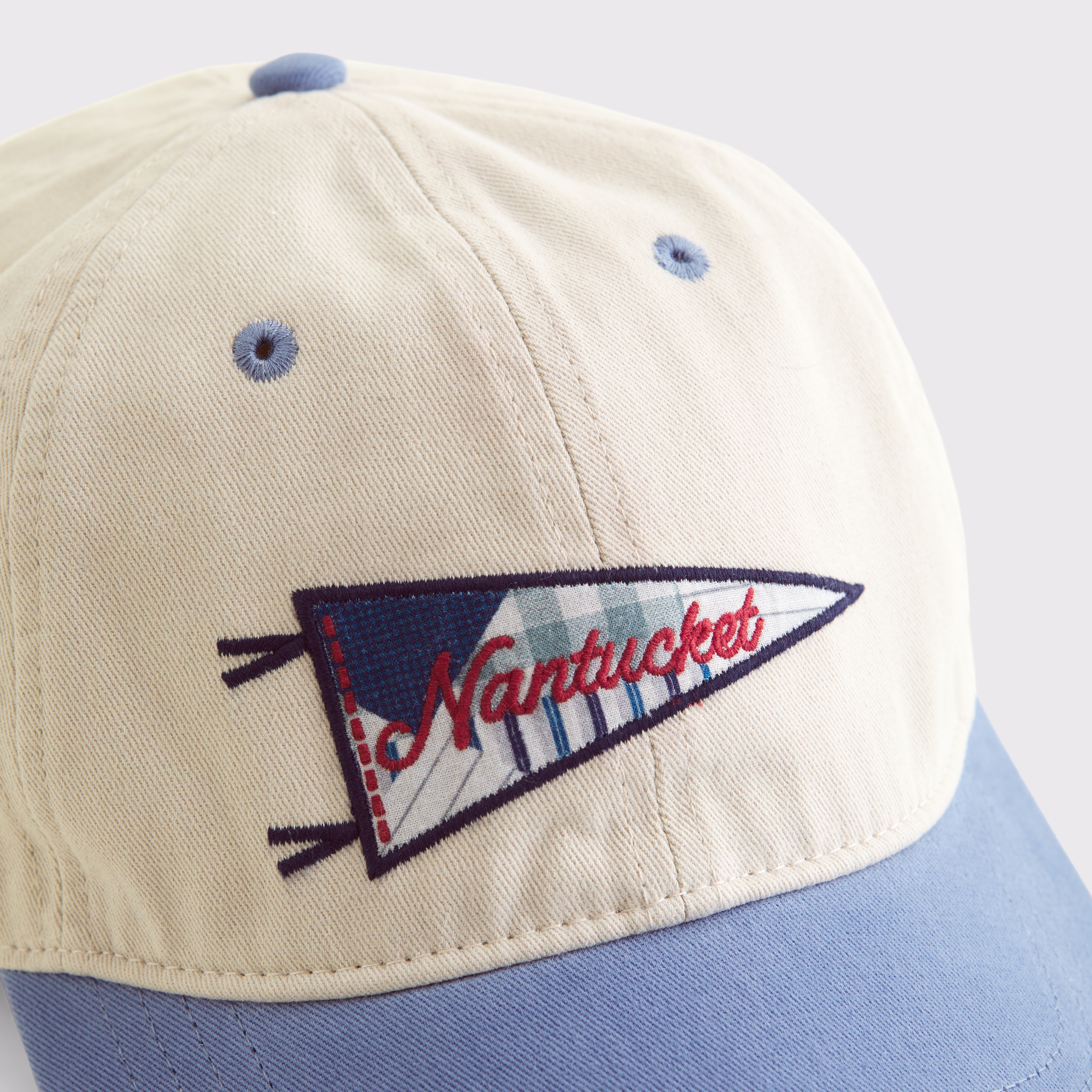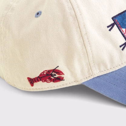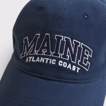 6-panel baseball hat in a soft twill fabric. Features a metal fastener at back and embroidered Maine-inspired graphic detail. Imported.