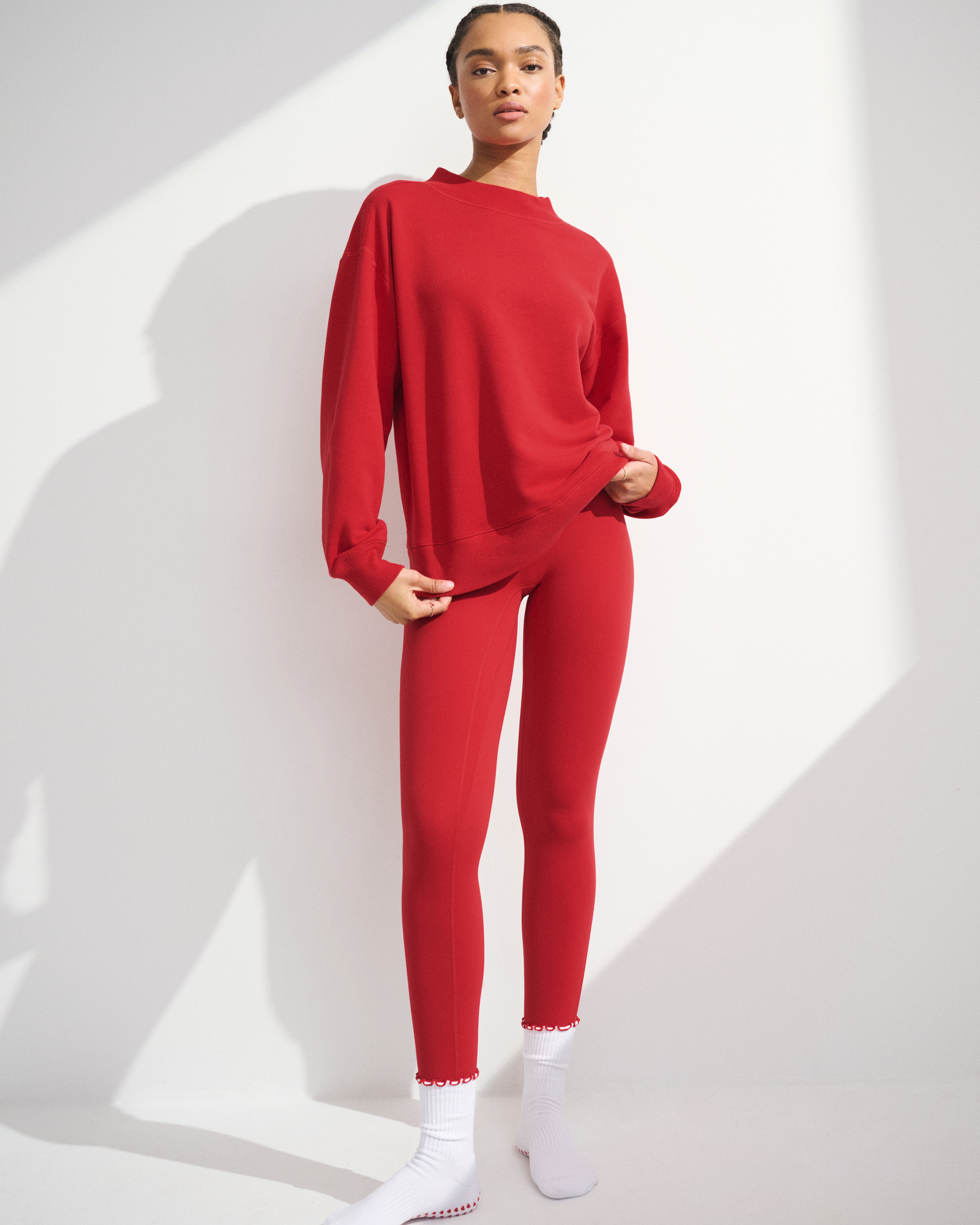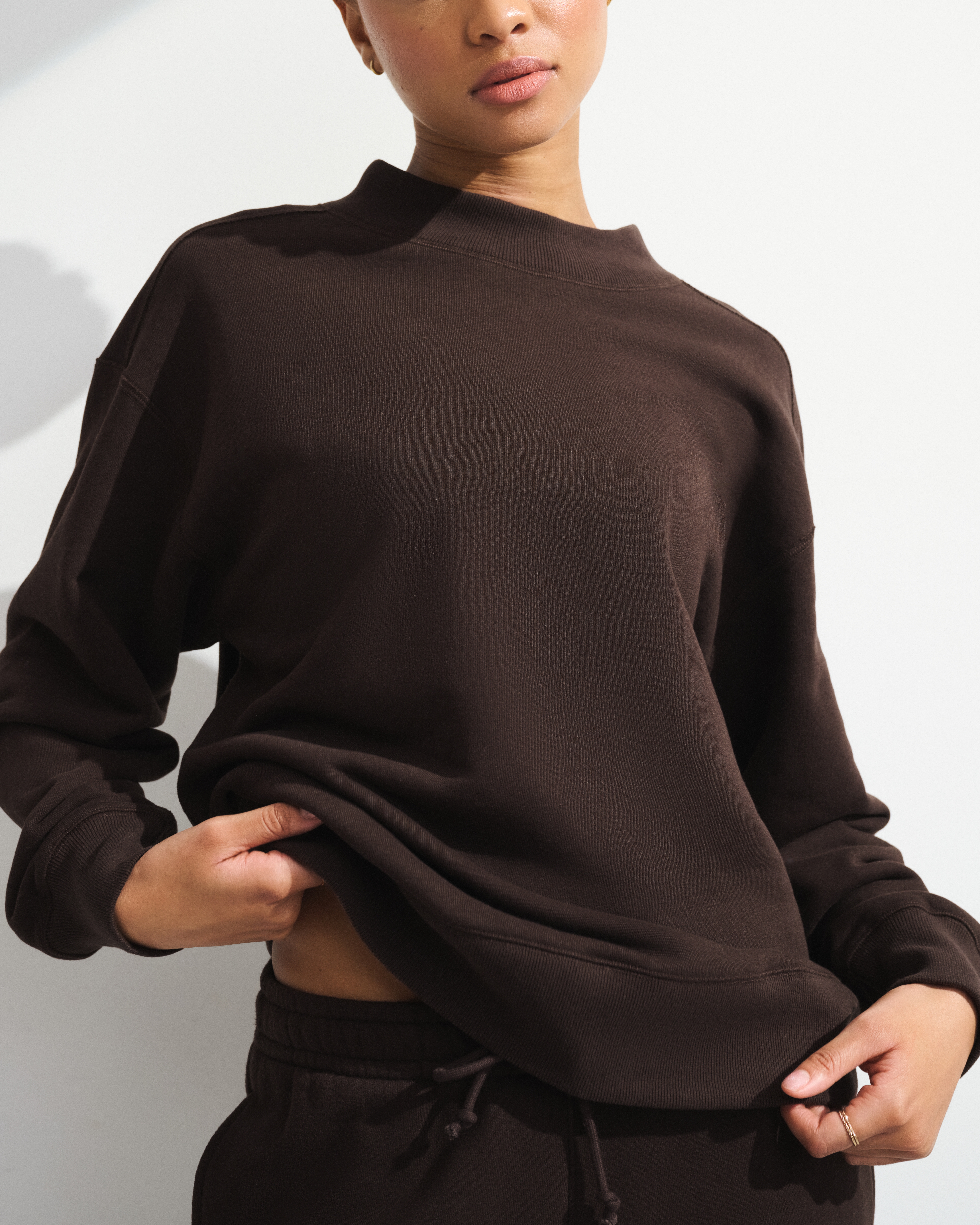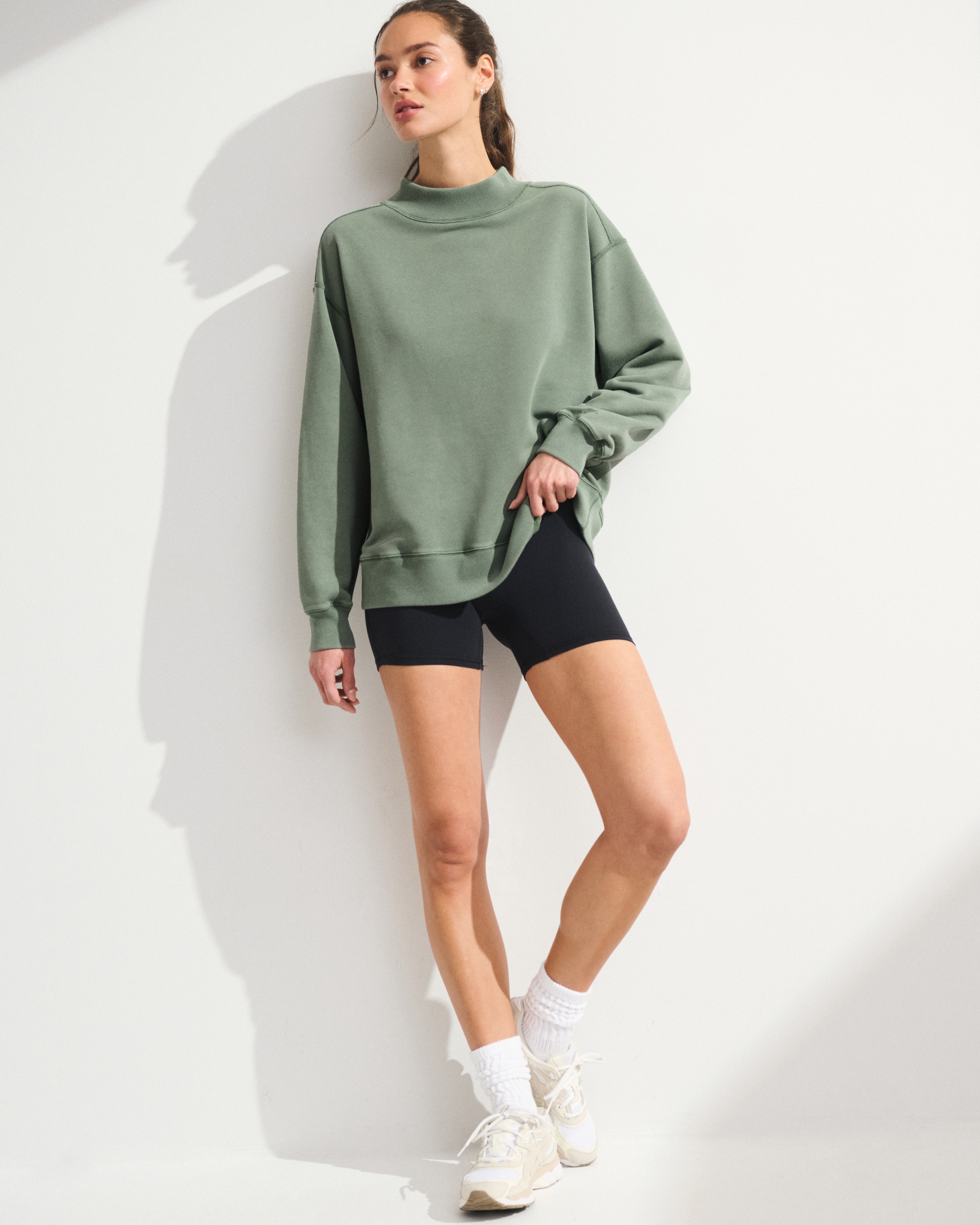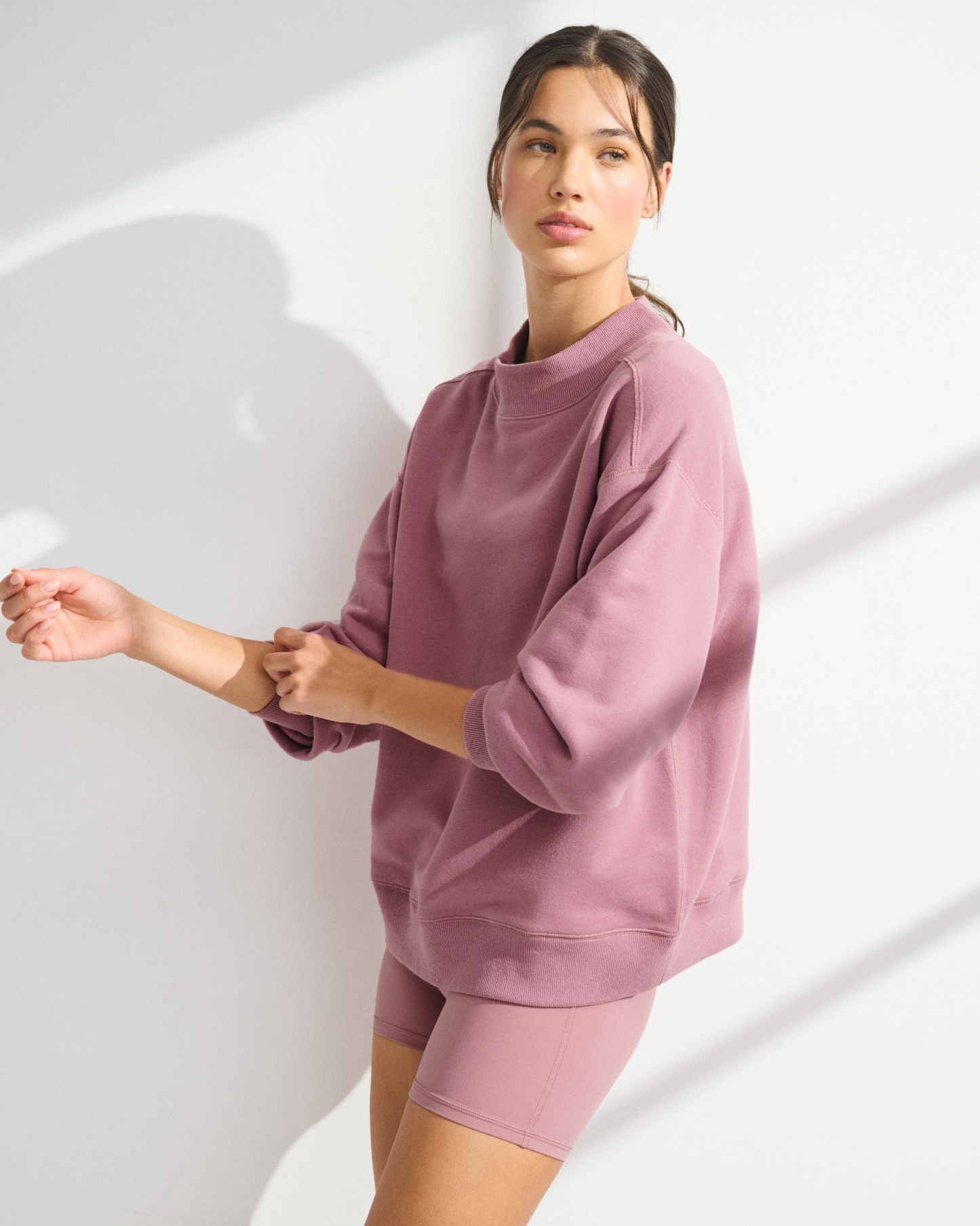 YPB On The Go Collection: Made to move—easy layers for walks, weekend trips and everything in between. This comfortable active sweatshirt is in our super soft French terry fleece fabric. Features seaming details, banded hem and cuffs and a mock crew neckline. Perfect to throw on pre- or post-workout. Imported.