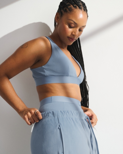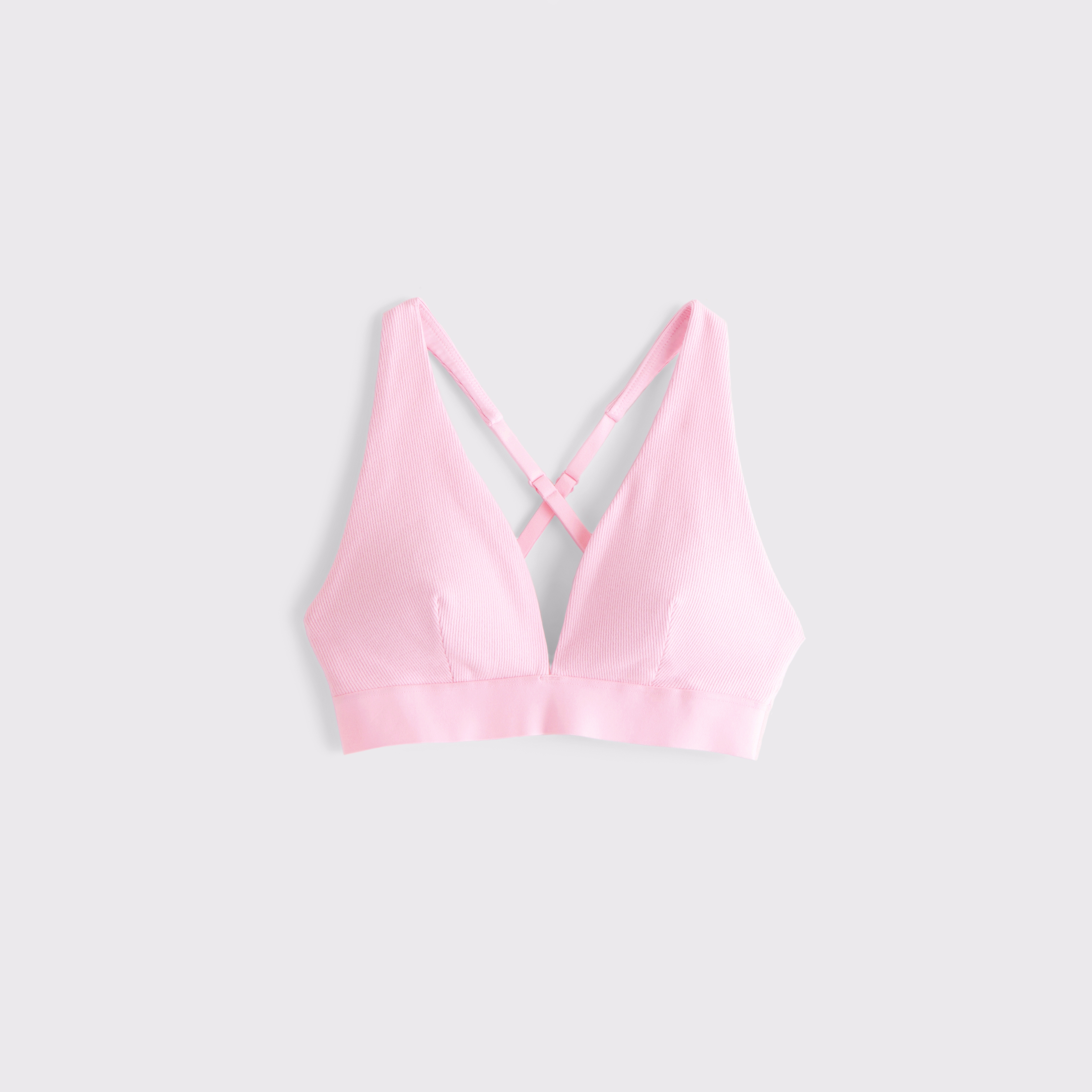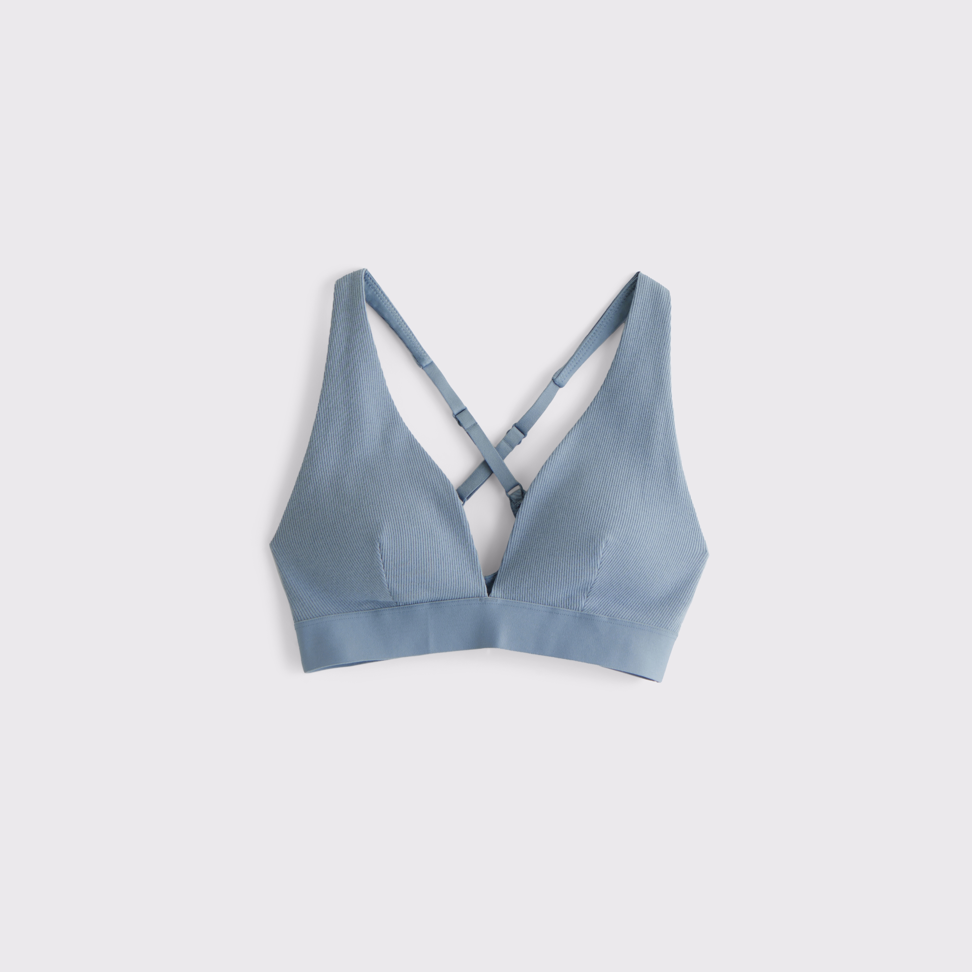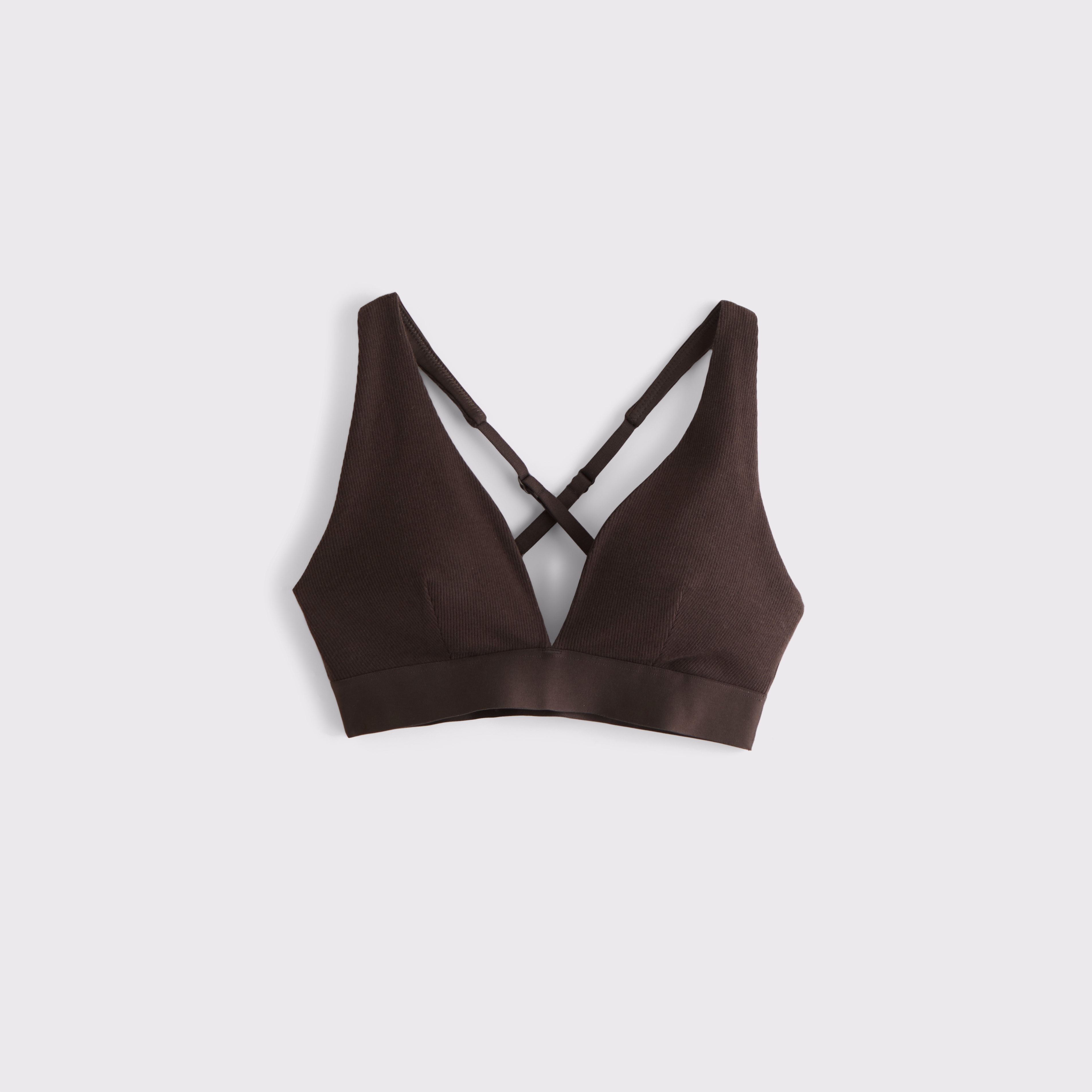 Our lounge bra in our active superSOFT rib fabric and core length. Our superSOFT rib fabric is ribbed and velvety on the outside for a cozy feel with a cooling, smooth interior lining that keeps you comfortable. Features adjustable cross-back straps, removable pads, all-over ribbed detail and a plunging V-neckline. Imported.