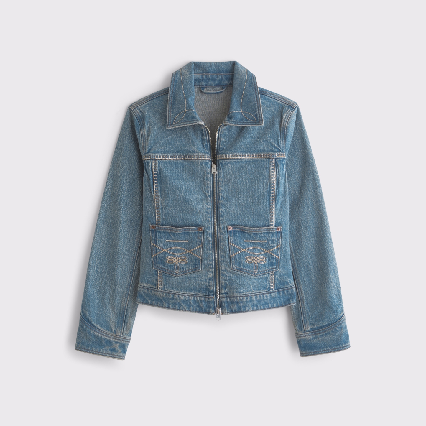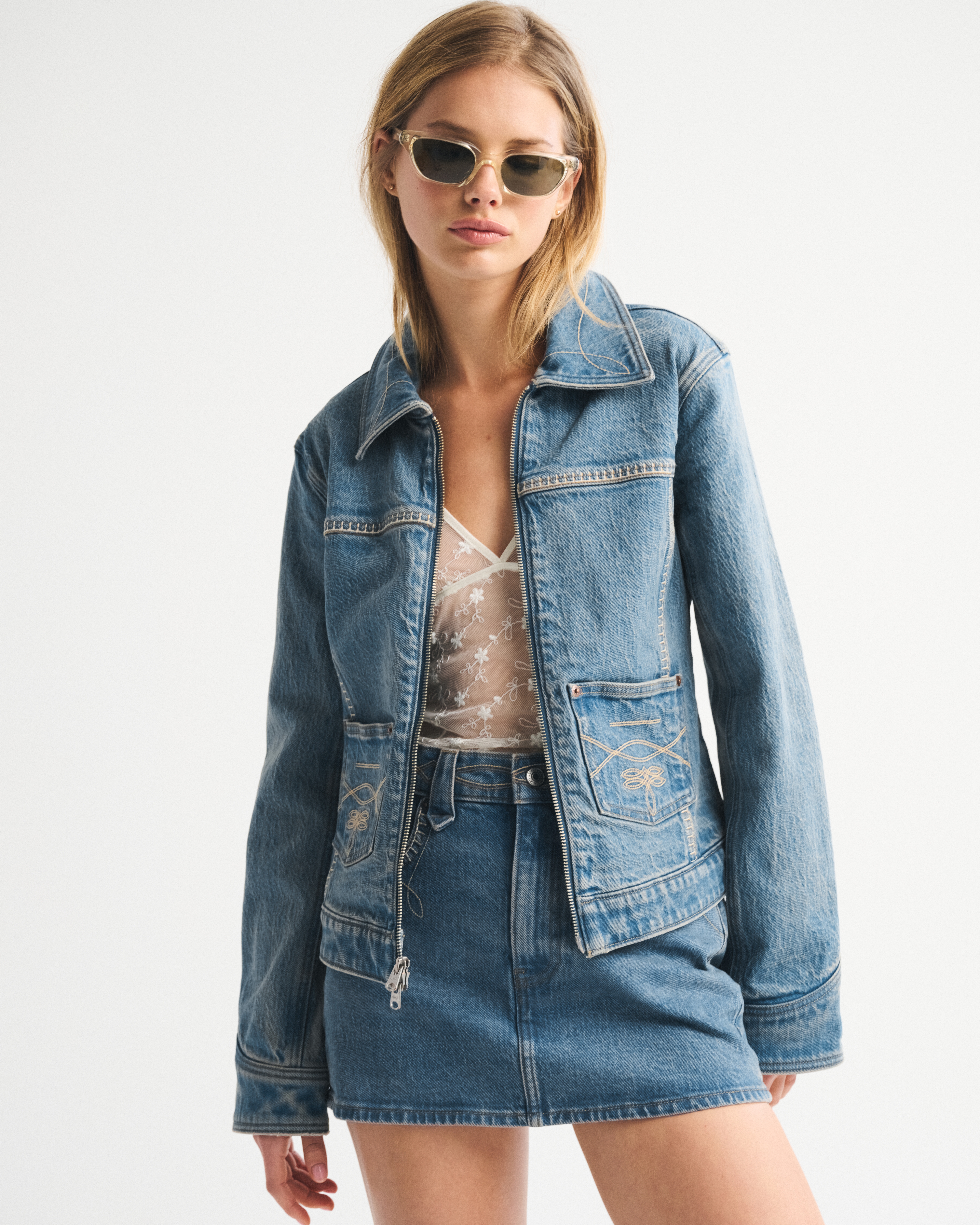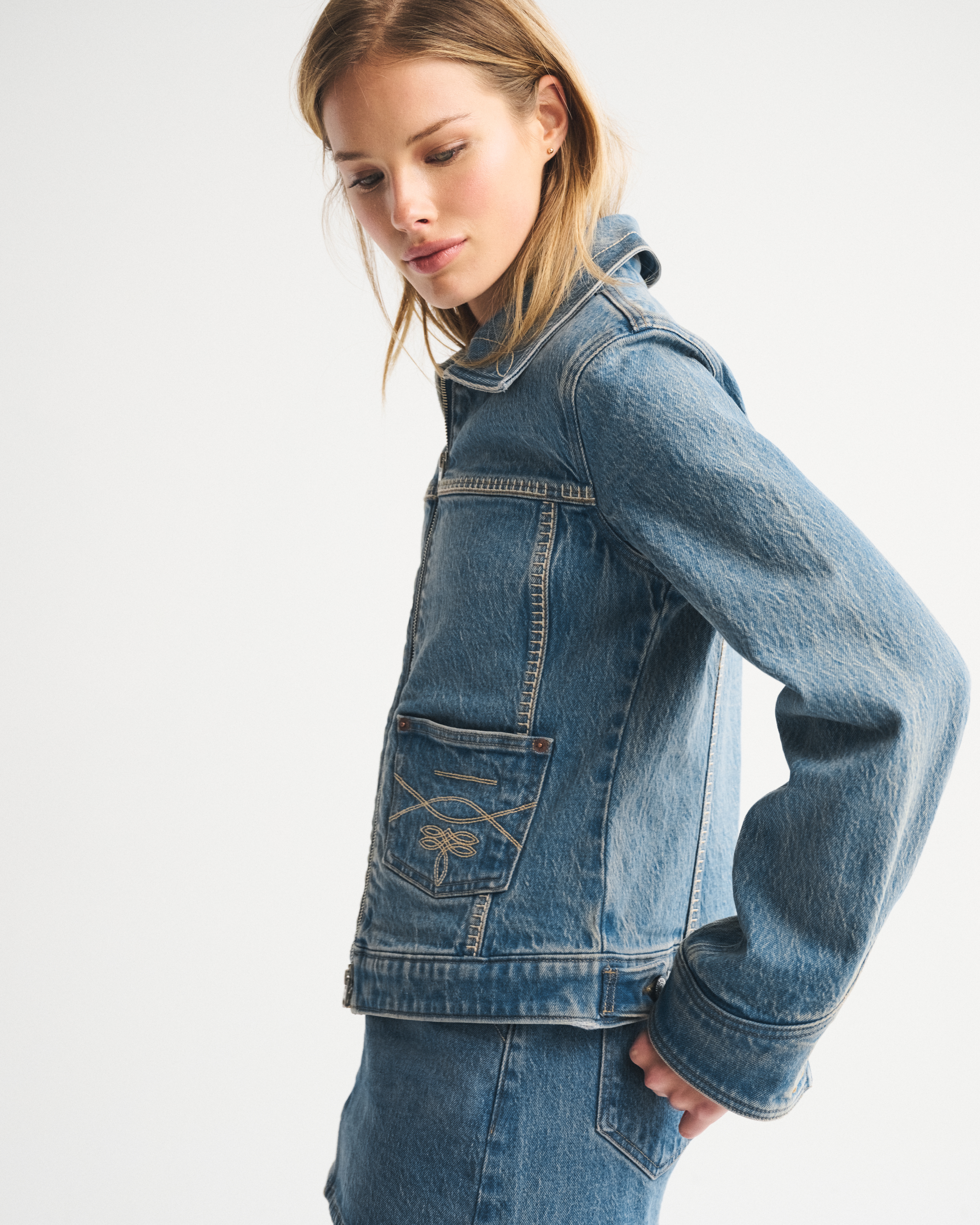 Introducing A&F x Kemo Sabe—a limited collection of timeless western pieces that brings together the rich heritage of both brands. This jacket is in our classic denim fabric. Features a zip-up front, embroidered details throughout, fold-down collar and front pockets. Imported.