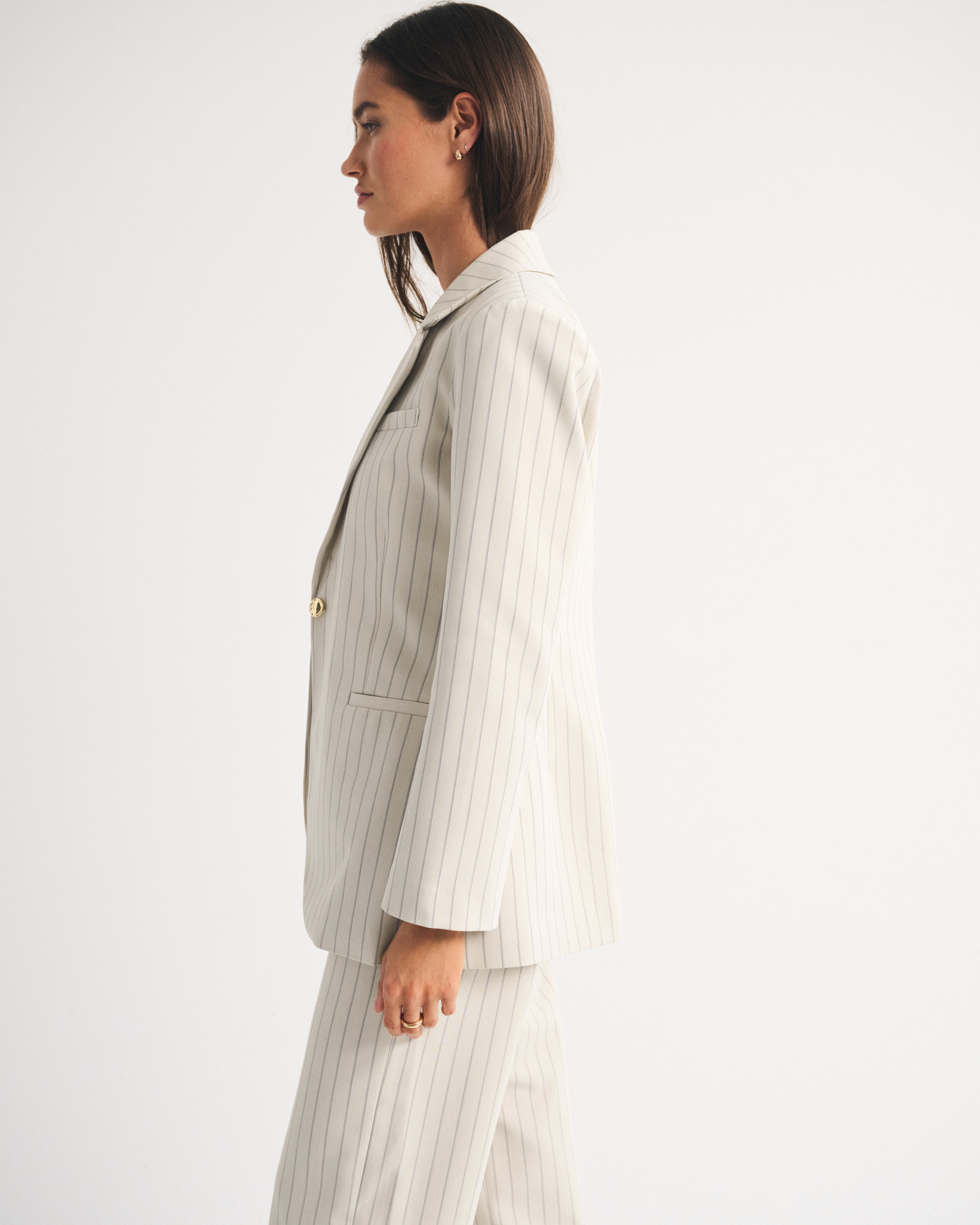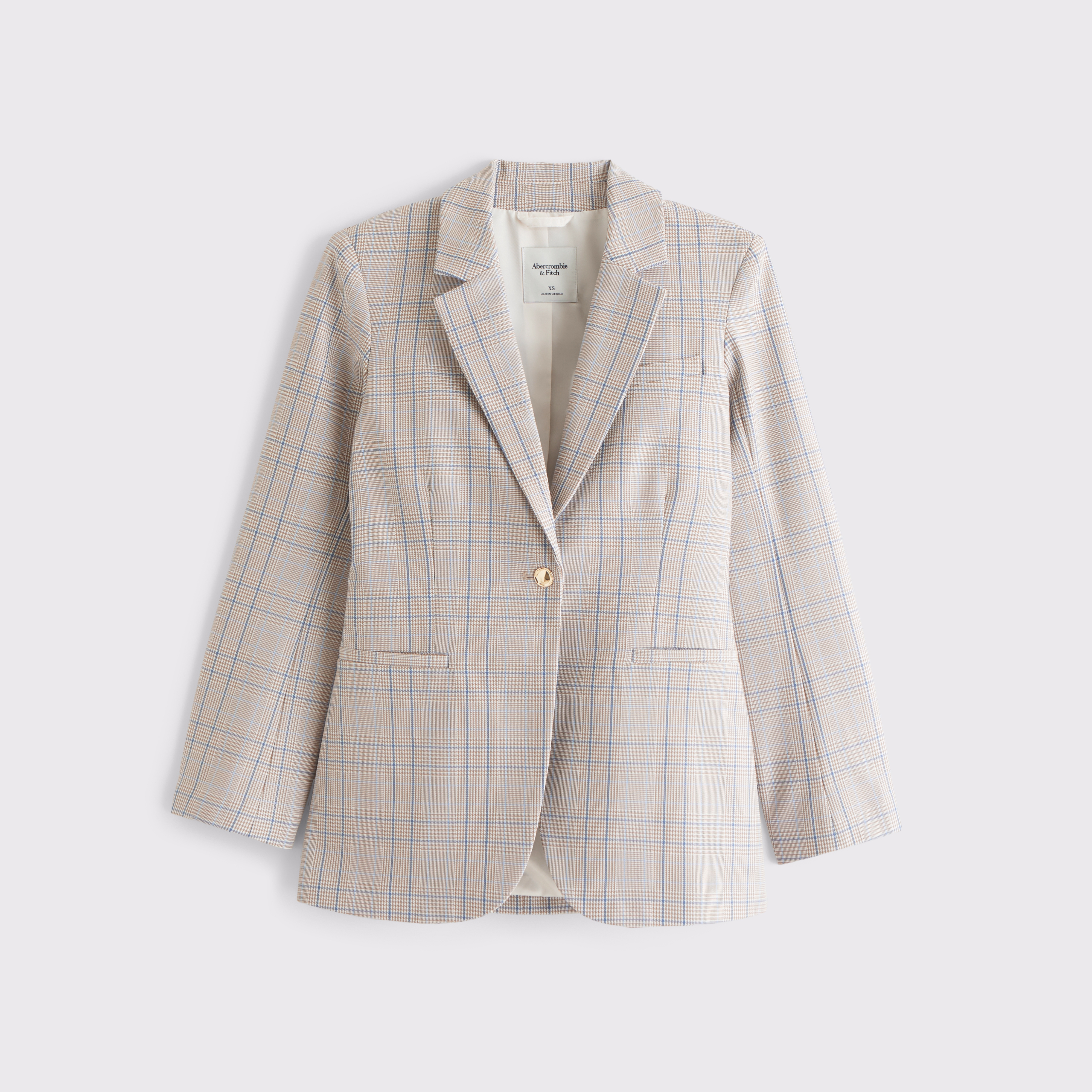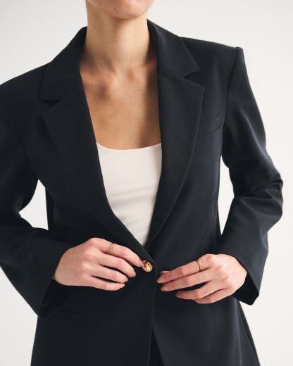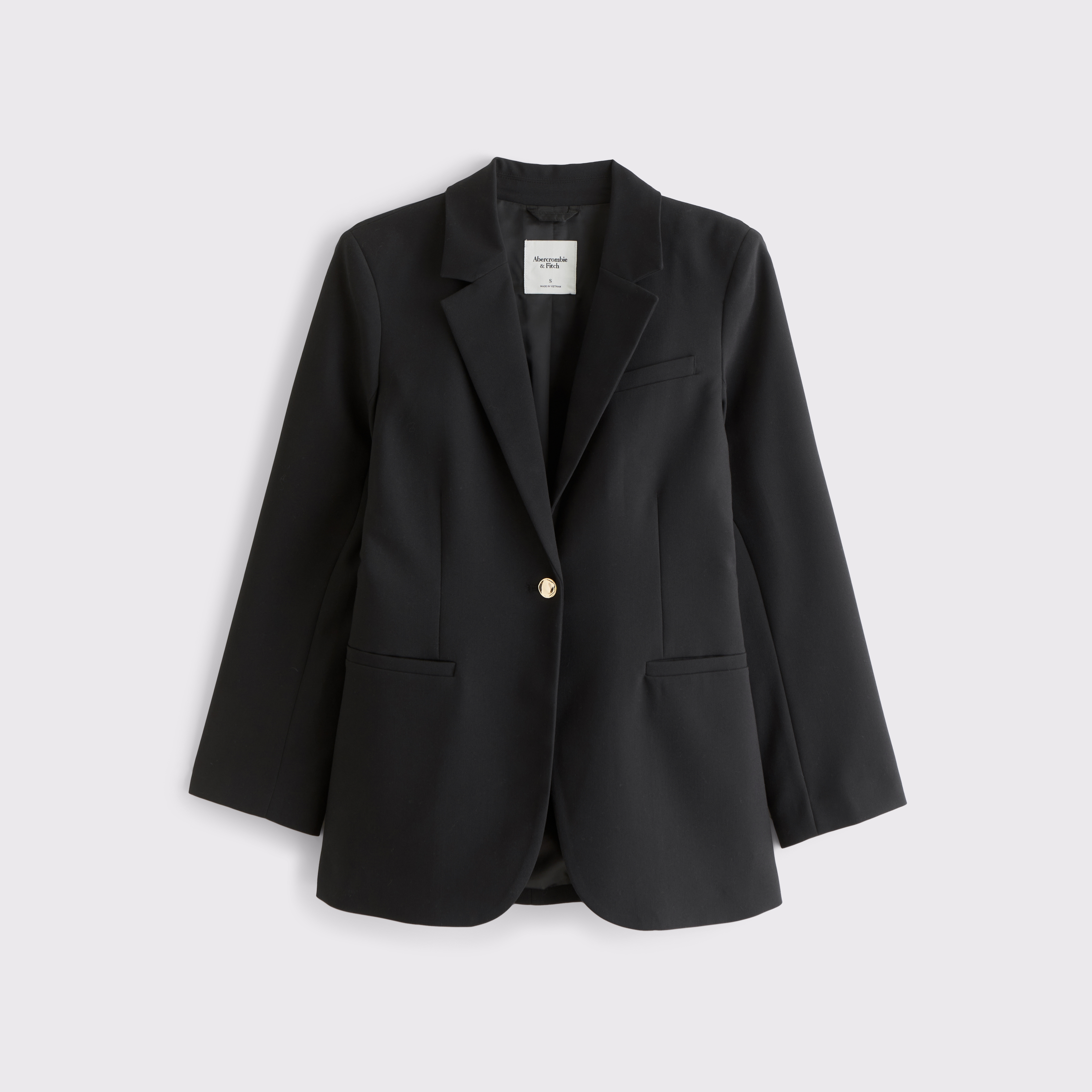 Our versatile blazer in our classic menswear fabric. Features a nipped-in waist, a single-breasted collar, side pockets and gold center button closure. Imported.