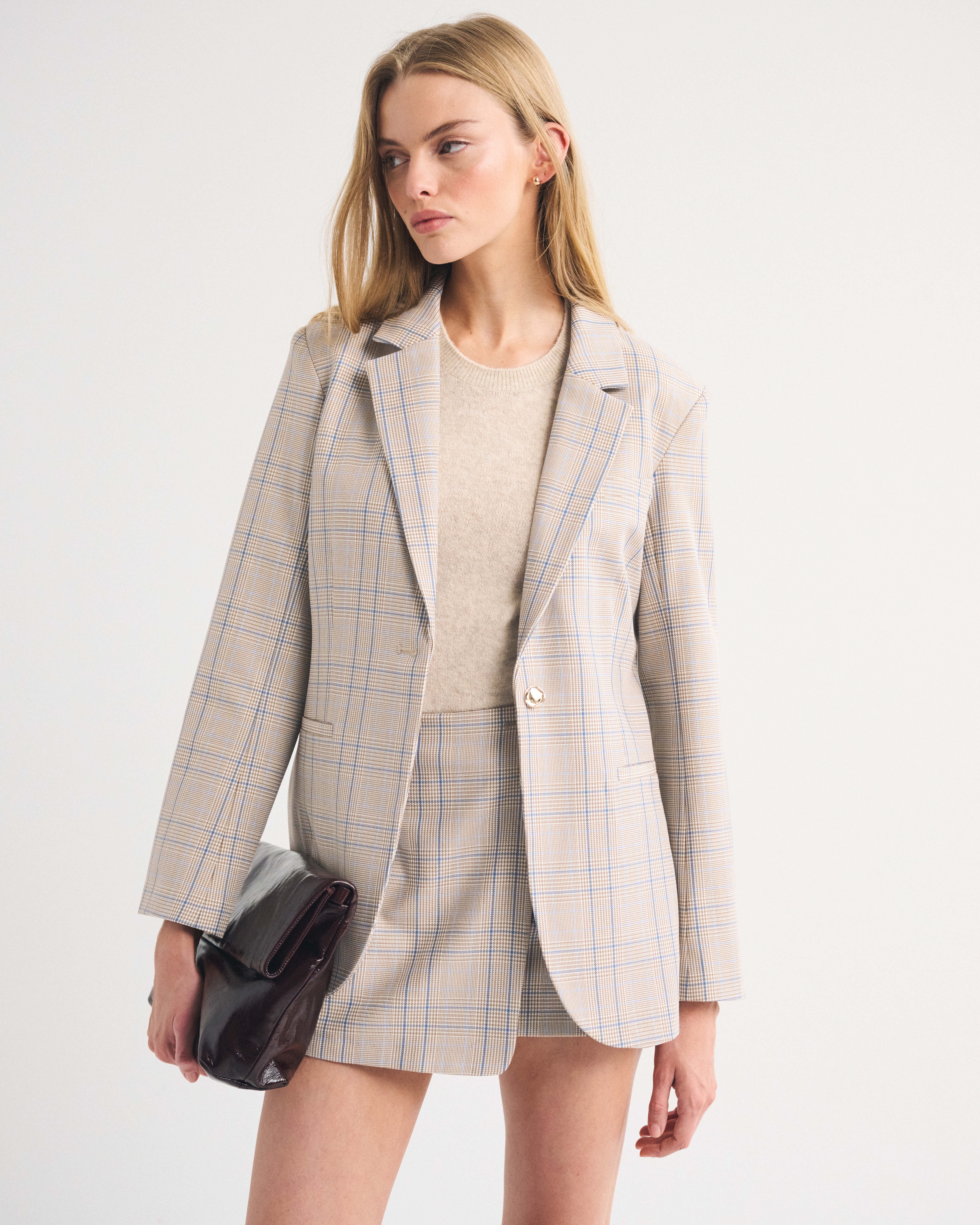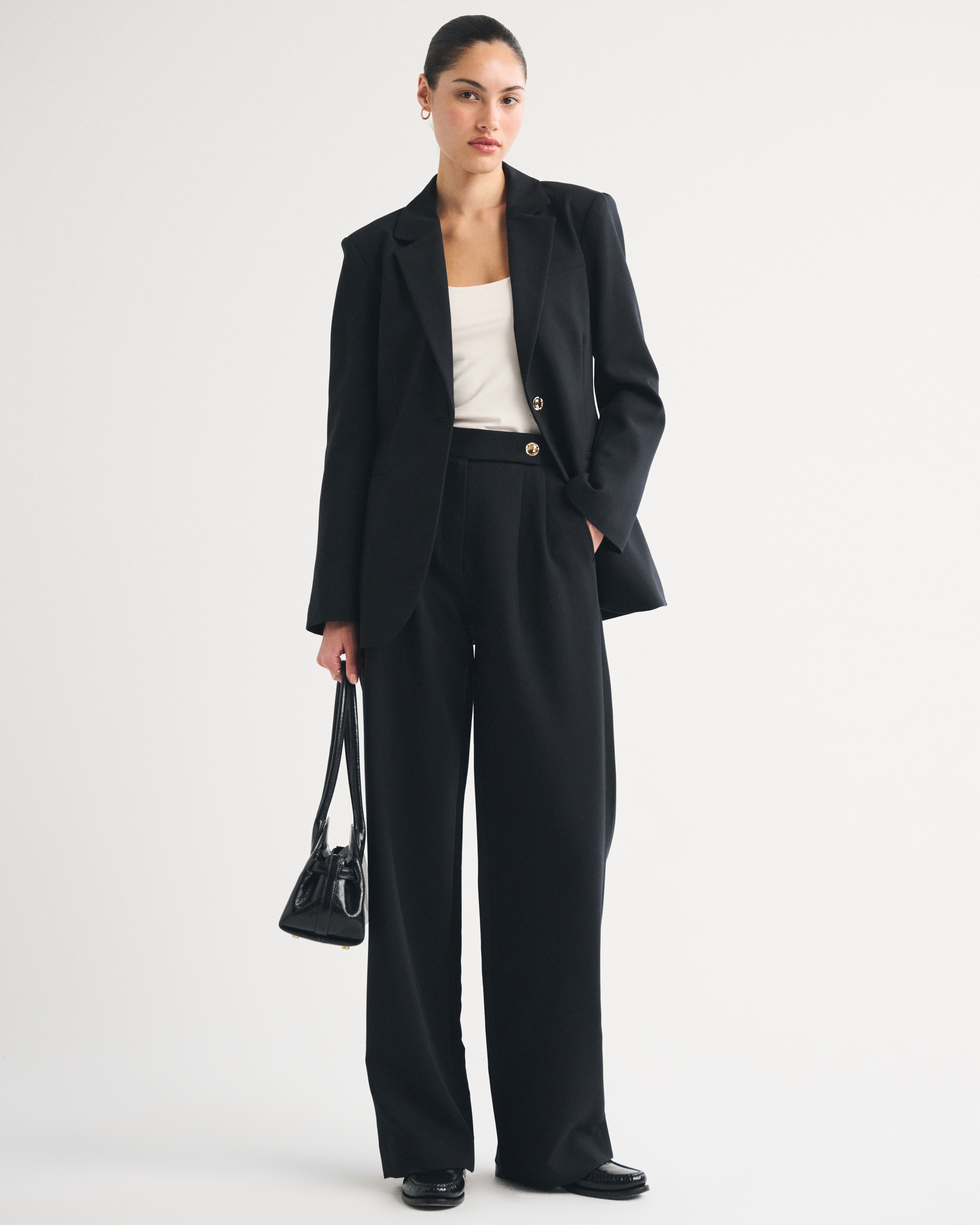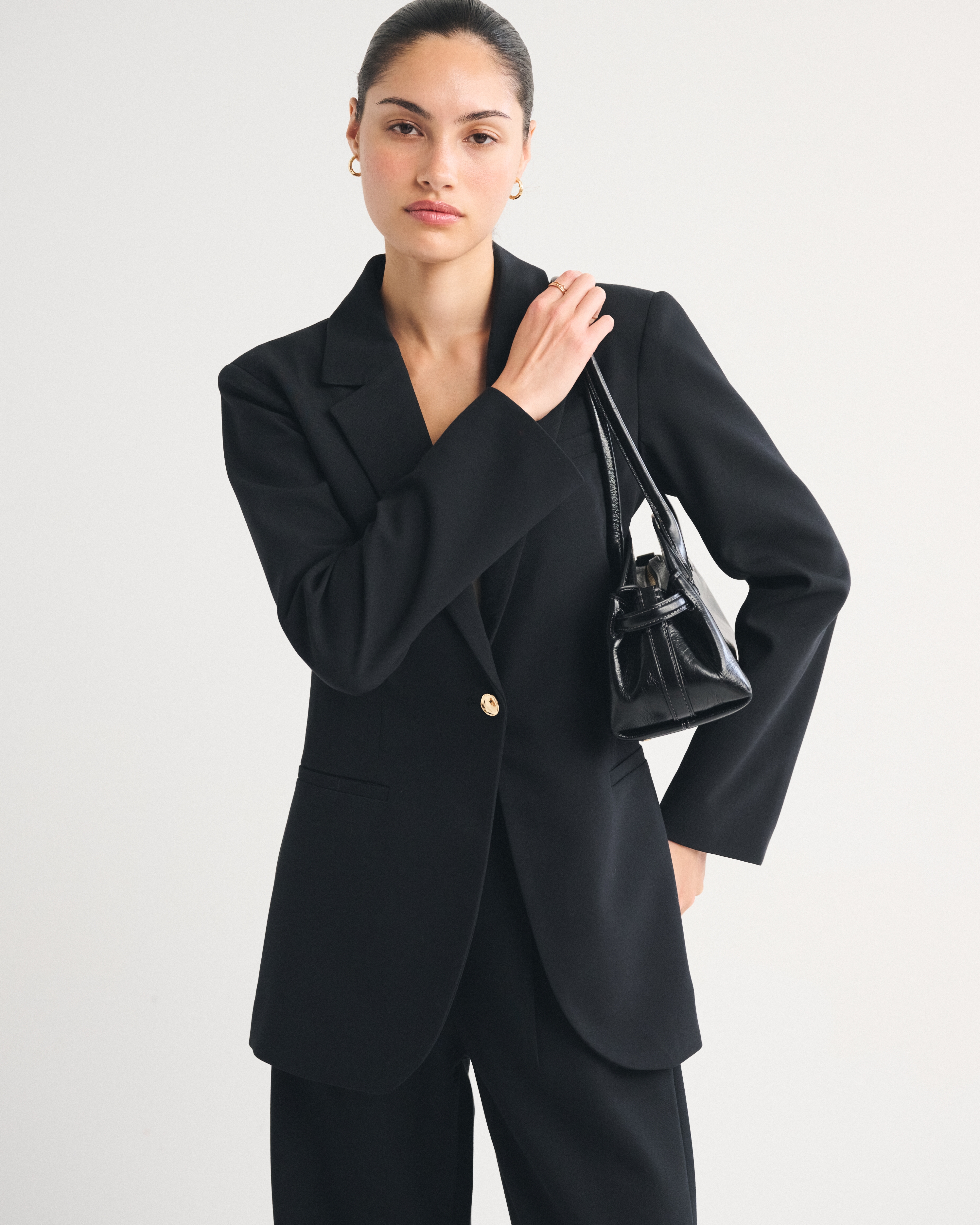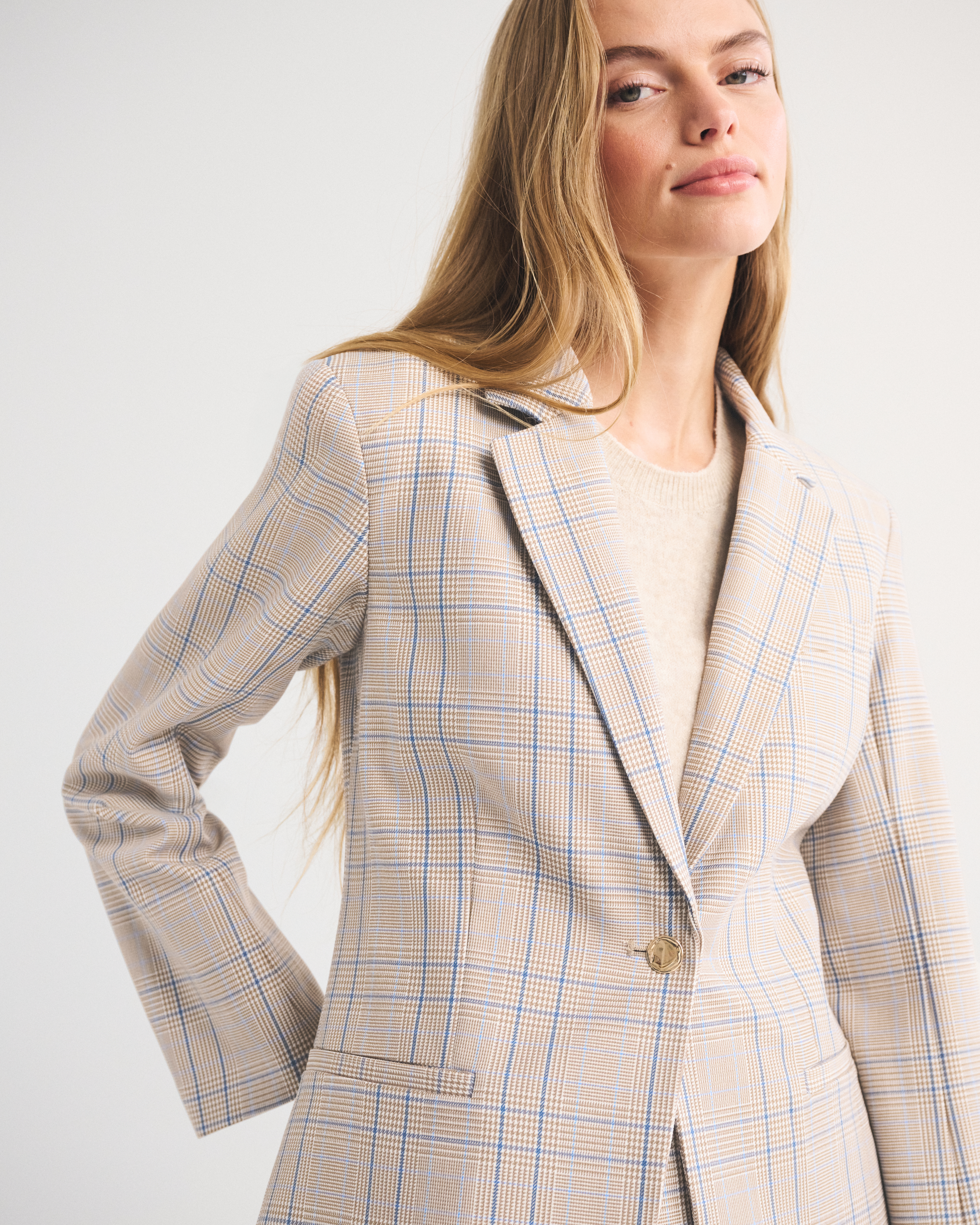 Our versatile blazer in our classic menswear fabric. Features a nipped-in waist, a single-breasted collar, side pockets and gold center button closure. Imported.