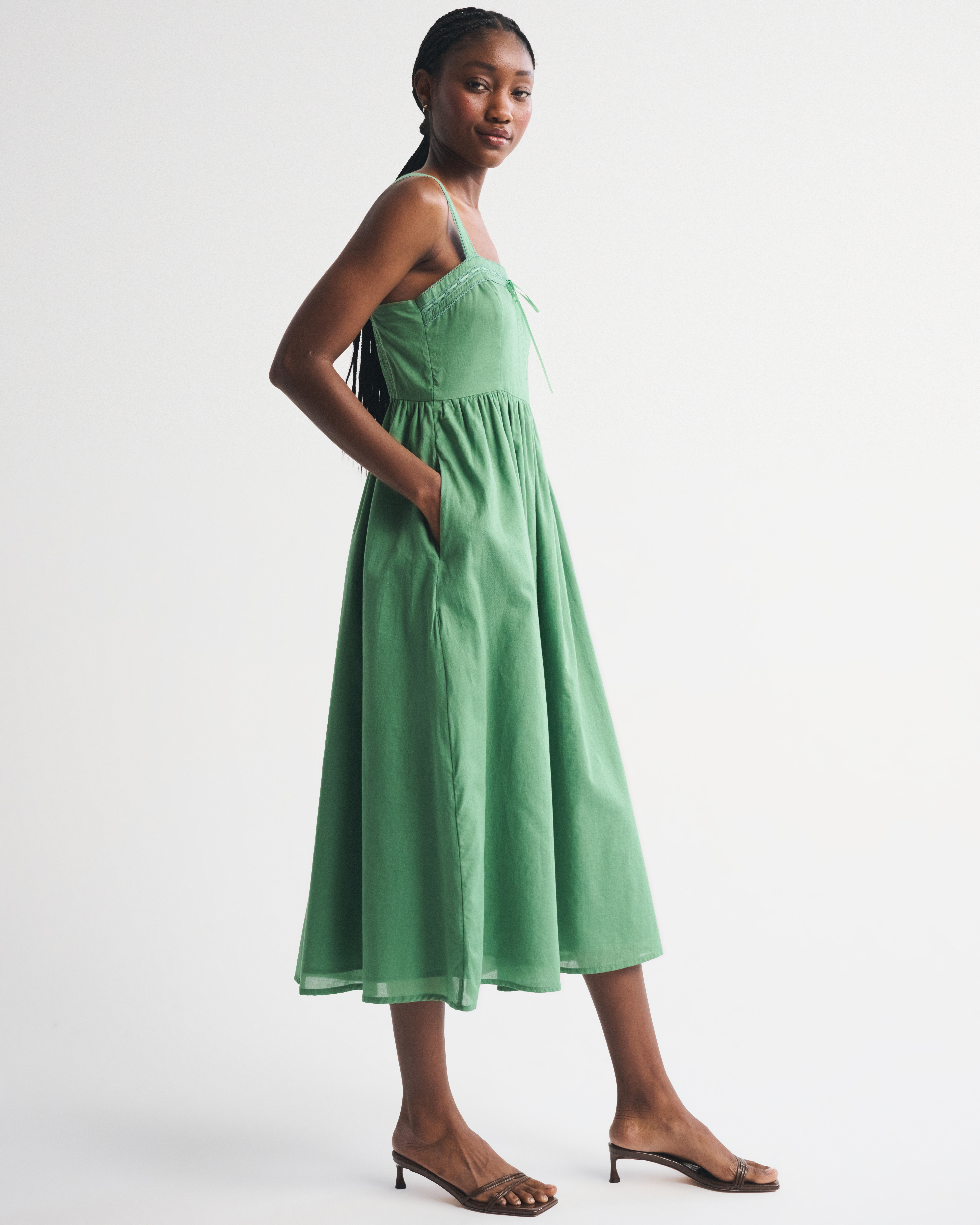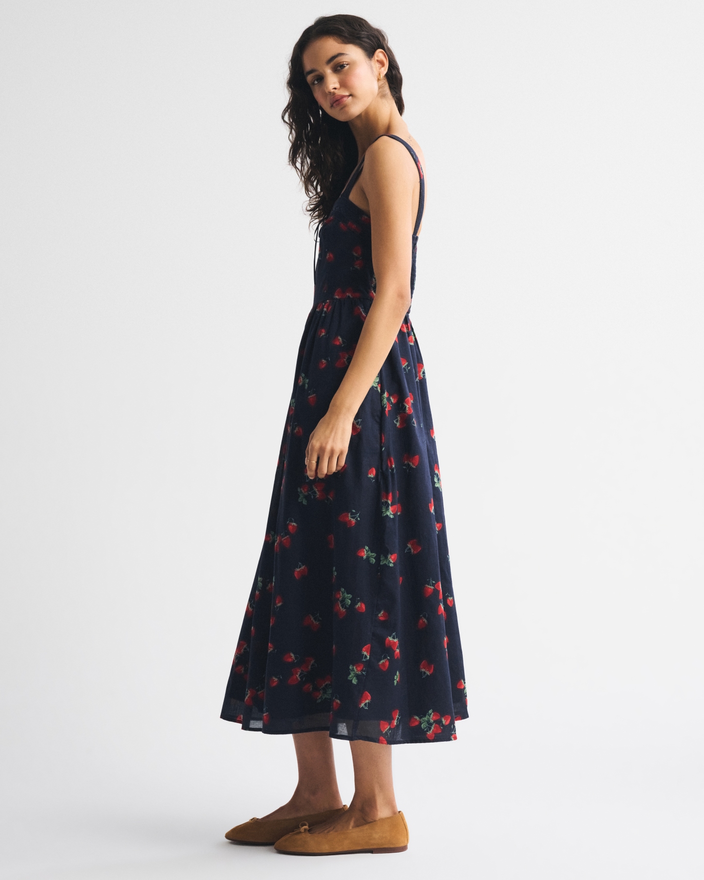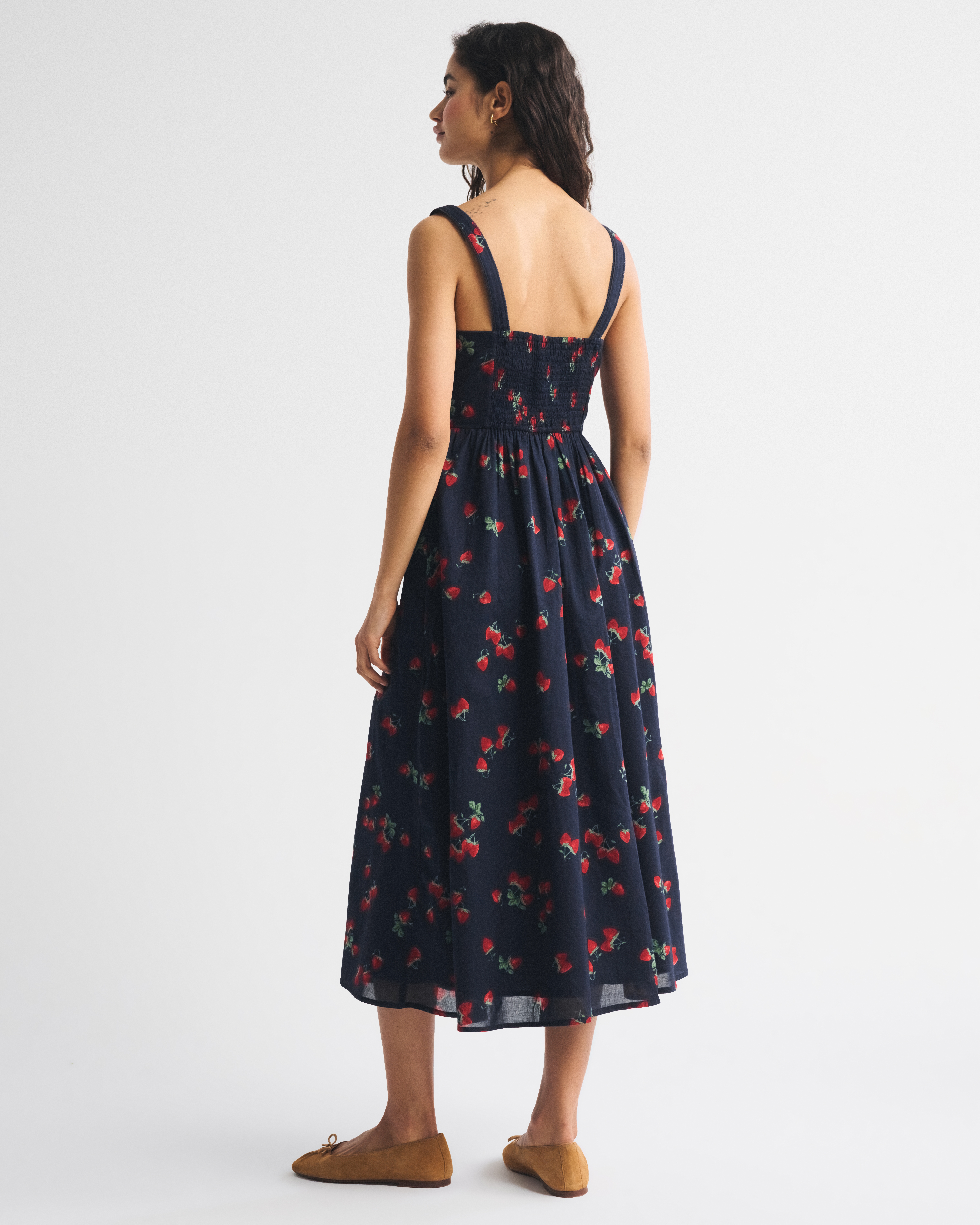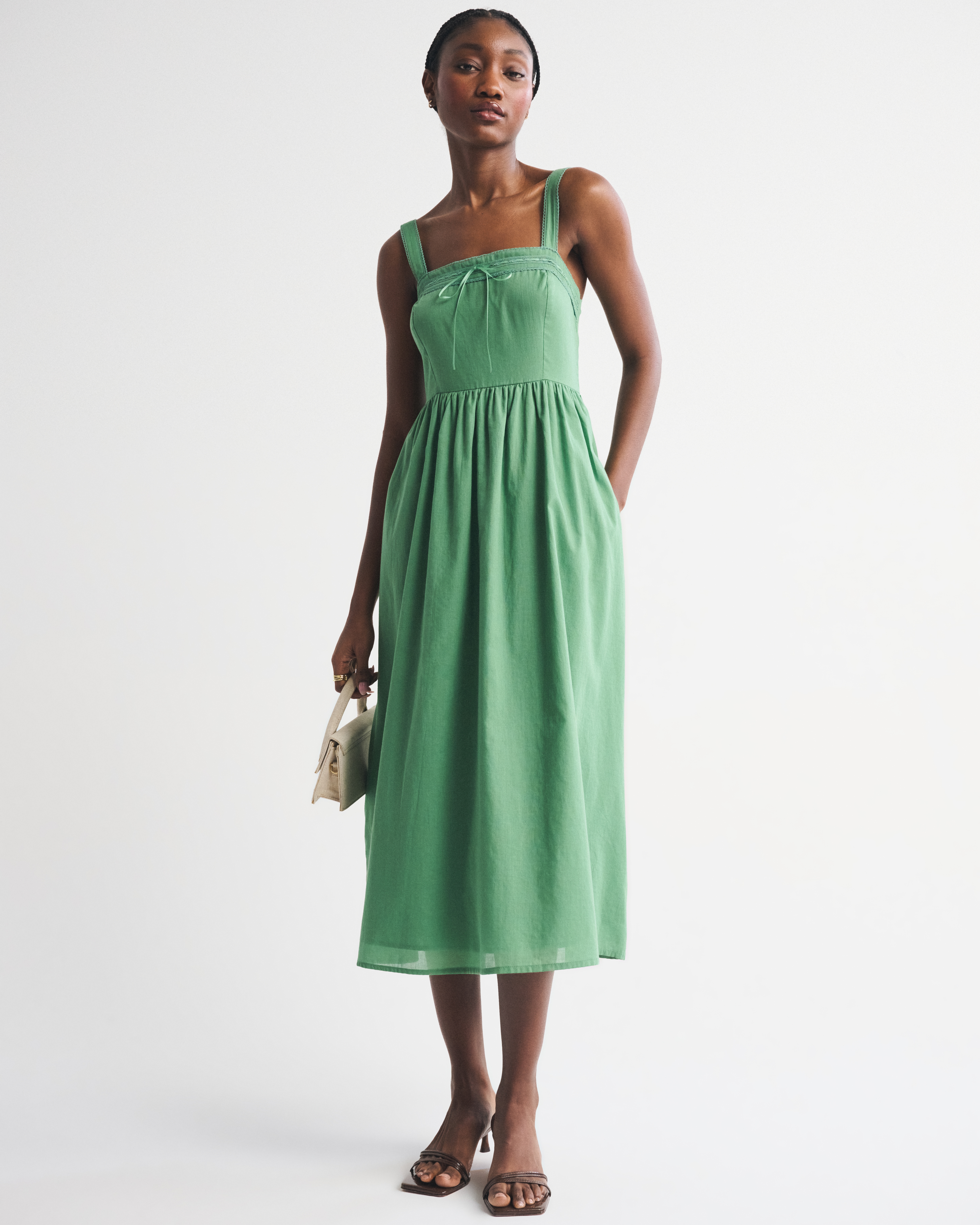 Your favorite Emerson dress reimagined. This flattering short-sleeve midi dress is in our classic lightweight cotton fabric and fit-and-flare silhouette. Features a square neckline with a dainty bow, adjustable button-through straps and pockets. Imported.