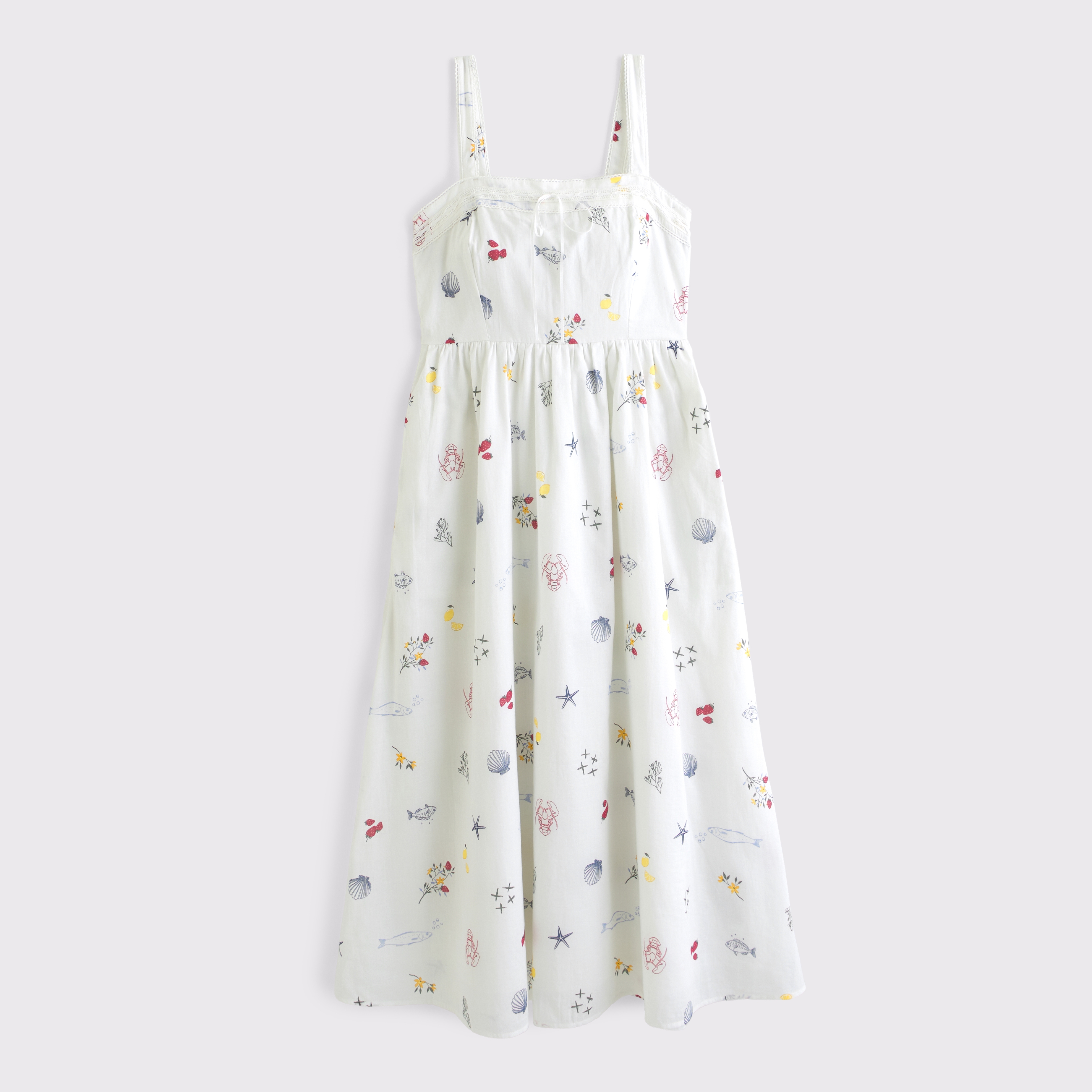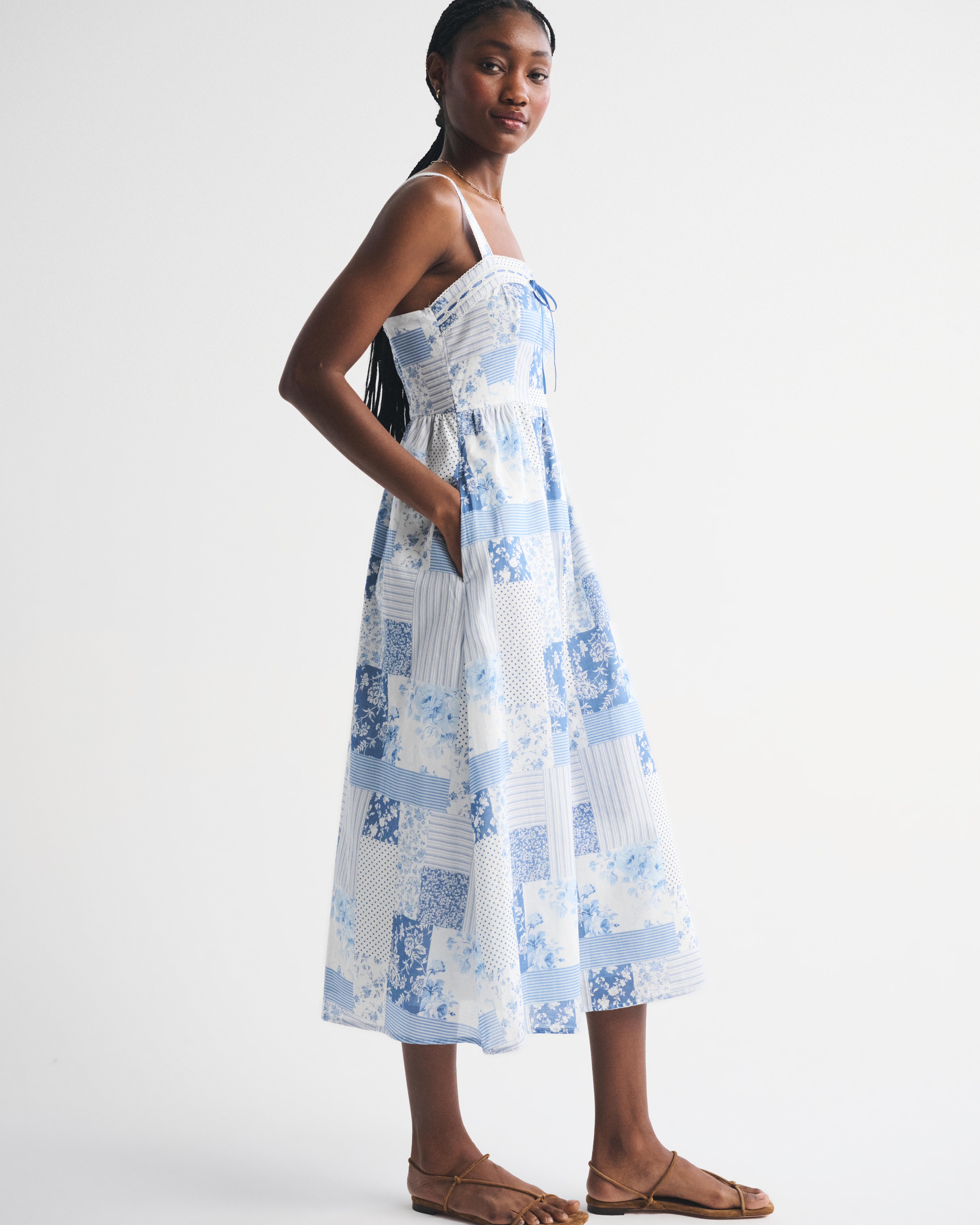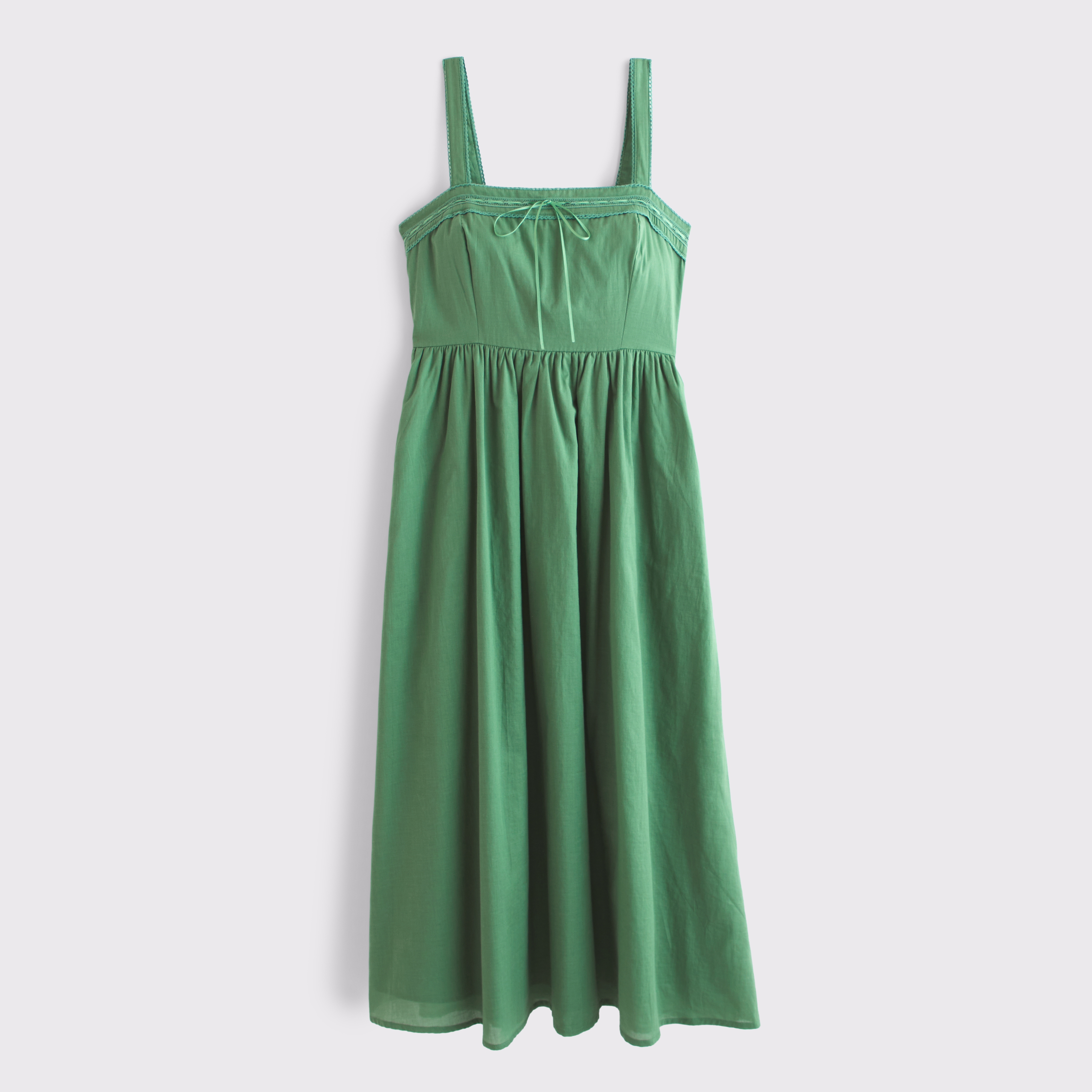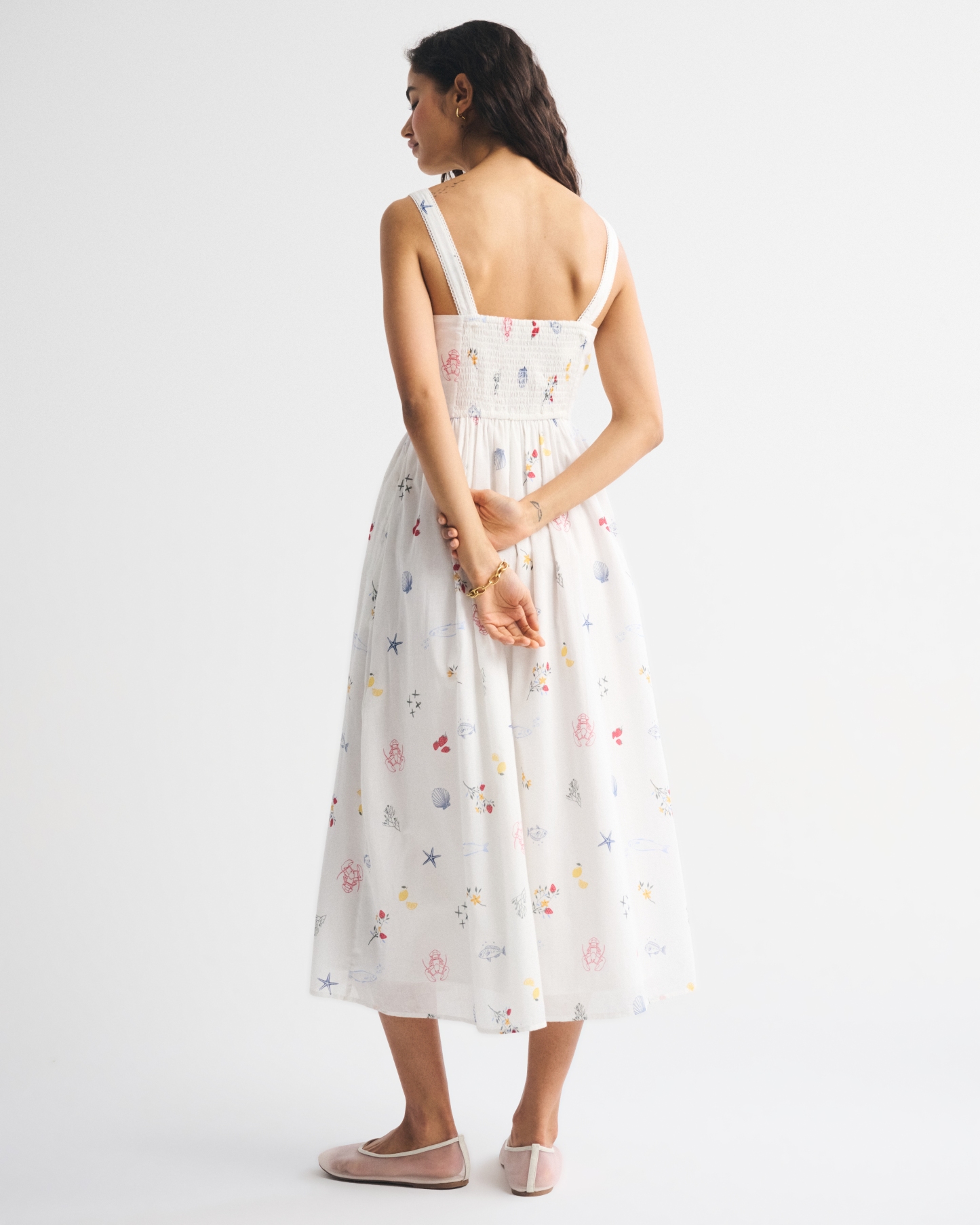 Your favorite Emerson dress reimagined. This flattering short-sleeve midi dress is in our classic lightweight cotton fabric and fit-and-flare silhouette. Features a square neckline with a dainty bow, adjustable button-through straps and pockets. Imported.