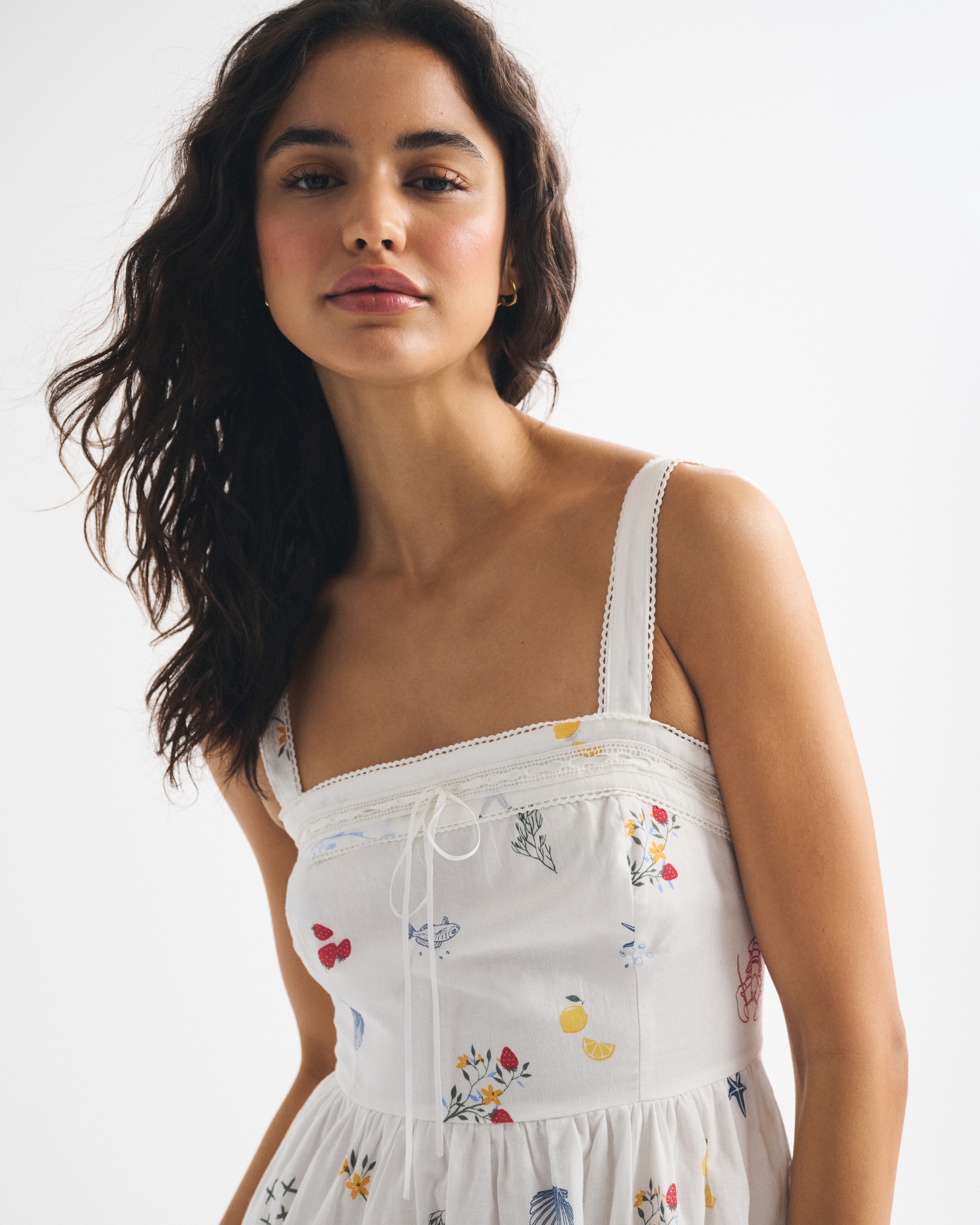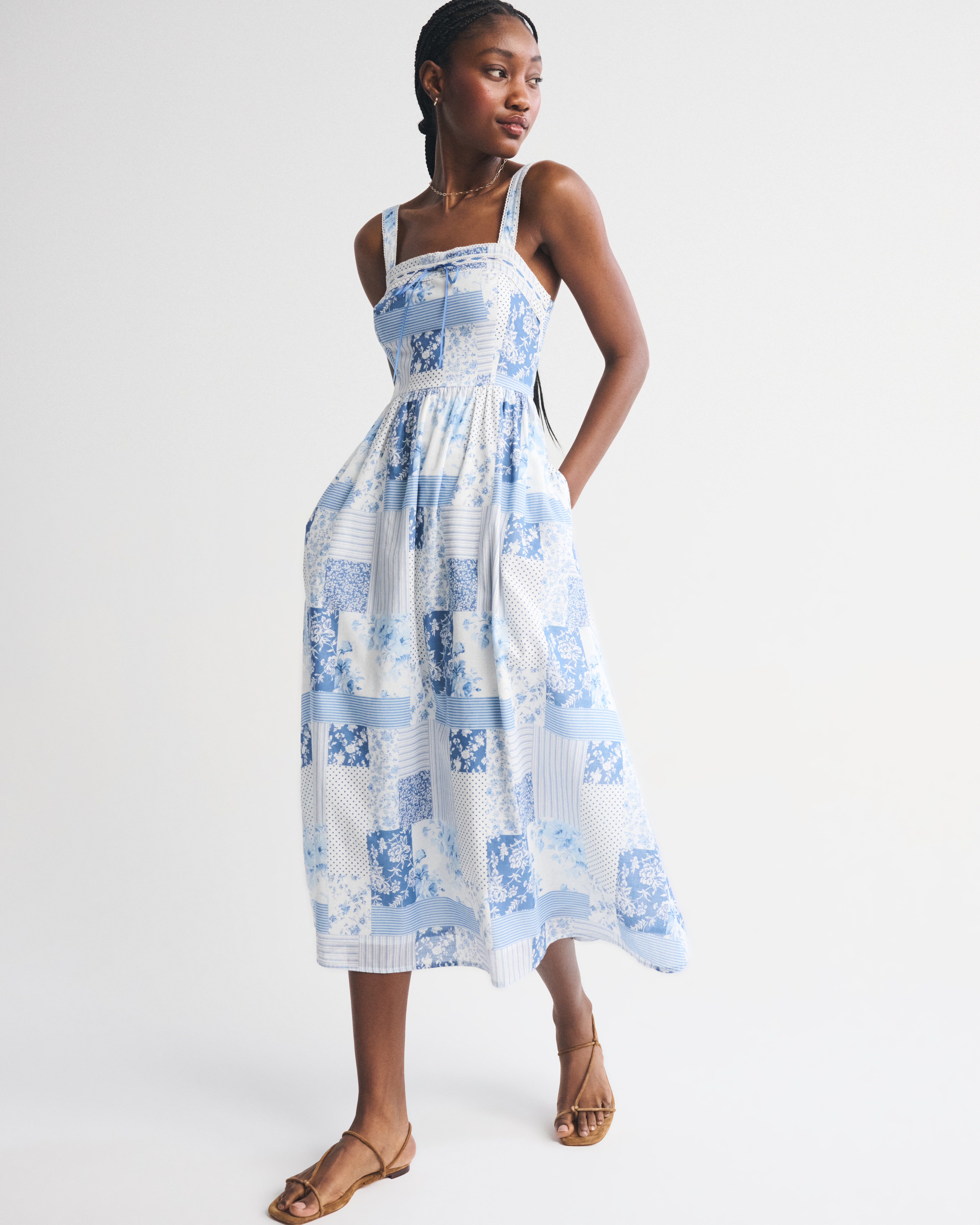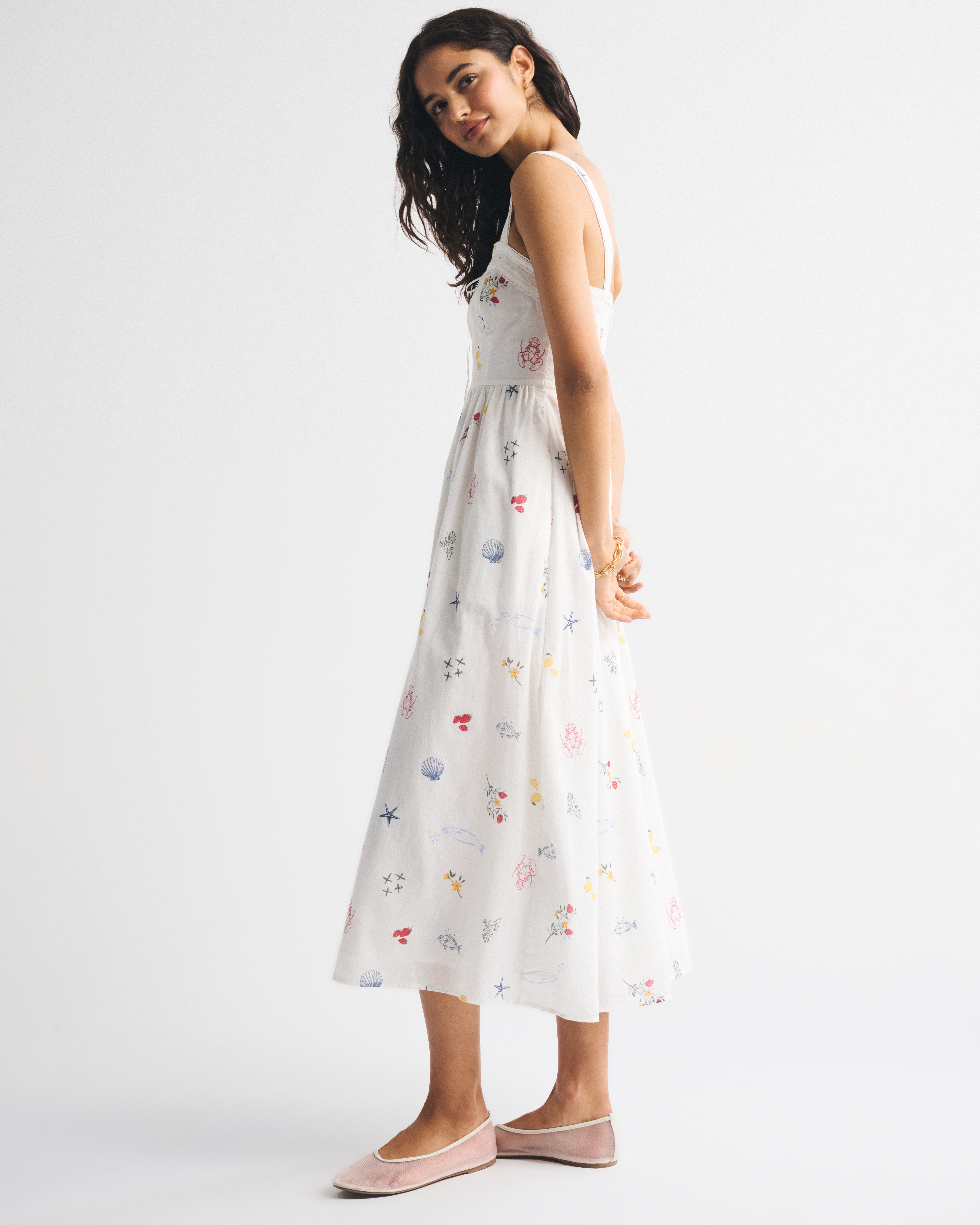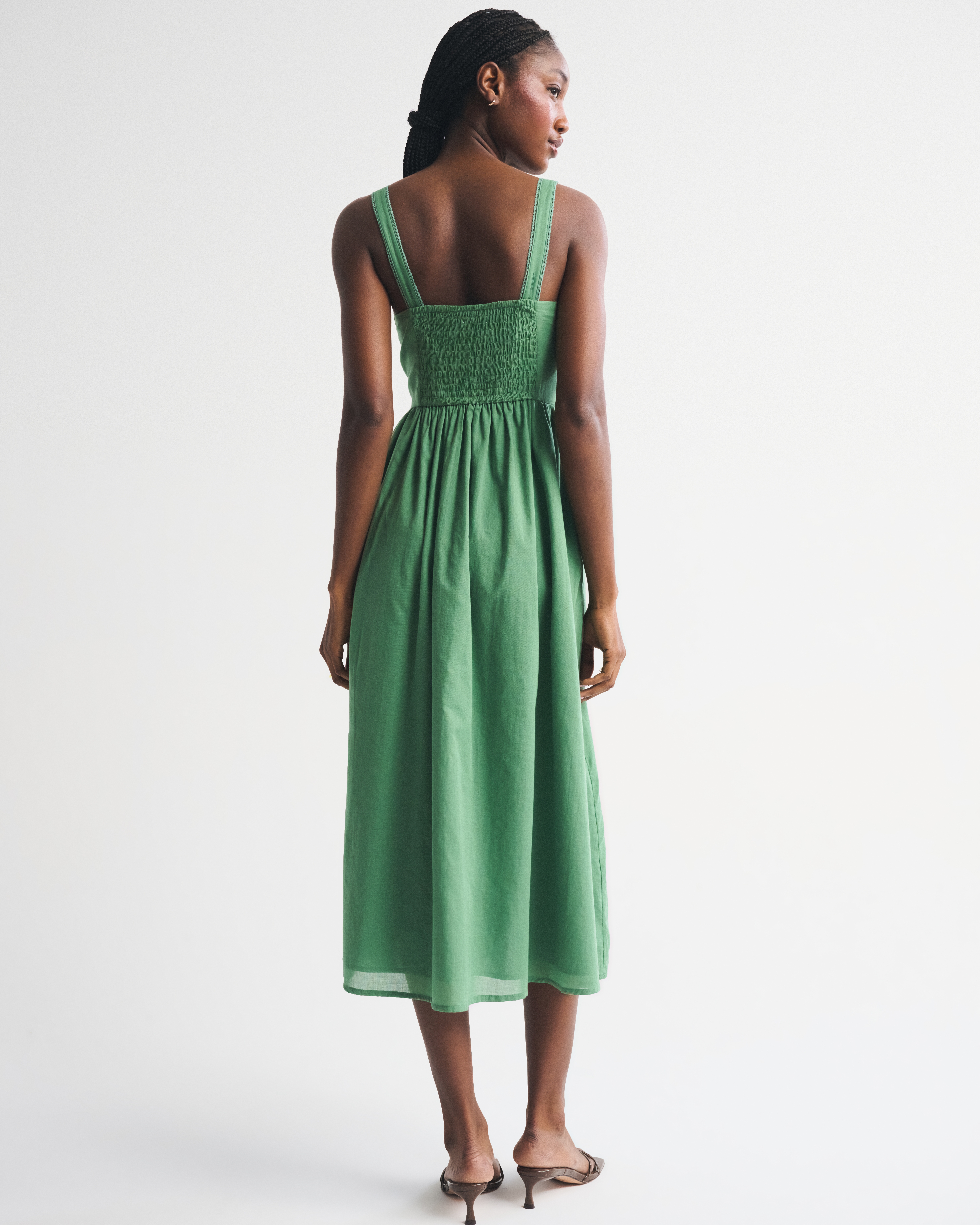 Your favorite Emerson dress reimagined. This flattering short-sleeve midi dress is in our classic lightweight cotton fabric and fit-and-flare silhouette. Features a square neckline with a dainty bow, adjustable button-through straps and pockets. Imported.