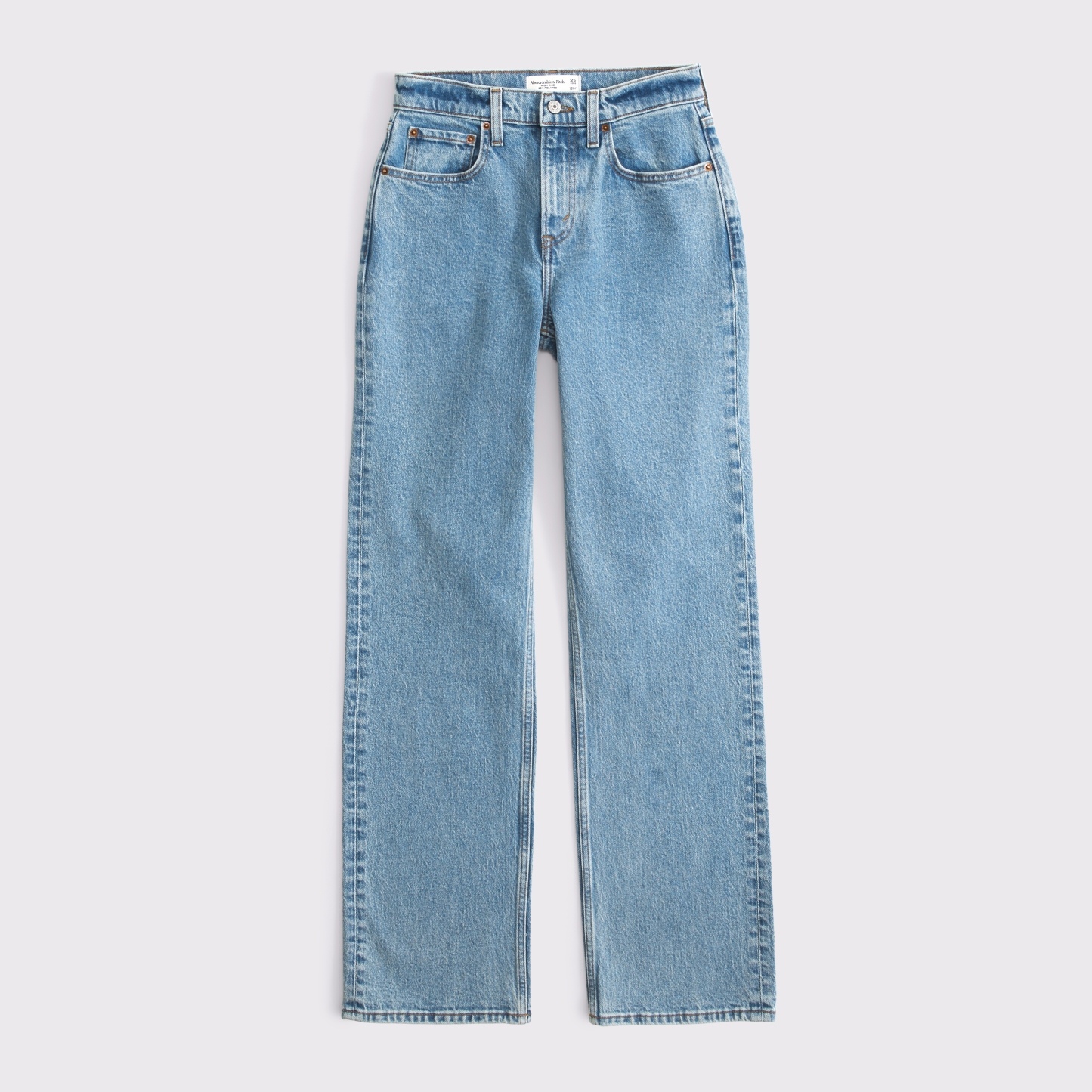Our Curve Love 90s relaxed fit in a medium wash with a frayed hem. Features a high rise that is fitted at the waist through the seat to show off your best butt. Eases open through the thigh into a full-length, relaxed leg shape. The viral fit that eliminates waist gap: Curve Love features additional room through the hip and thigh for curve-hugging comfort. Made from our Vintage Comfort Stretch fabric with structure and slight stretch. Imported.
