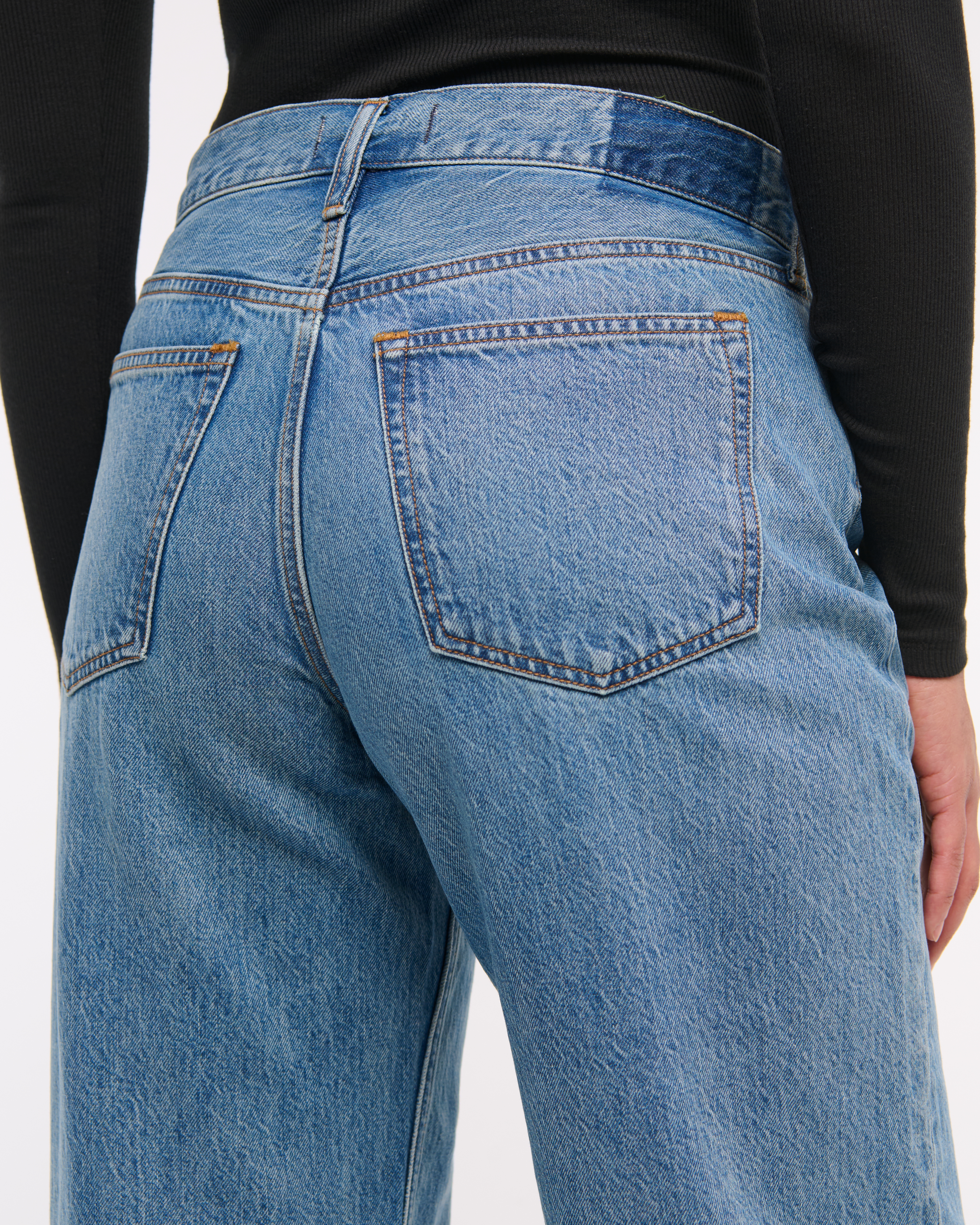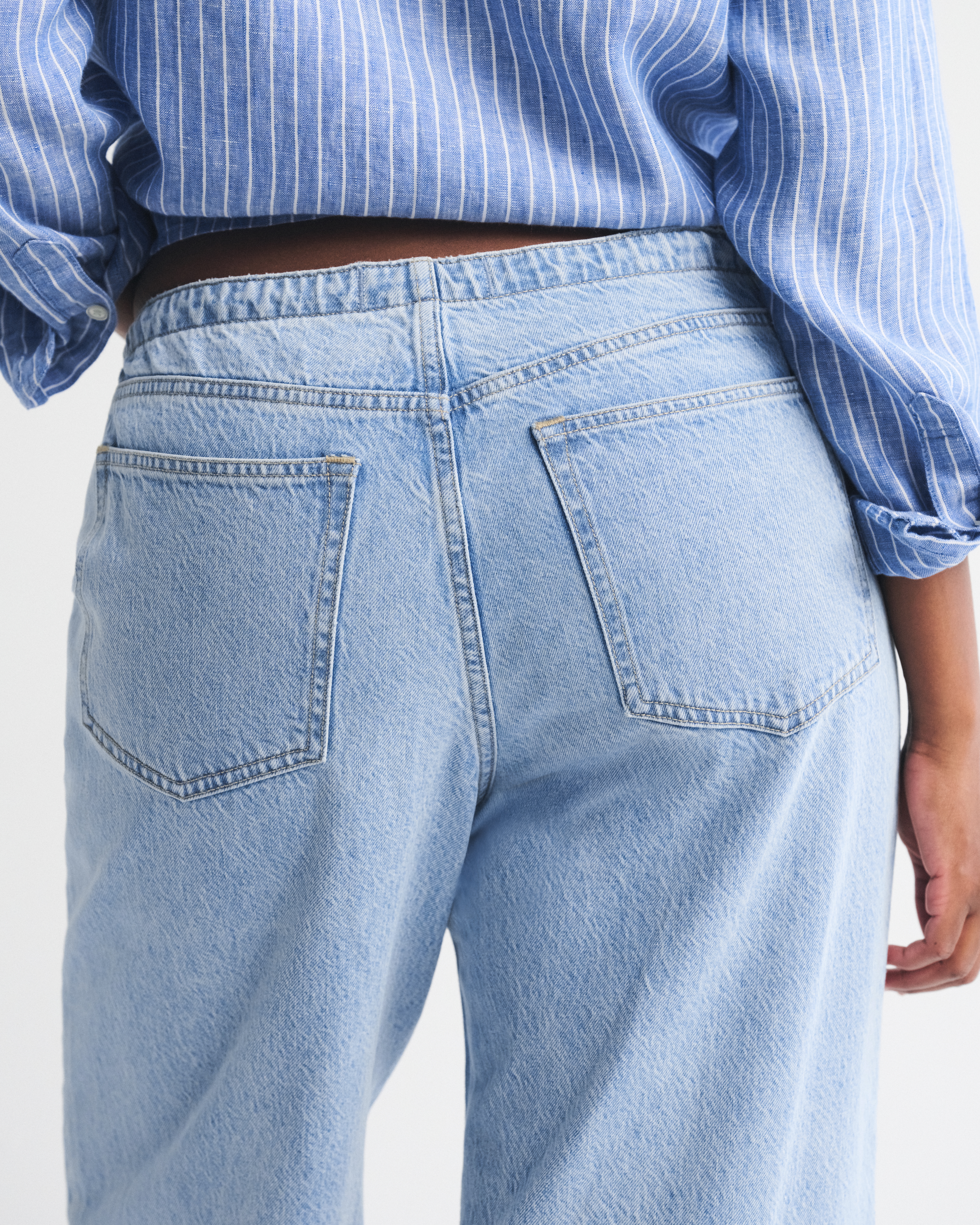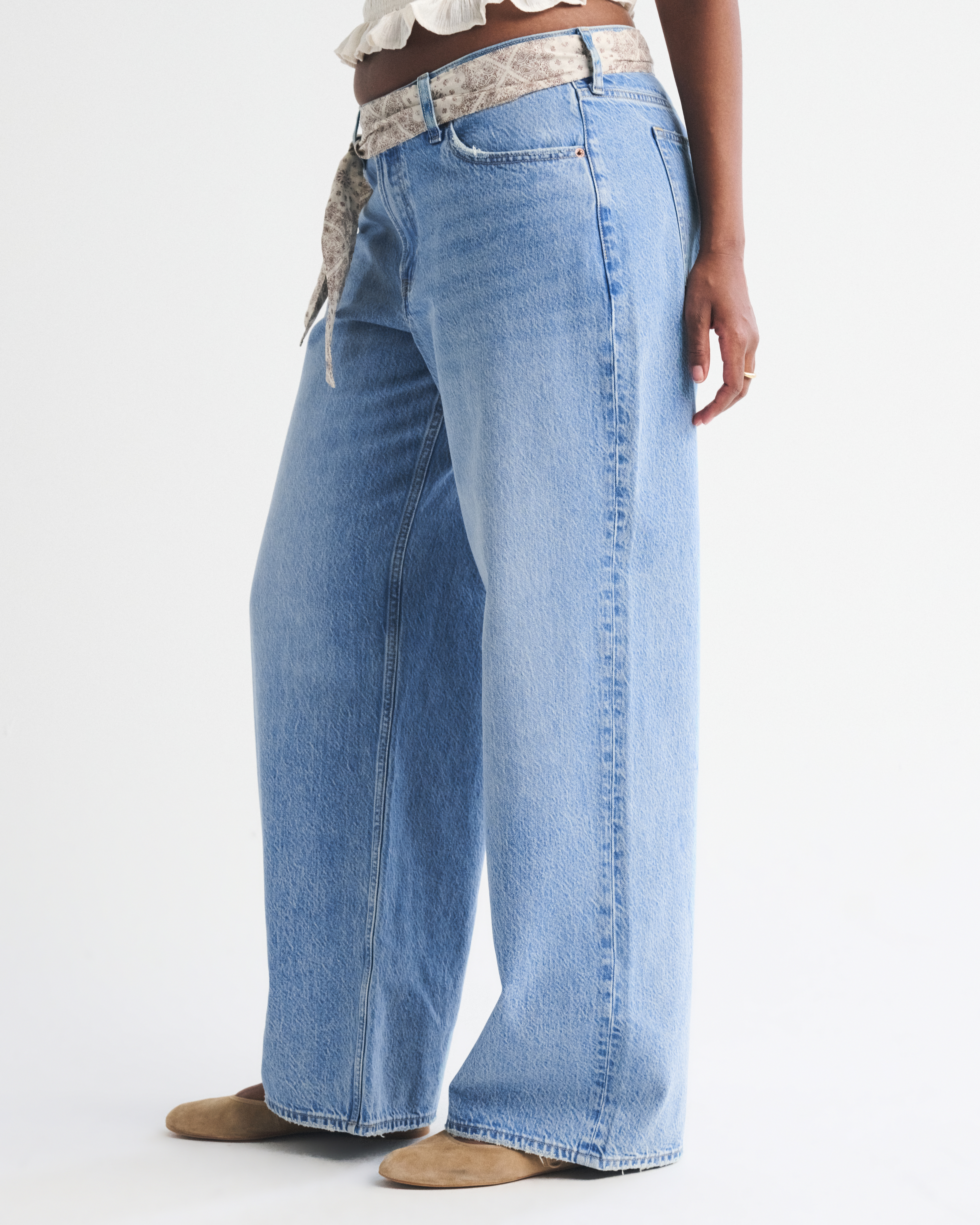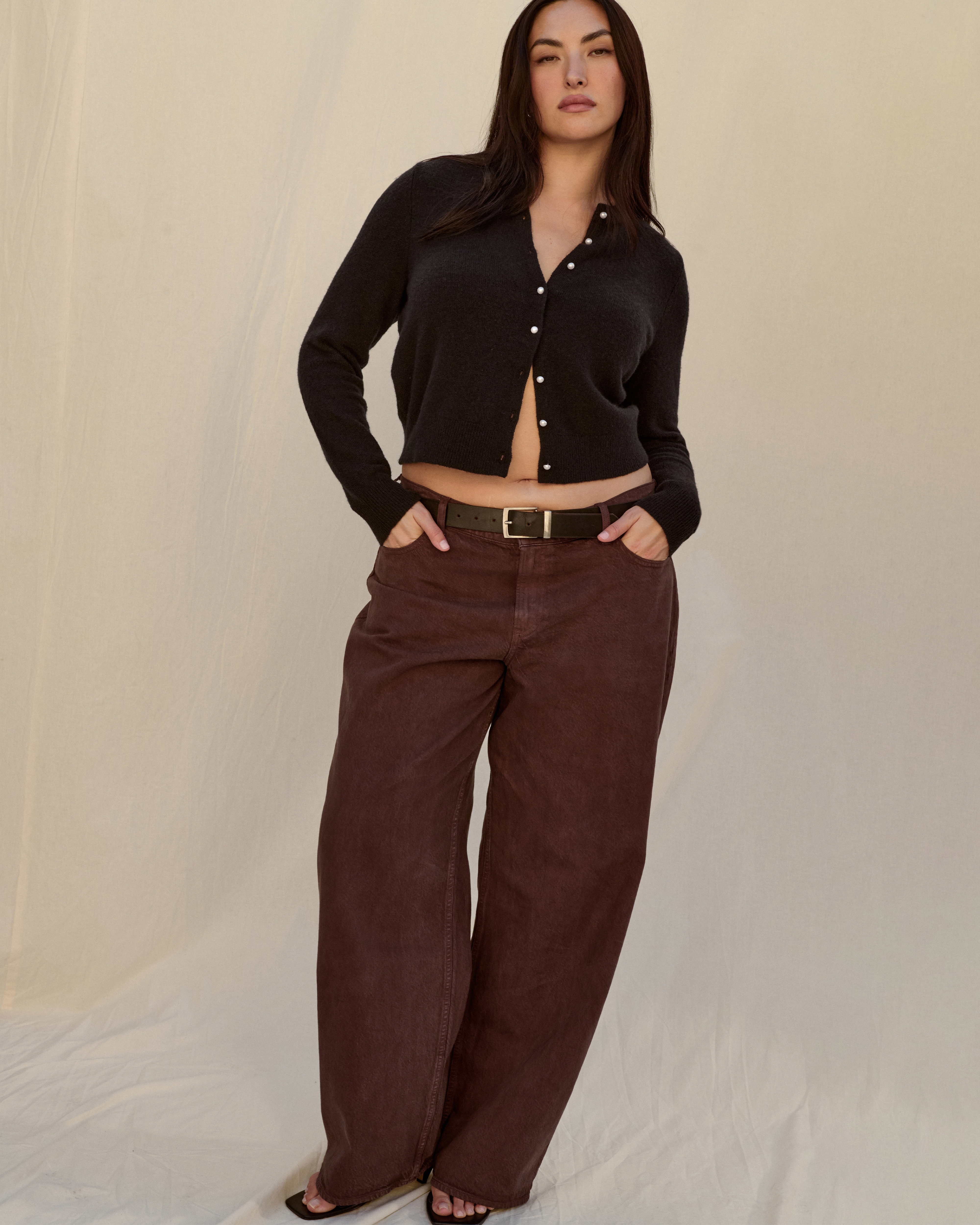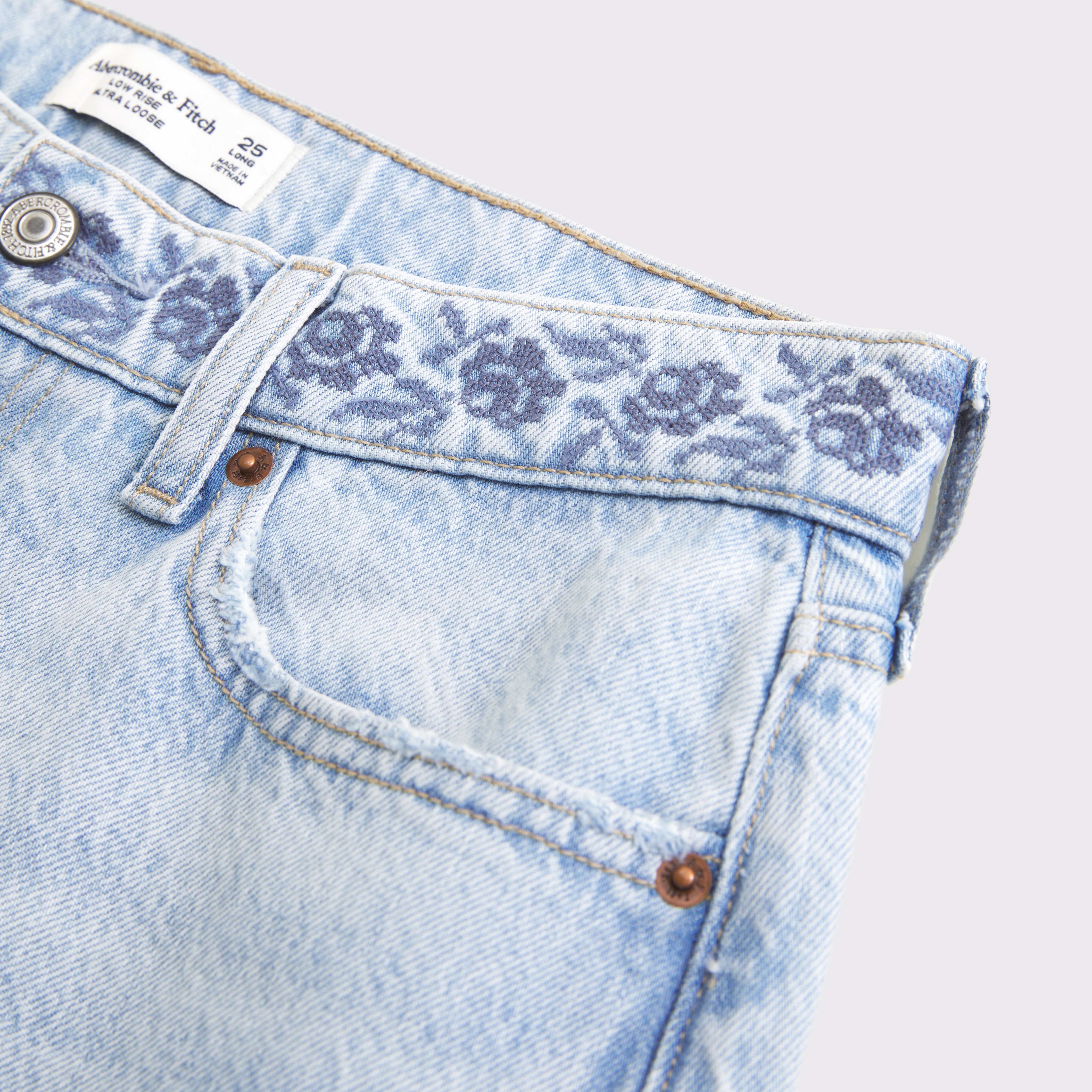 Our Curve Love ultra loose jeans in a dark wash with a cuffed hem. This fit features a low rise, is relaxed at the waist and hips and eases at the thigh into an ultra loose leg shape with a full-length inseam. We recommend buying your true size for a baggier fit. Size down for a closer fit. The viral fit that eliminates waist gap: Curve Love features additional room through the hip and thigh for curve-hugging comfort. This jean is made from our Drapey Rigid denim, a super soft authentic cotton fabric with no stretch. Imported.