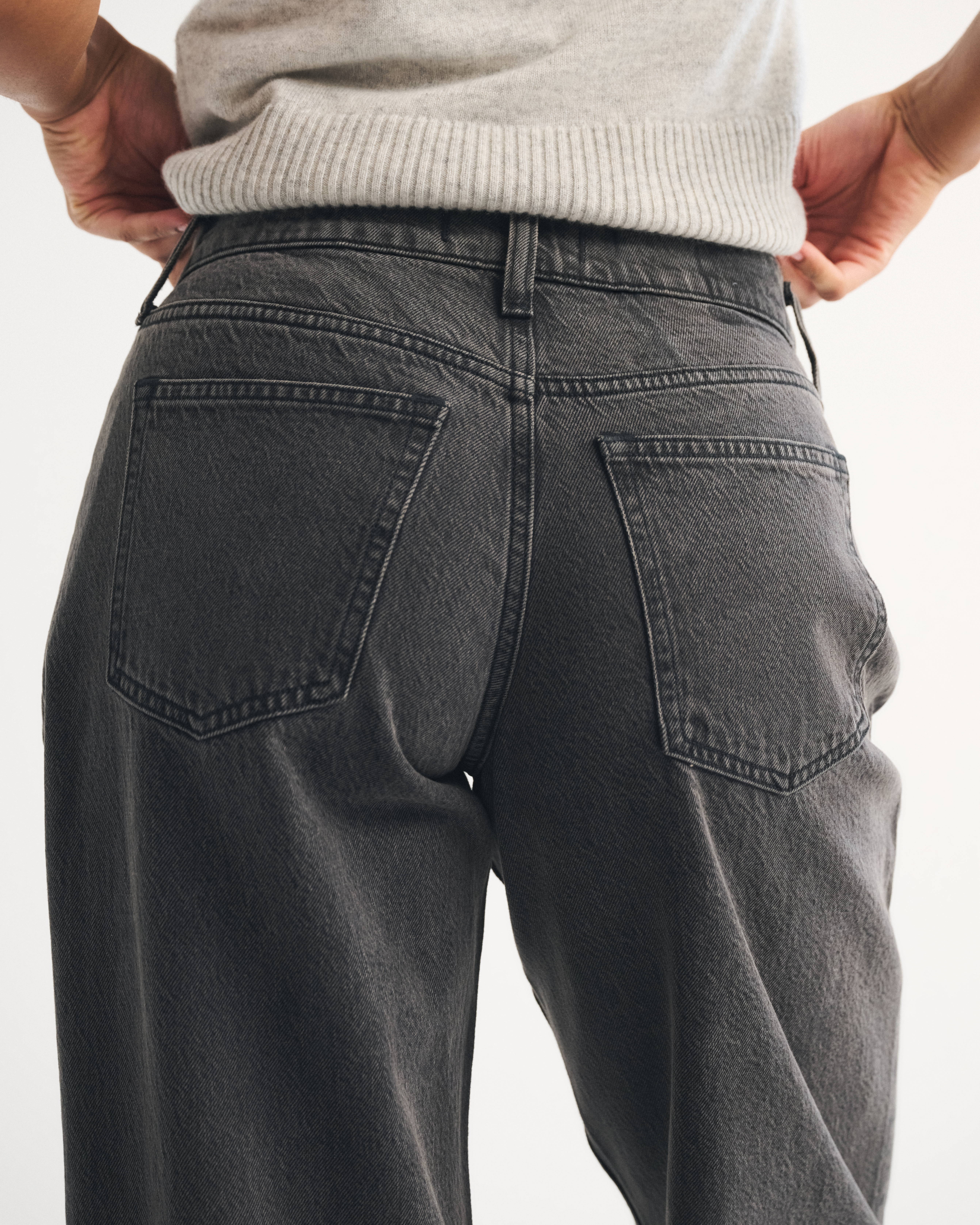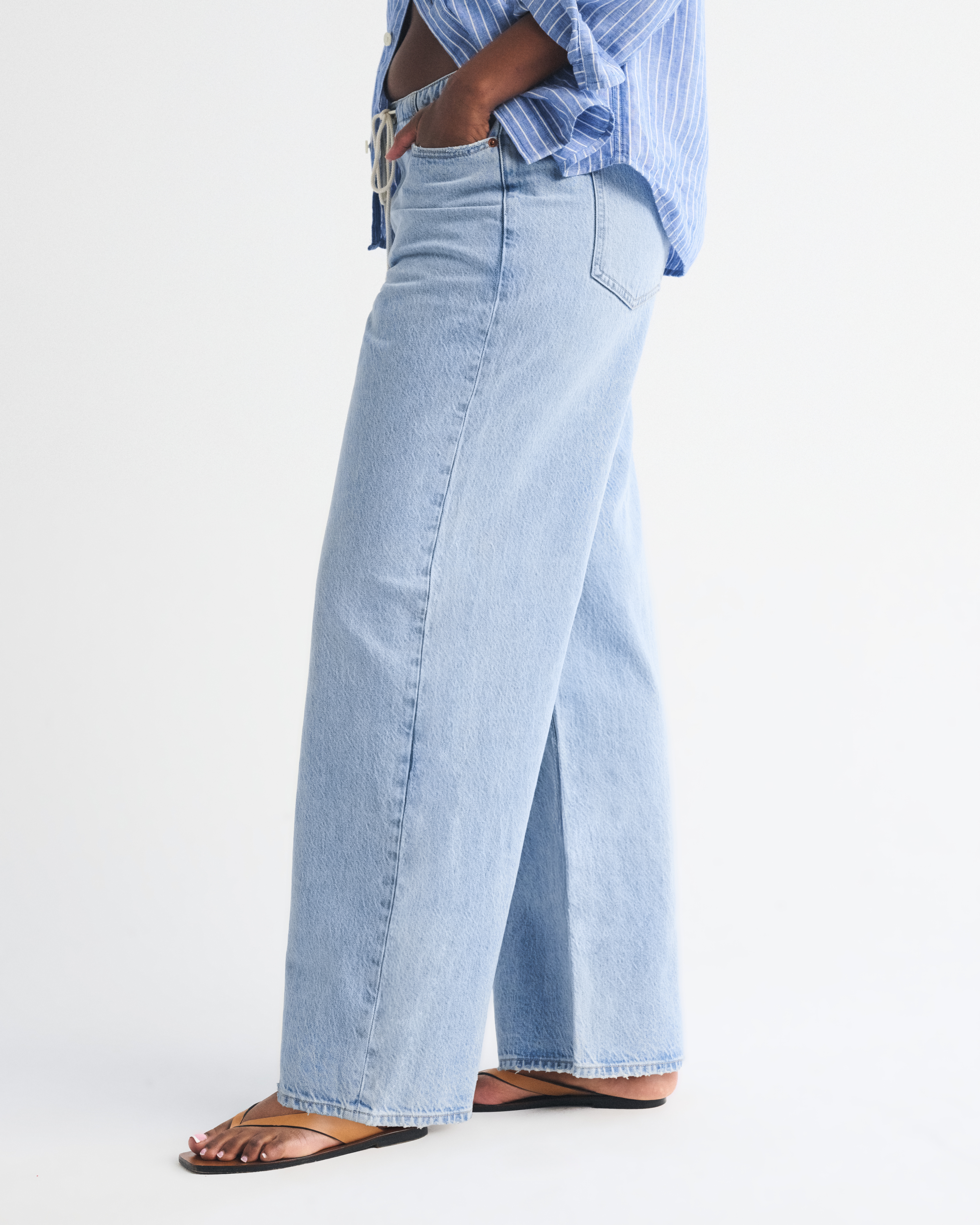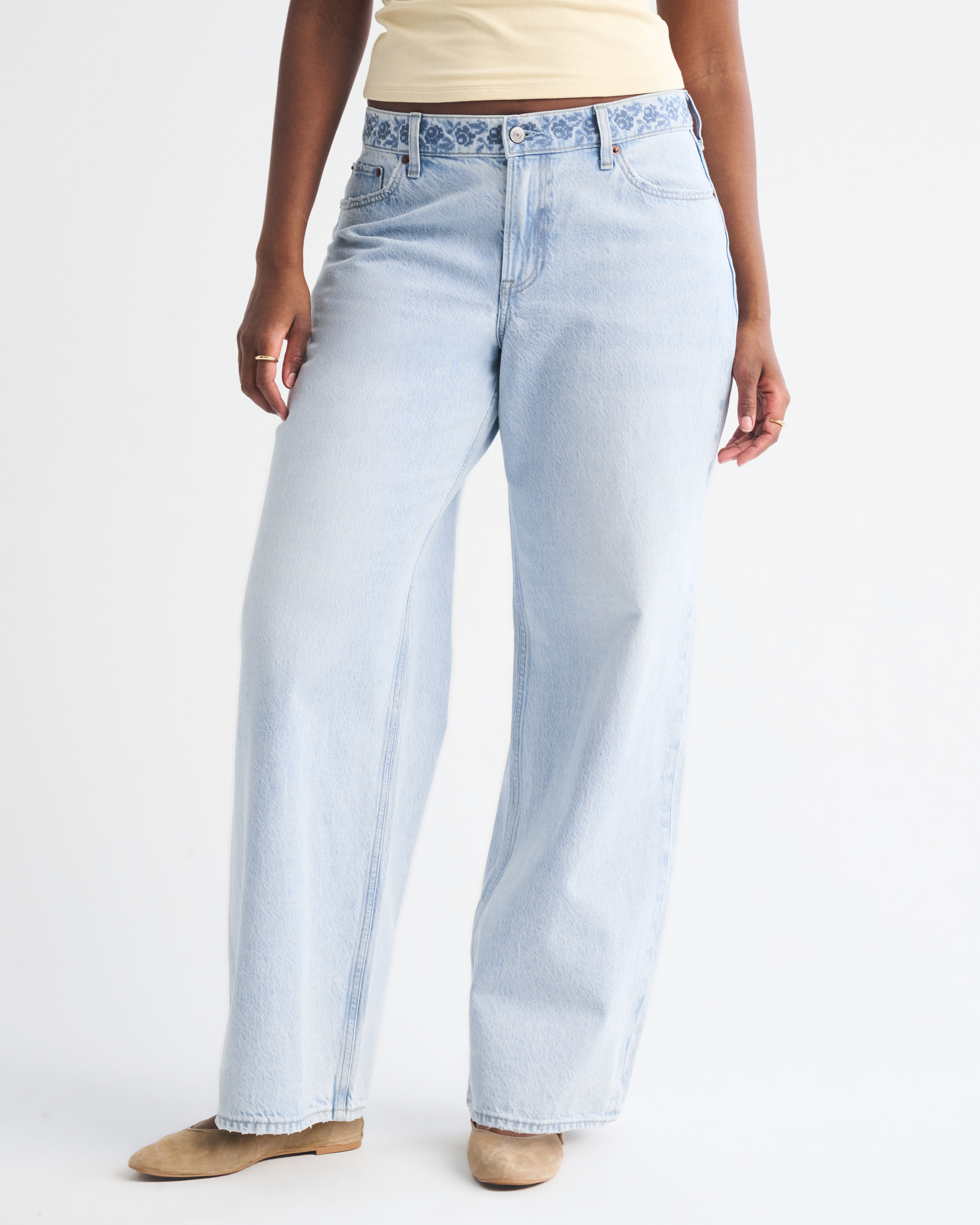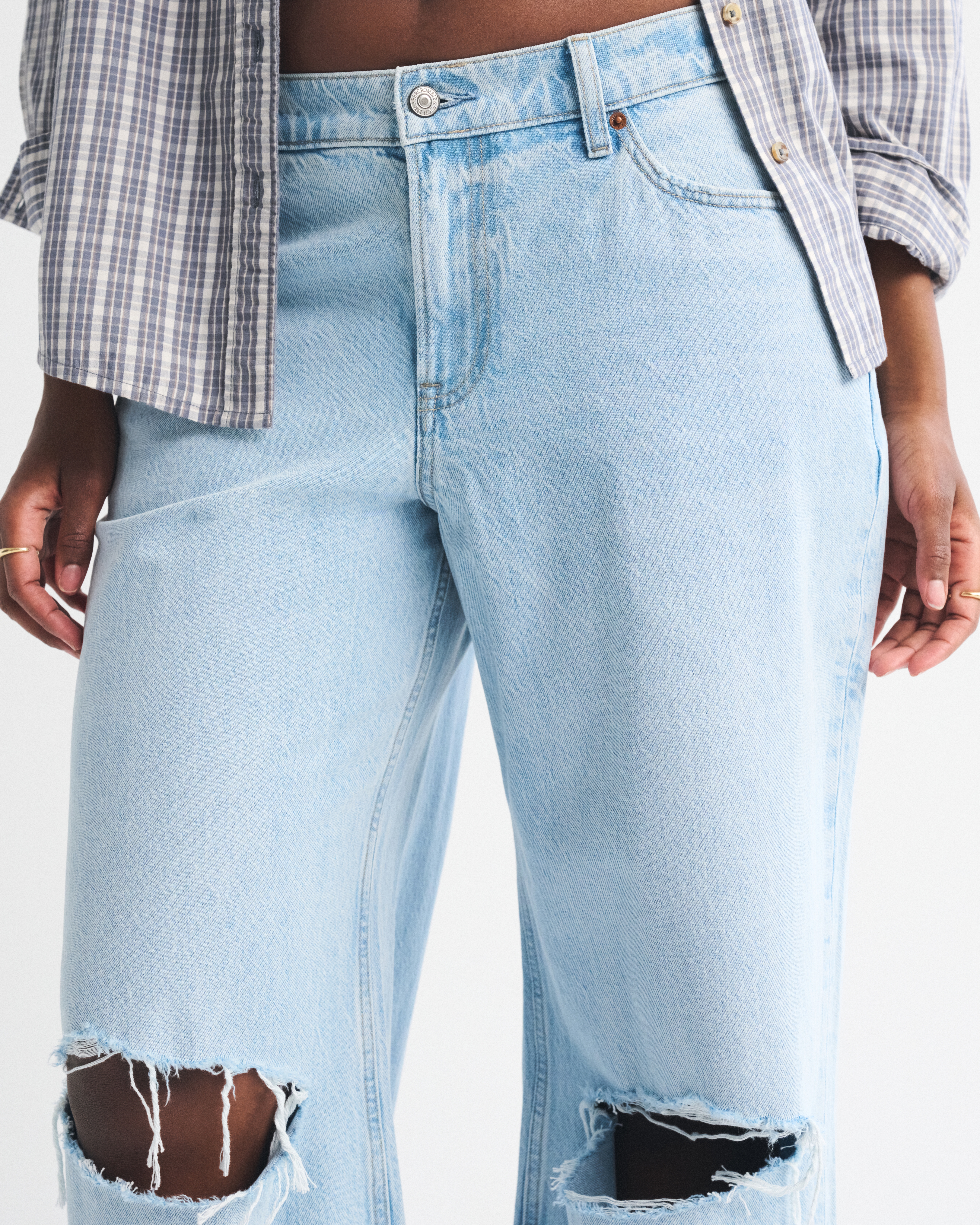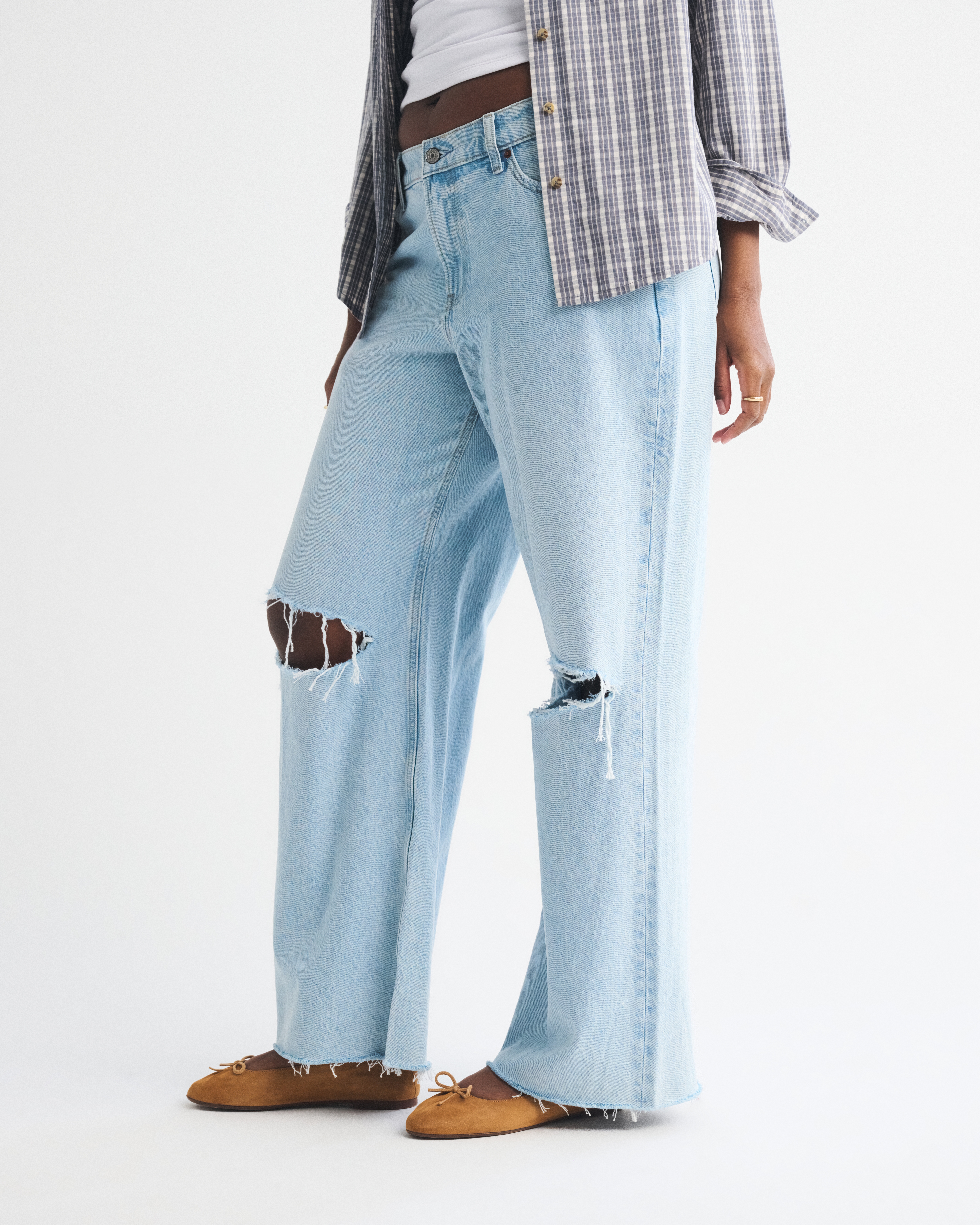 Our Curve Love ultra loose jeans in a dark wash with a cuffed hem. This fit features a low rise, is relaxed at the waist and hips and eases at the thigh into an ultra loose leg shape with a full-length inseam. We recommend buying your true size for a baggier fit. Size down for a closer fit. The viral fit that eliminates waist gap: Curve Love features additional room through the hip and thigh for curve-hugging comfort. This jean is made from our Drapey Rigid denim, a super soft authentic cotton fabric with no stretch. Imported.