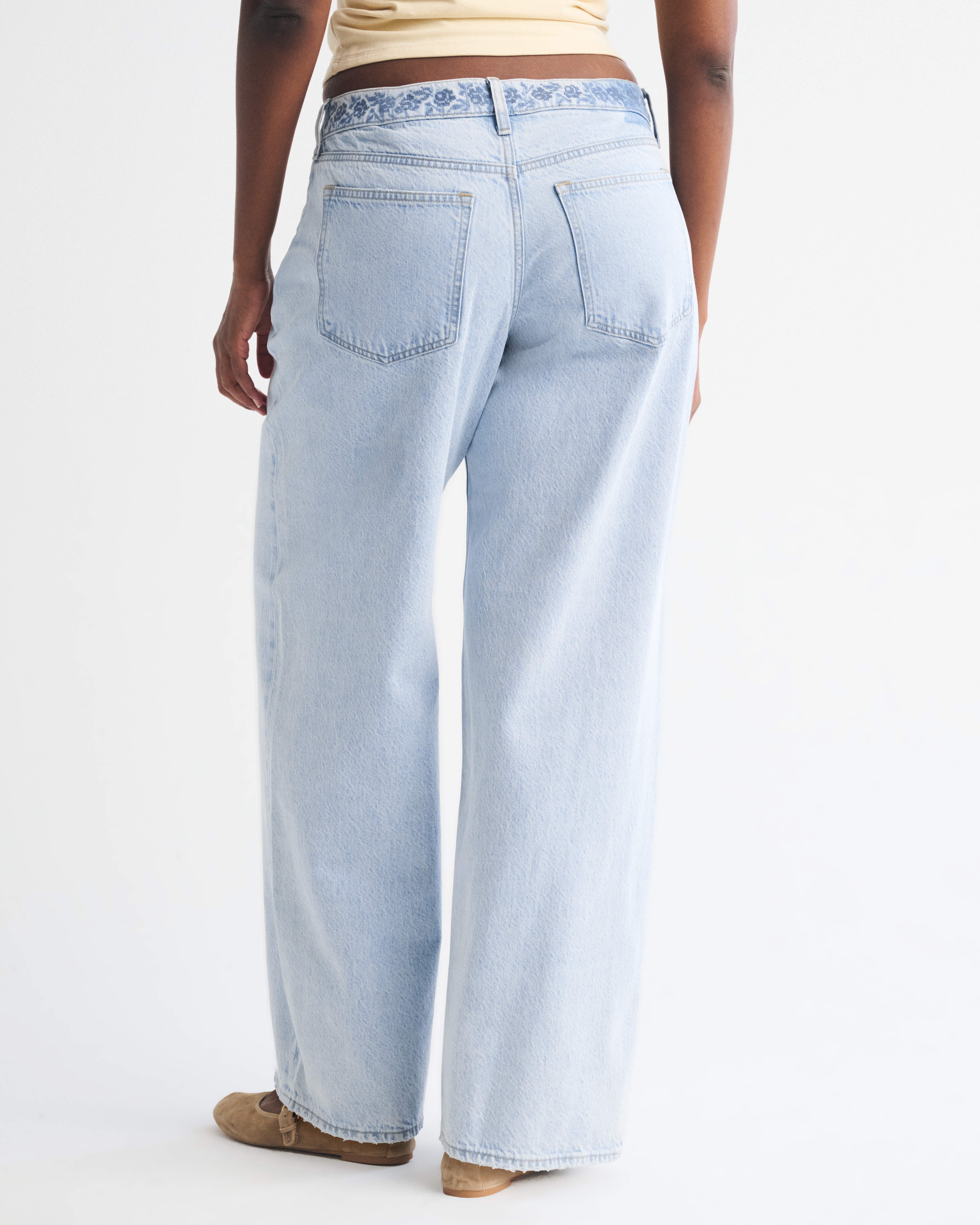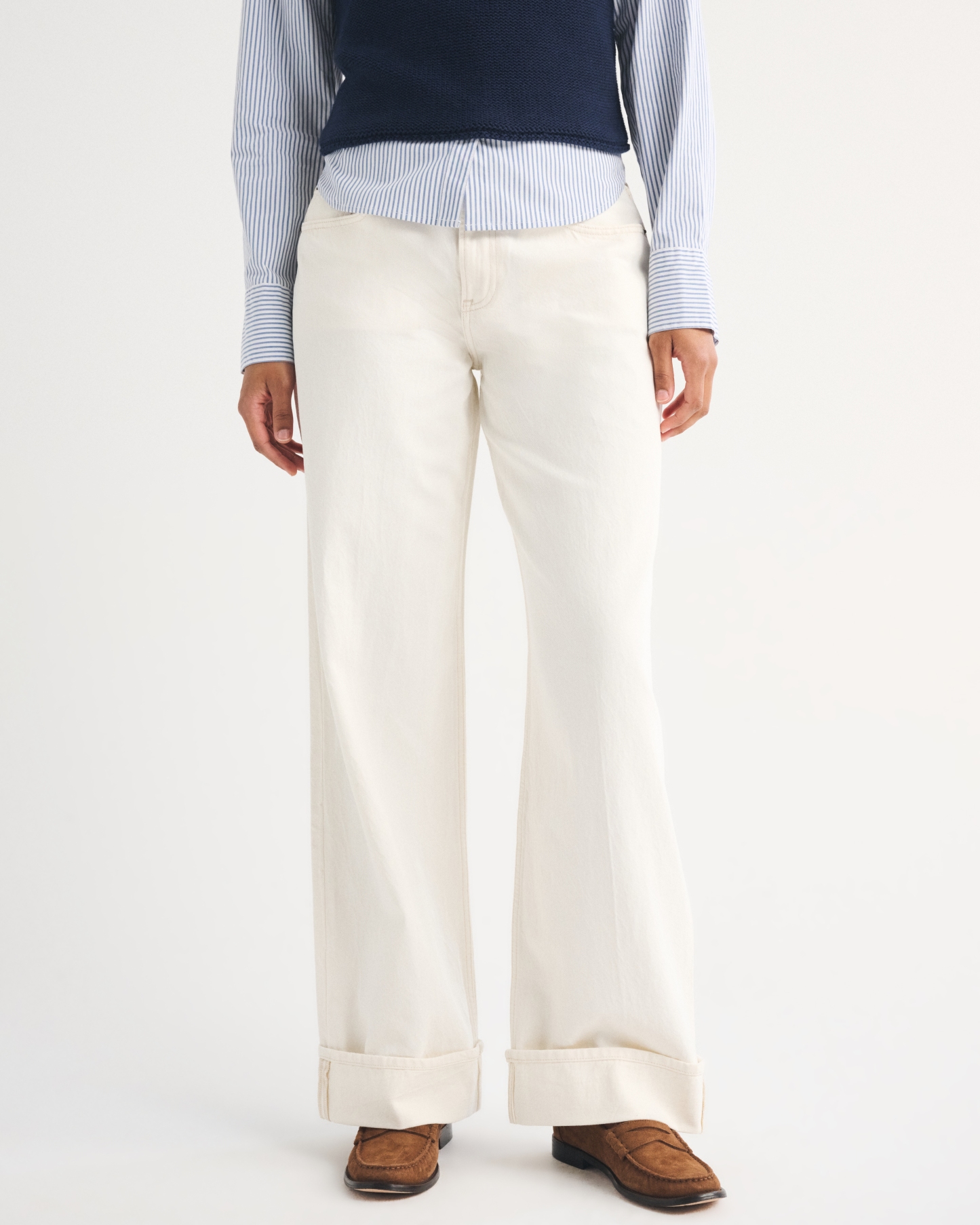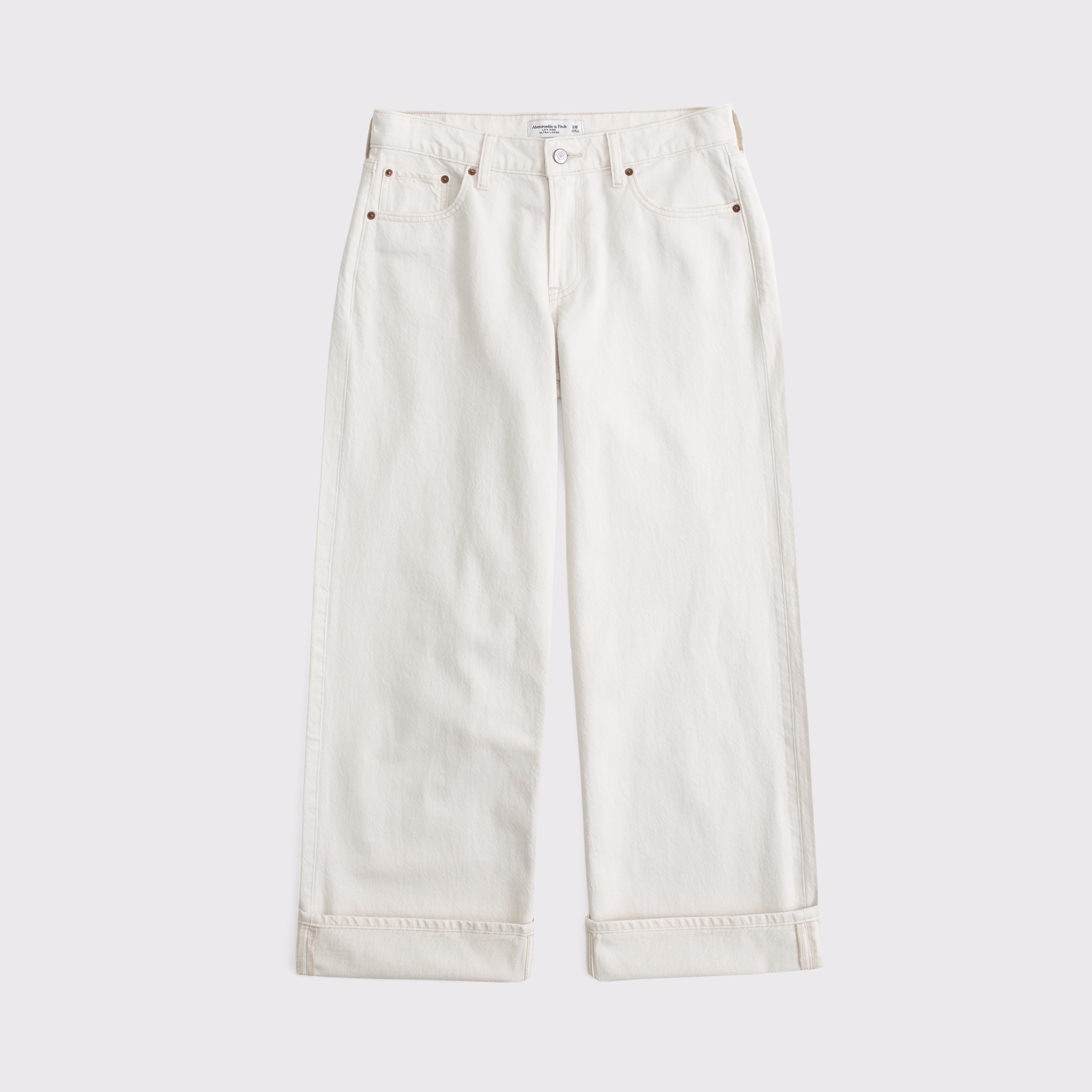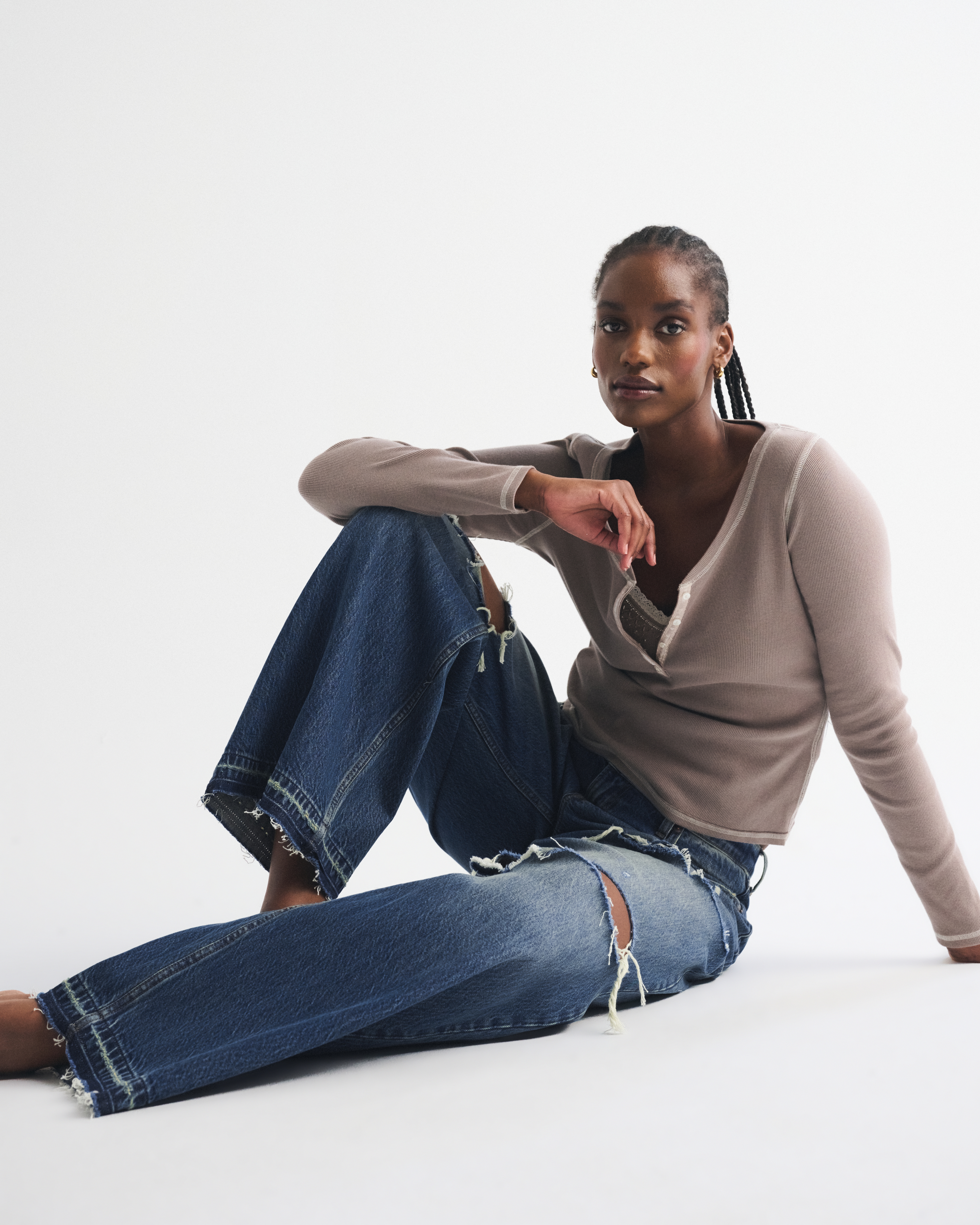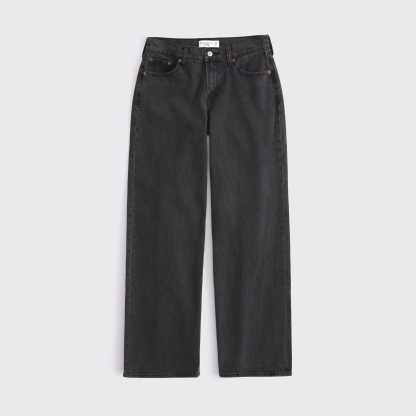 Our Curve Love ultra loose jeans in a dark wash with a cuffed hem. This fit features a low rise, is relaxed at the waist and hips and eases at the thigh into an ultra loose leg shape with a full-length inseam. We recommend buying your true size for a baggier fit. Size down for a closer fit. The viral fit that eliminates waist gap: Curve Love features additional room through the hip and thigh for curve-hugging comfort. This jean is made from our Drapey Rigid denim, a super soft authentic cotton fabric with no stretch. Imported.