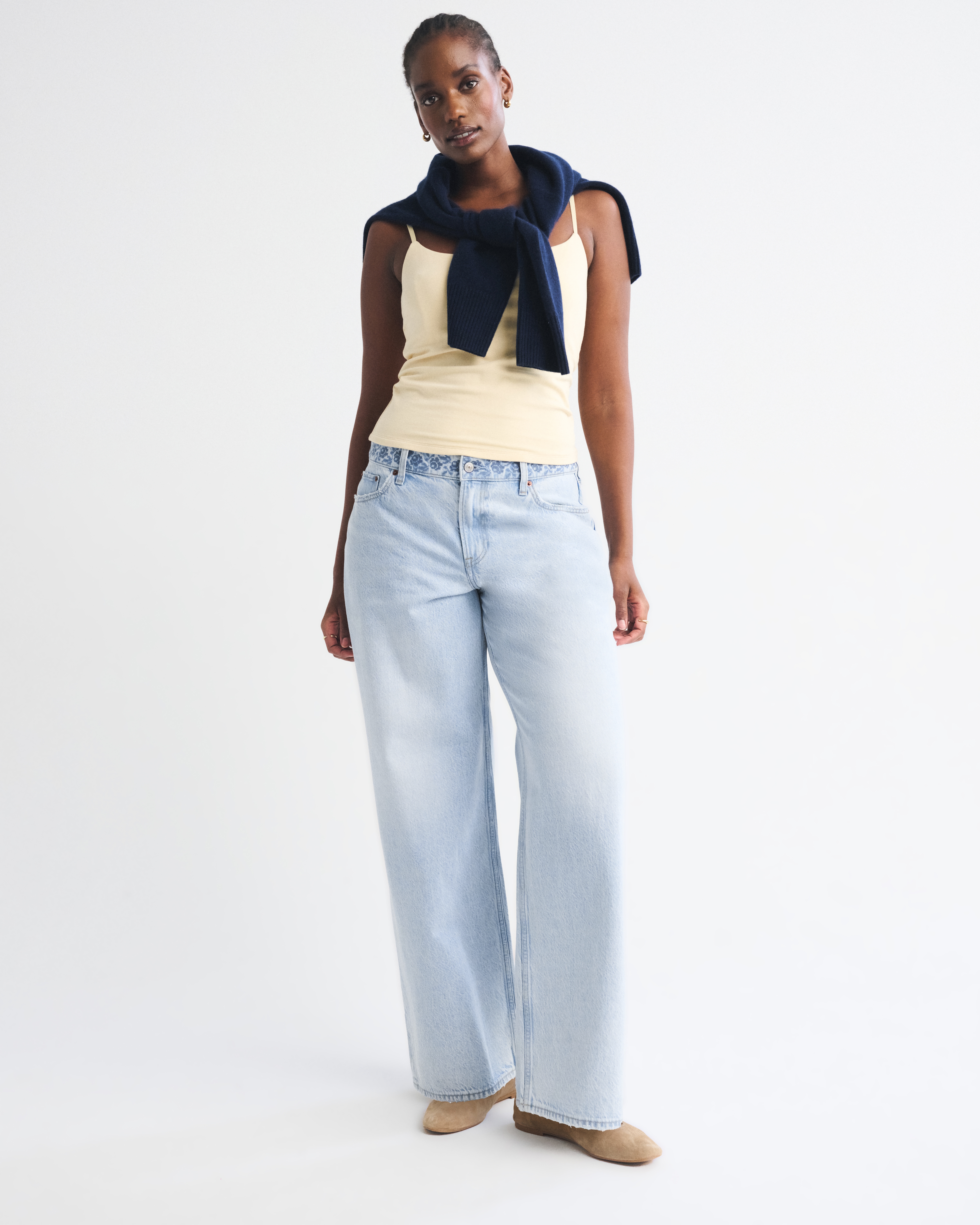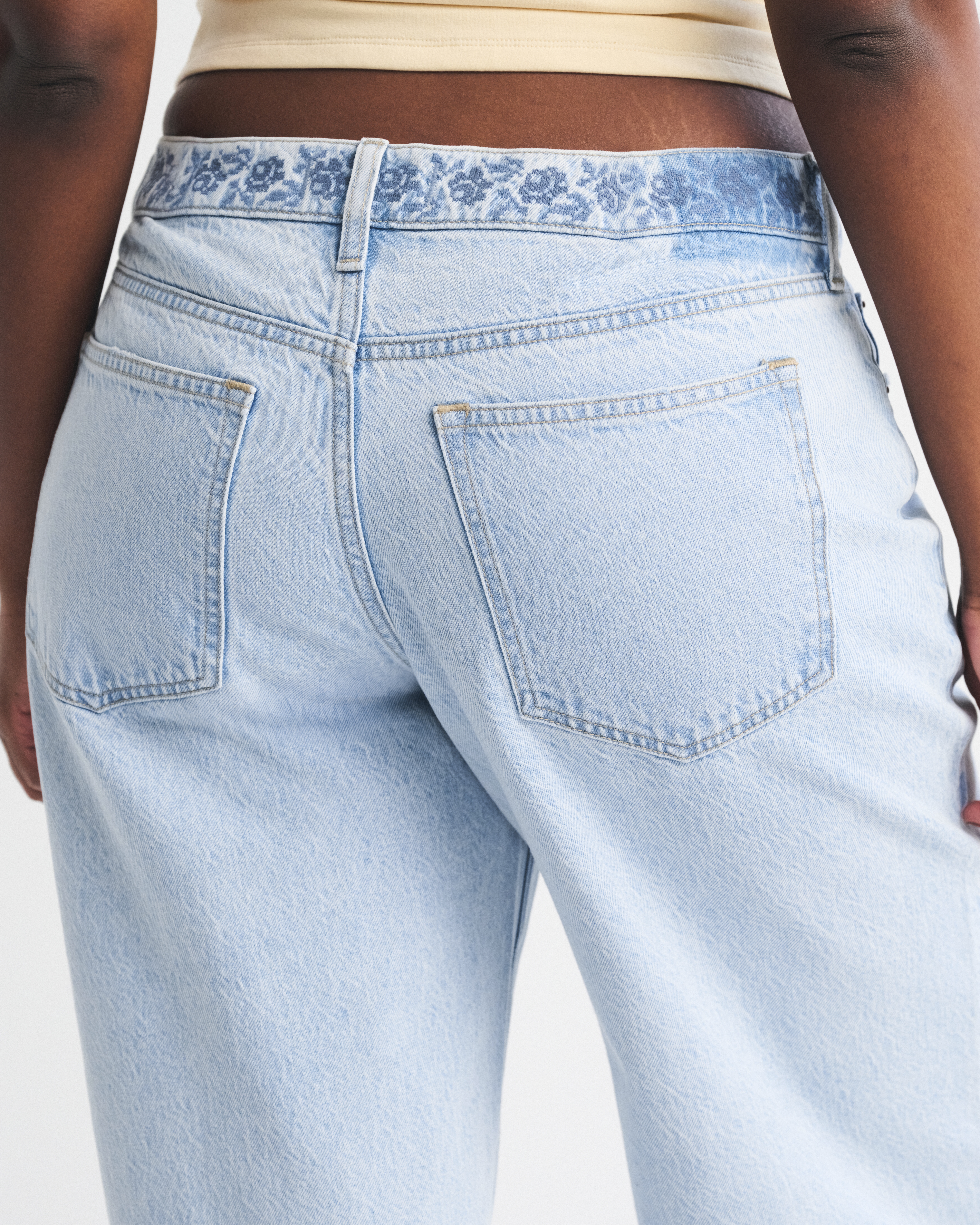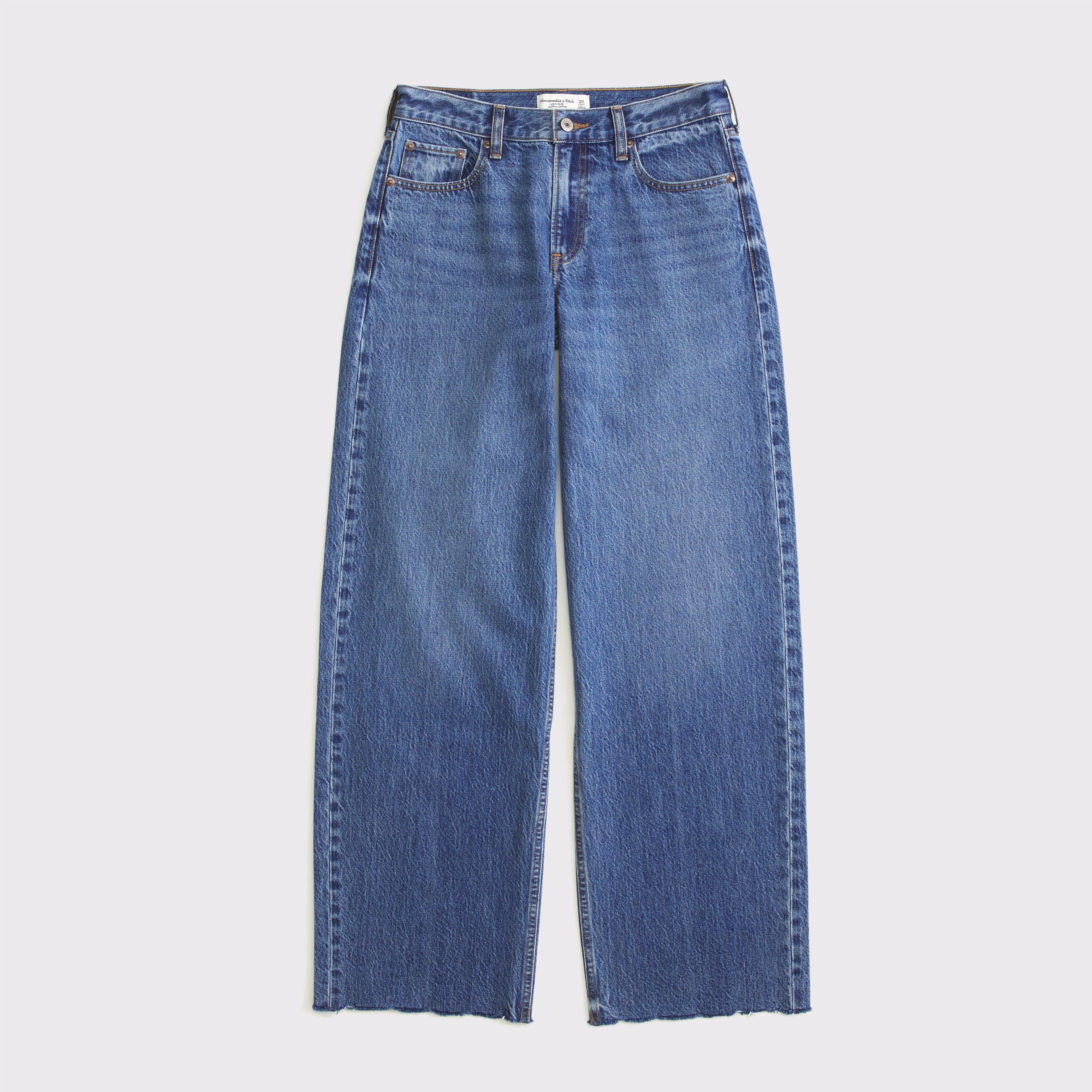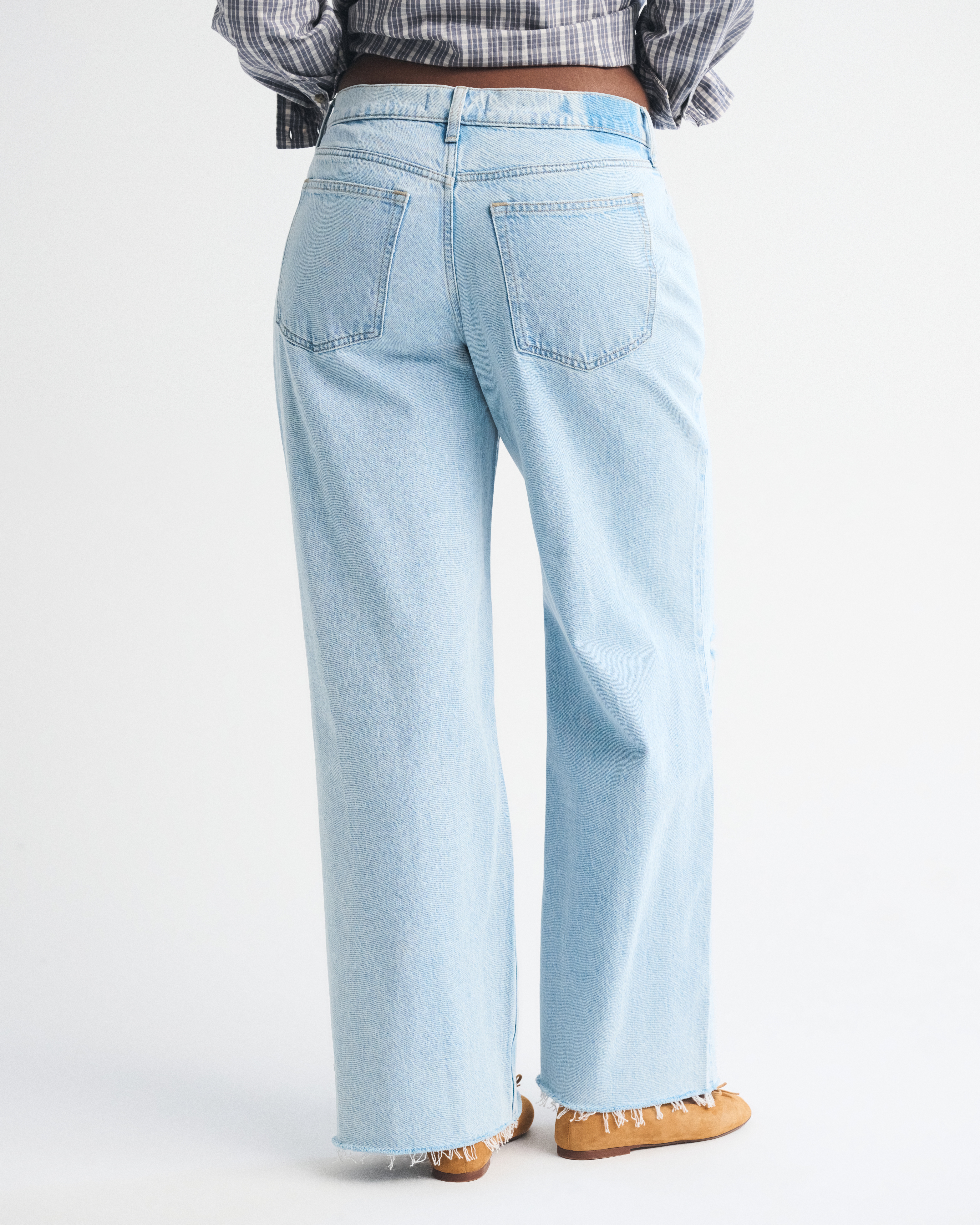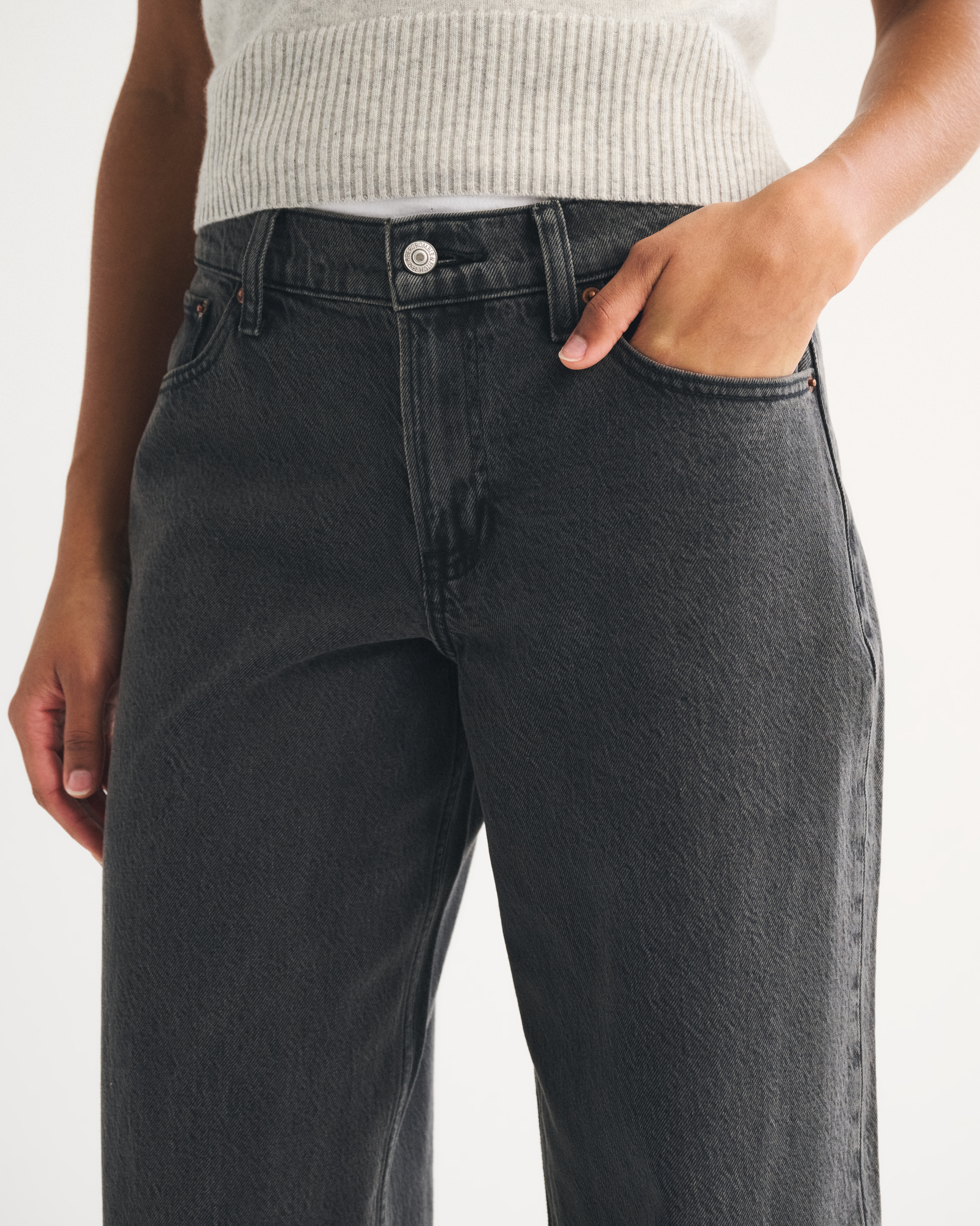 Our Curve Love ultra loose jeans in a dark wash with a cuffed hem. This fit features a low rise, is relaxed at the waist and hips and eases at the thigh into an ultra loose leg shape with a full-length inseam. We recommend buying your true size for a baggier fit. Size down for a closer fit. The viral fit that eliminates waist gap: Curve Love features additional room through the hip and thigh for curve-hugging comfort. This jean is made from our Drapey Rigid denim, a super soft authentic cotton fabric with no stretch. Imported.