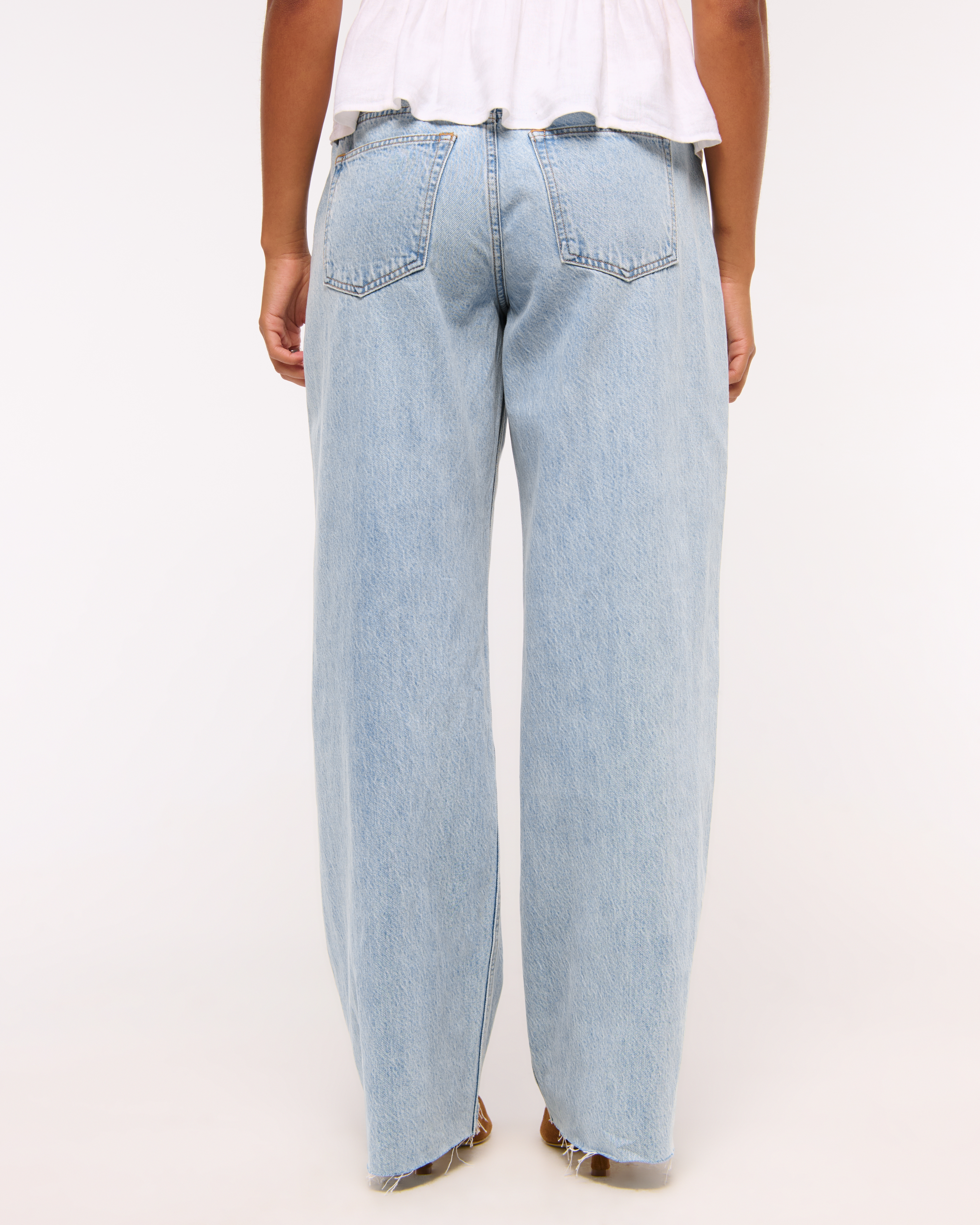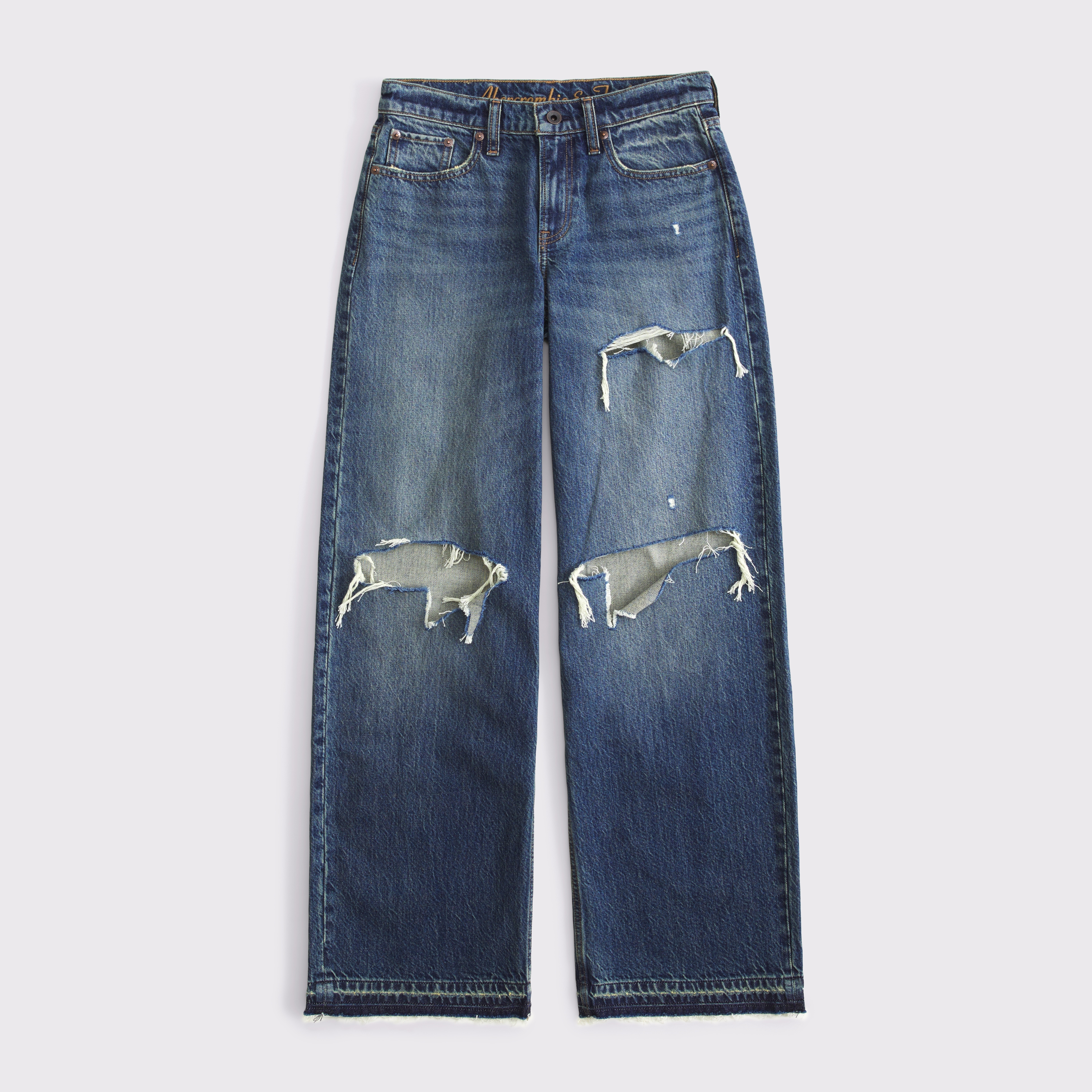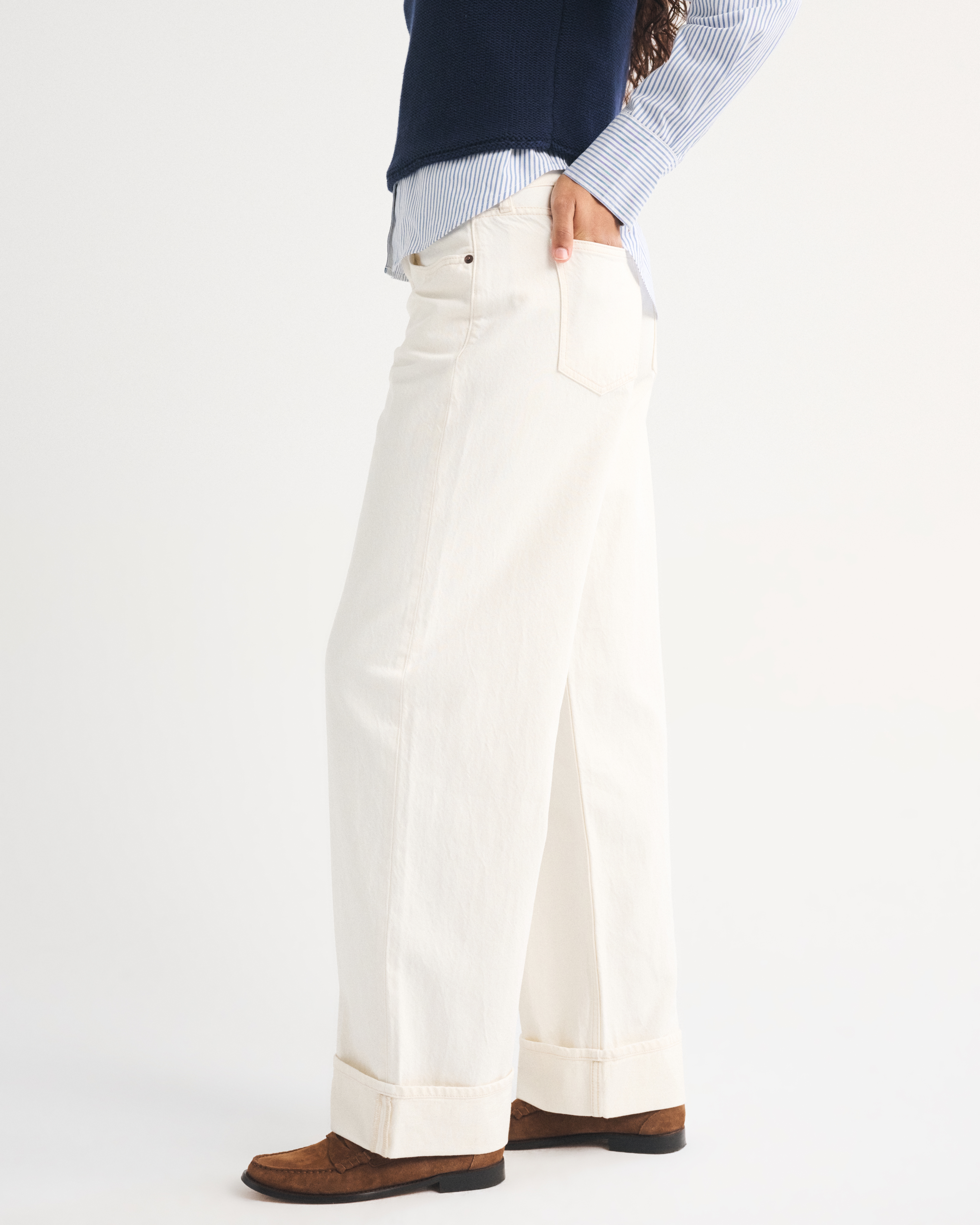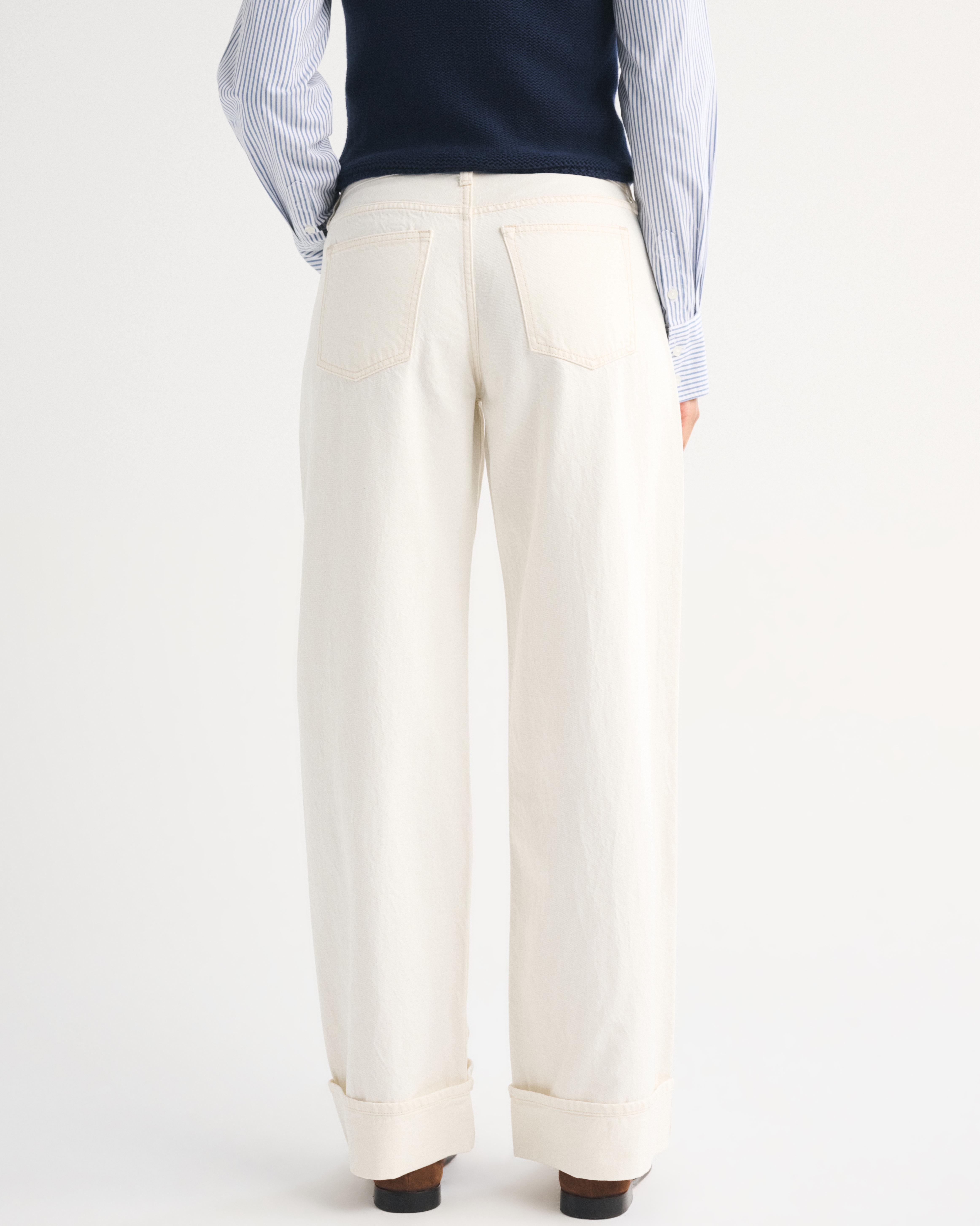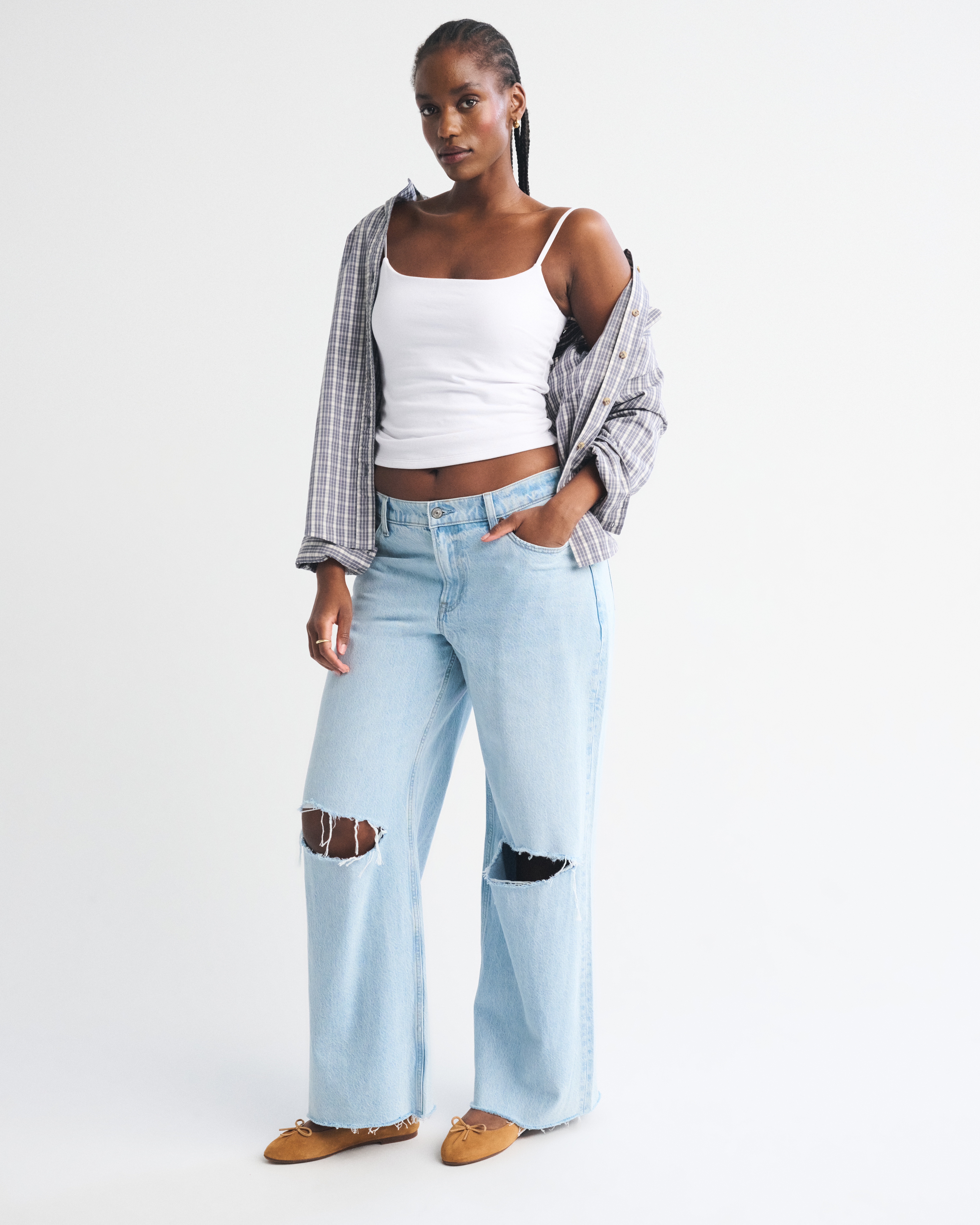 Our Curve Love ultra loose jeans in a dark wash with a cuffed hem. This fit features a low rise, is relaxed at the waist and hips and eases at the thigh into an ultra loose leg shape with a full-length inseam. We recommend buying your true size for a baggier fit. Size down for a closer fit. The viral fit that eliminates waist gap: Curve Love features additional room through the hip and thigh for curve-hugging comfort. This jean is made from our Drapey Rigid denim, a super soft authentic cotton fabric with no stretch. Imported.