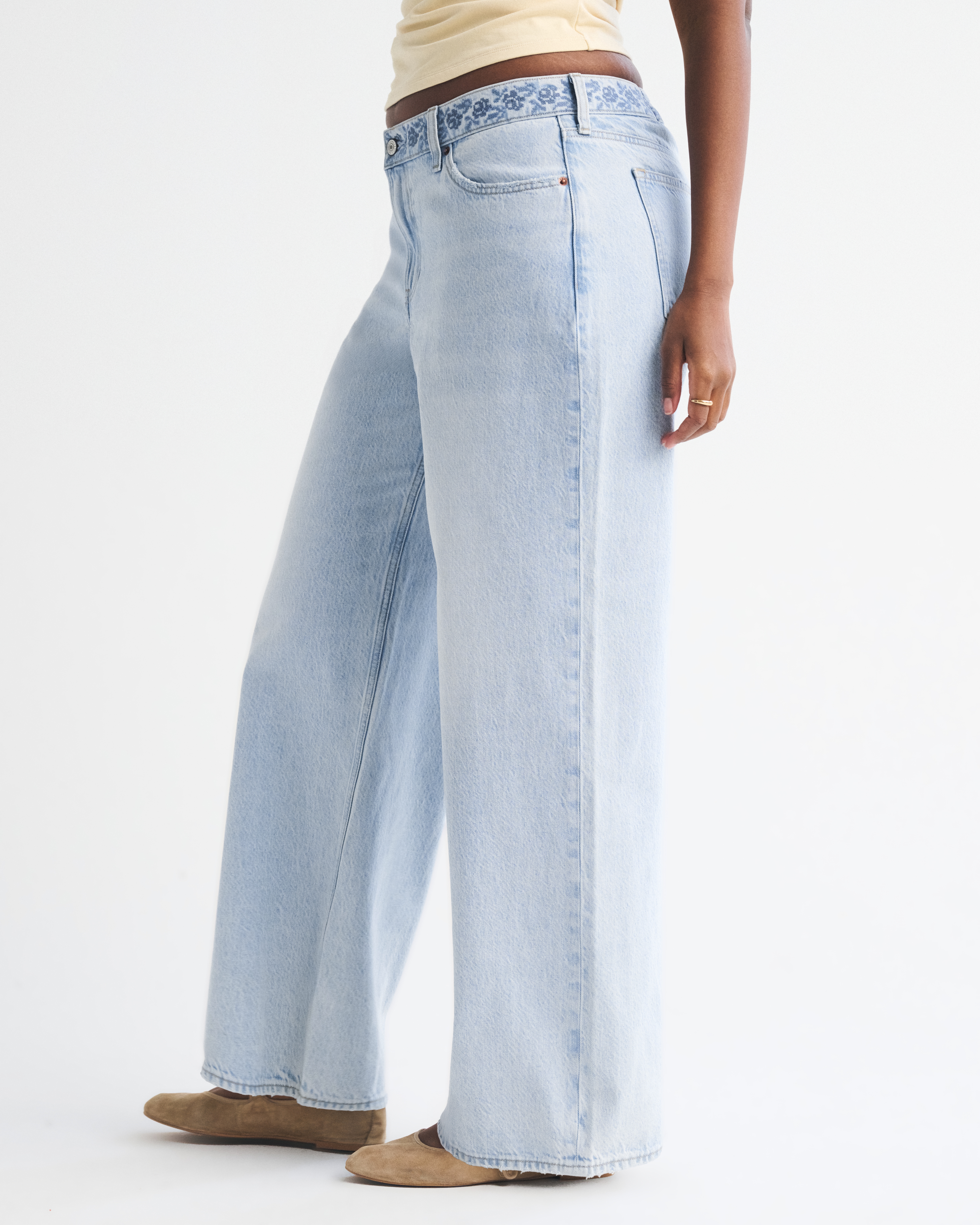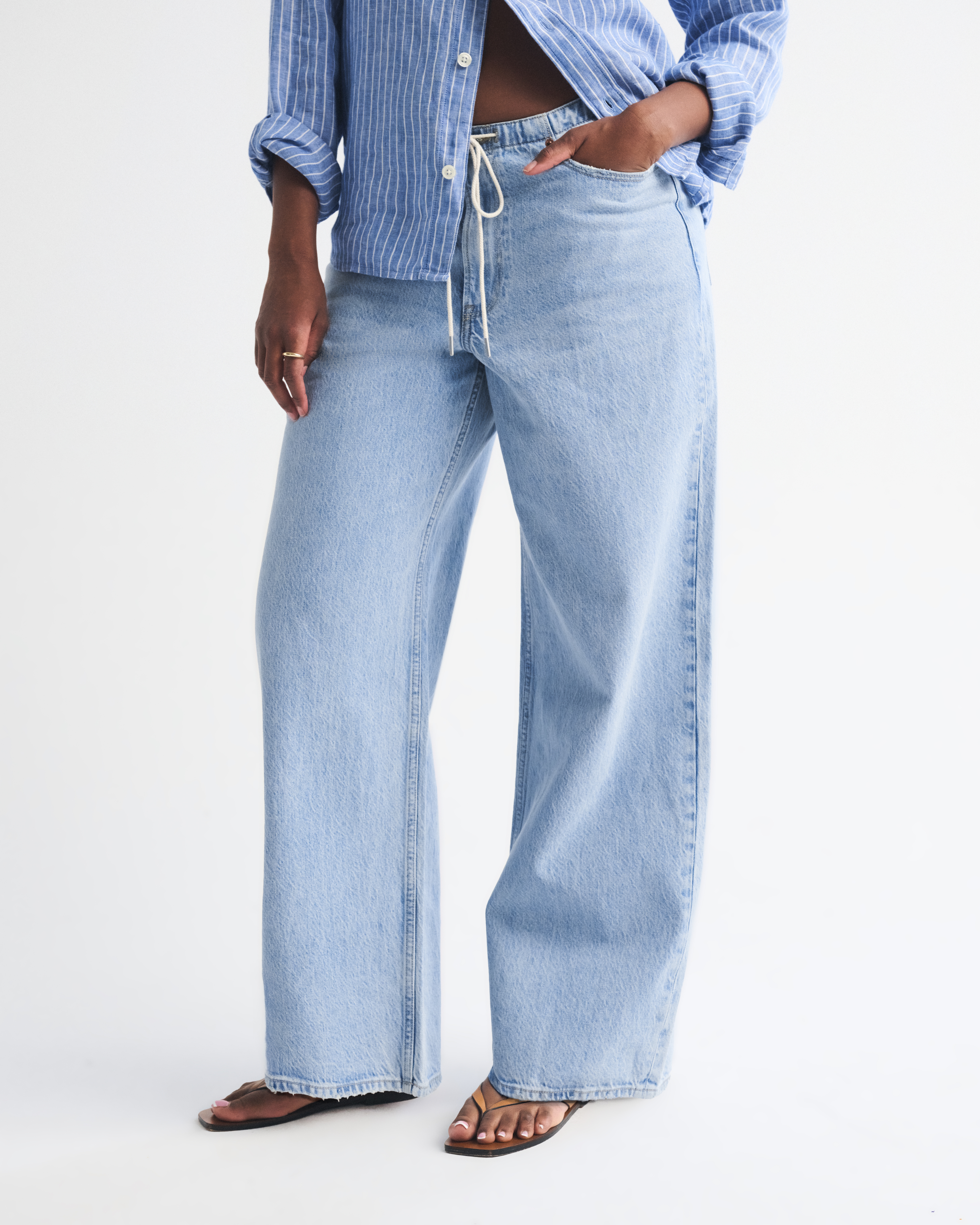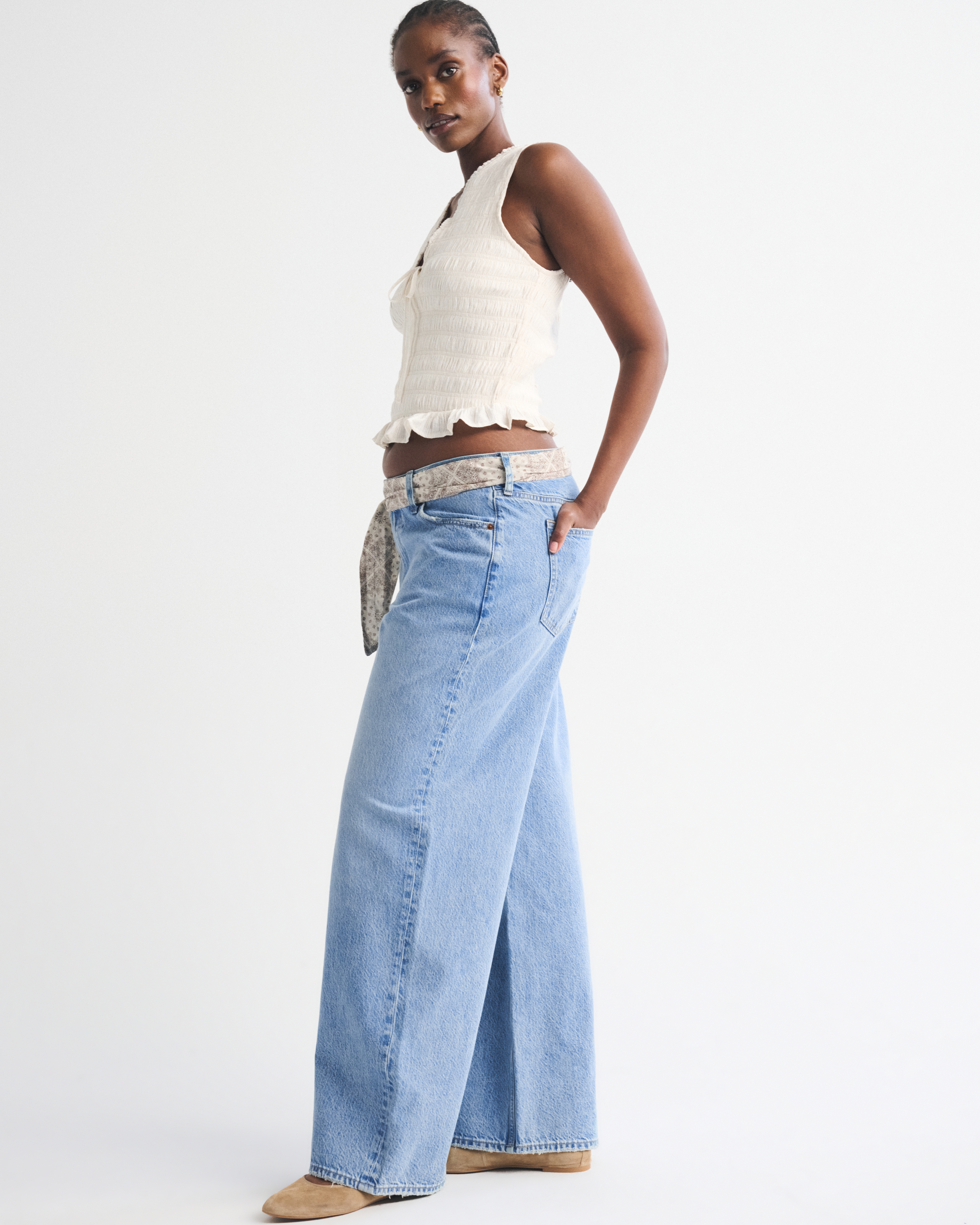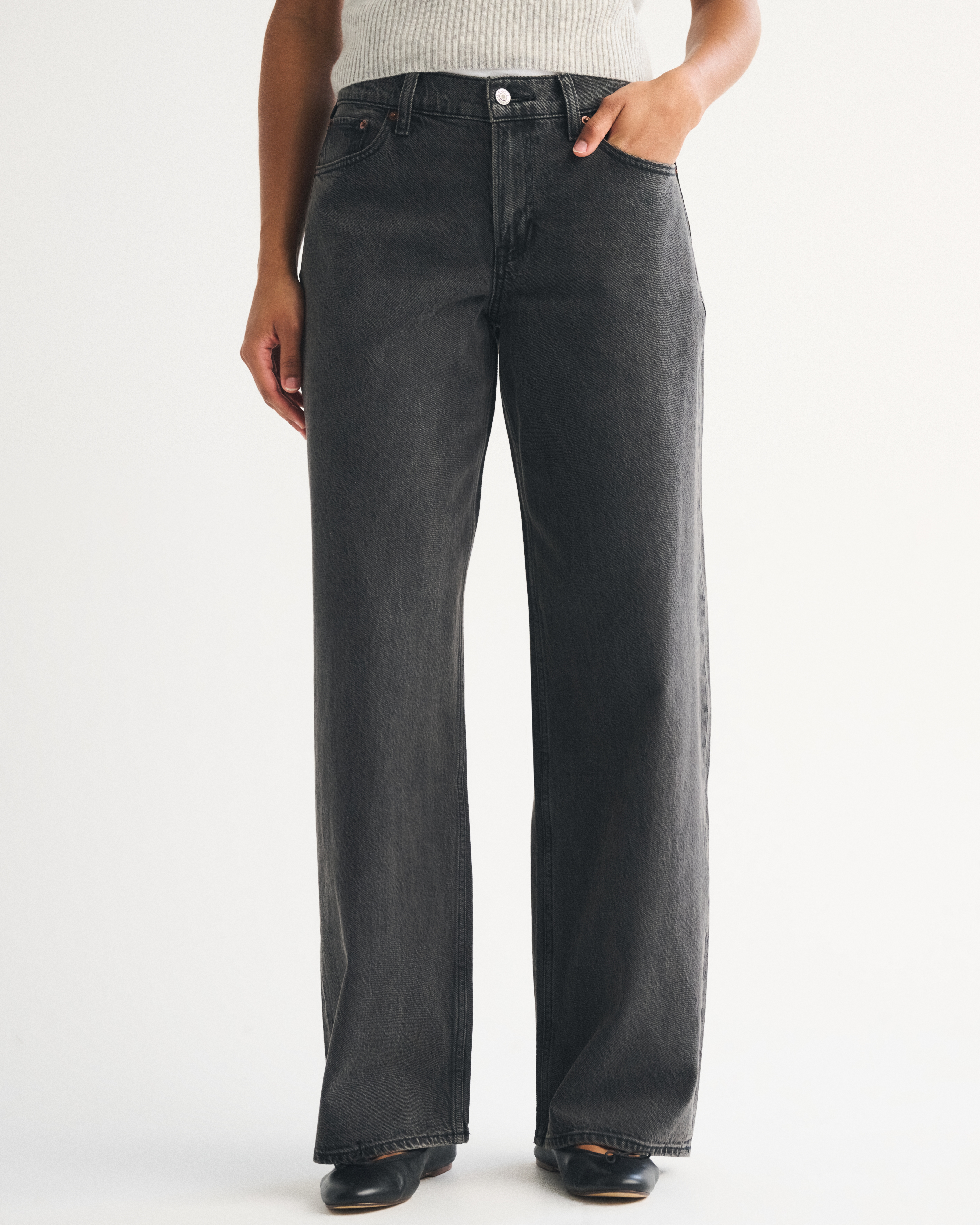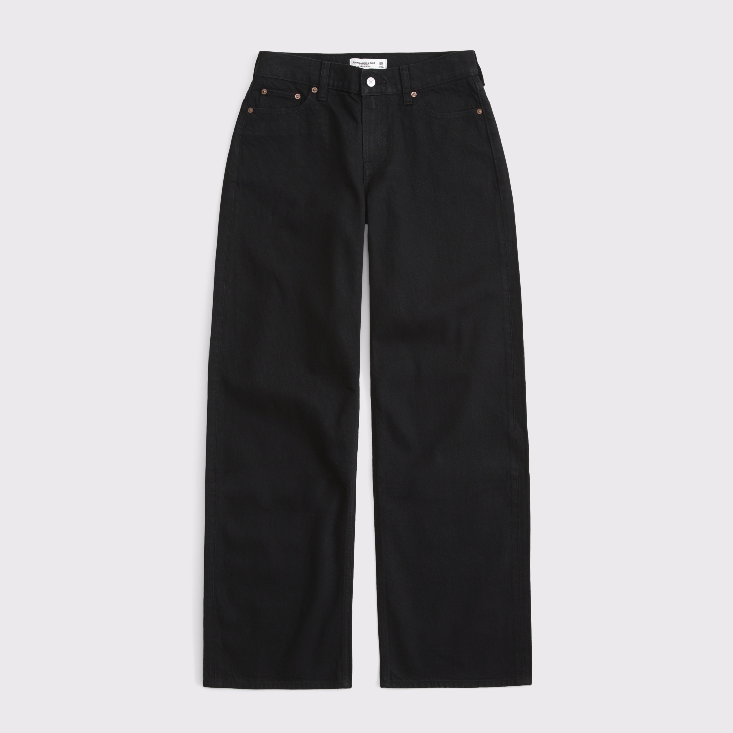 Our Curve Love ultra loose jeans in a dark wash with a cuffed hem. This fit features a low rise, is relaxed at the waist and hips and eases at the thigh into an ultra loose leg shape with a full-length inseam. We recommend buying your true size for a baggier fit. Size down for a closer fit. The viral fit that eliminates waist gap: Curve Love features additional room through the hip and thigh for curve-hugging comfort. This jean is made from our Drapey Rigid denim, a super soft authentic cotton fabric with no stretch. Imported.