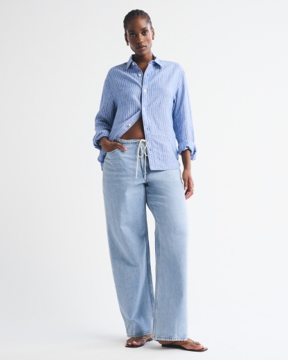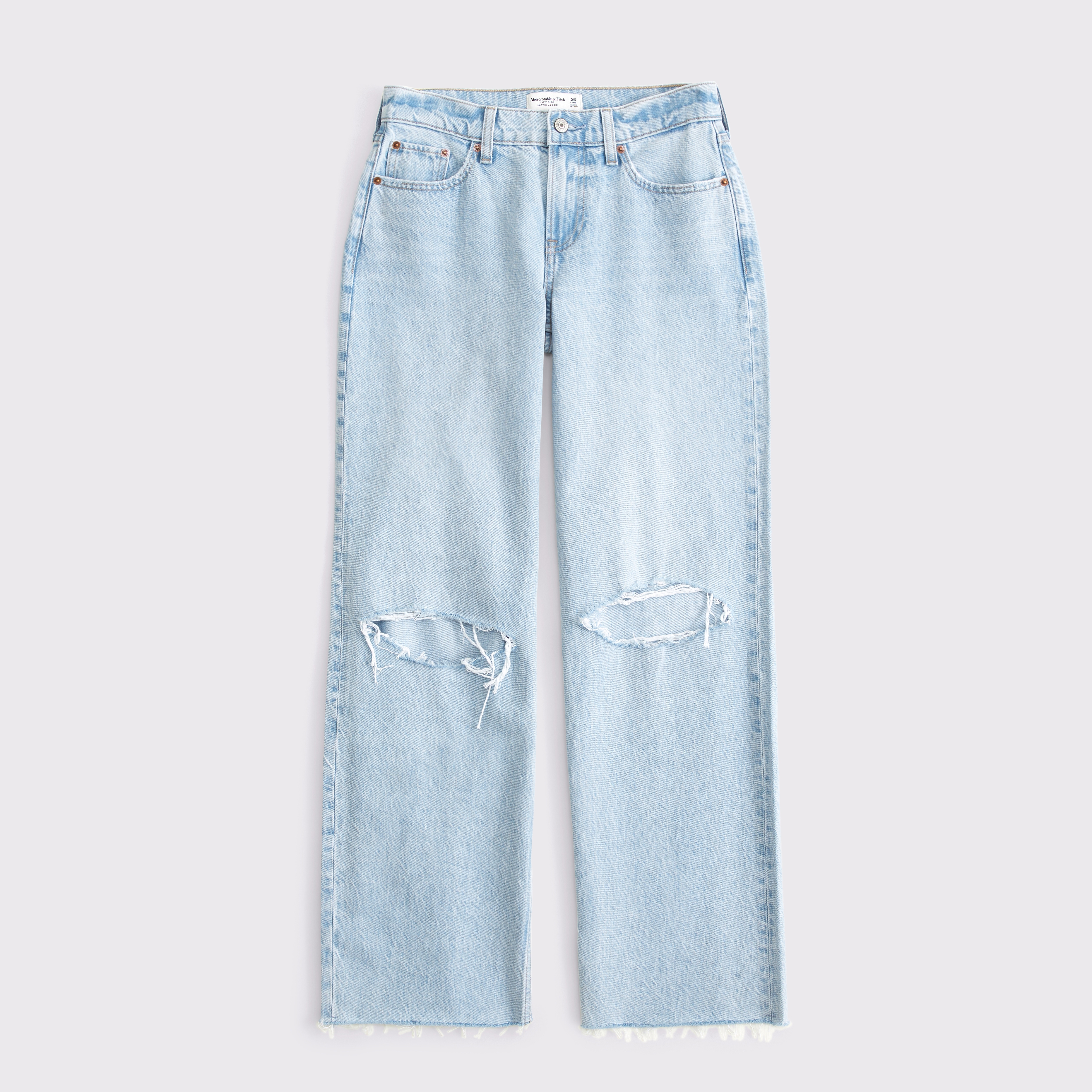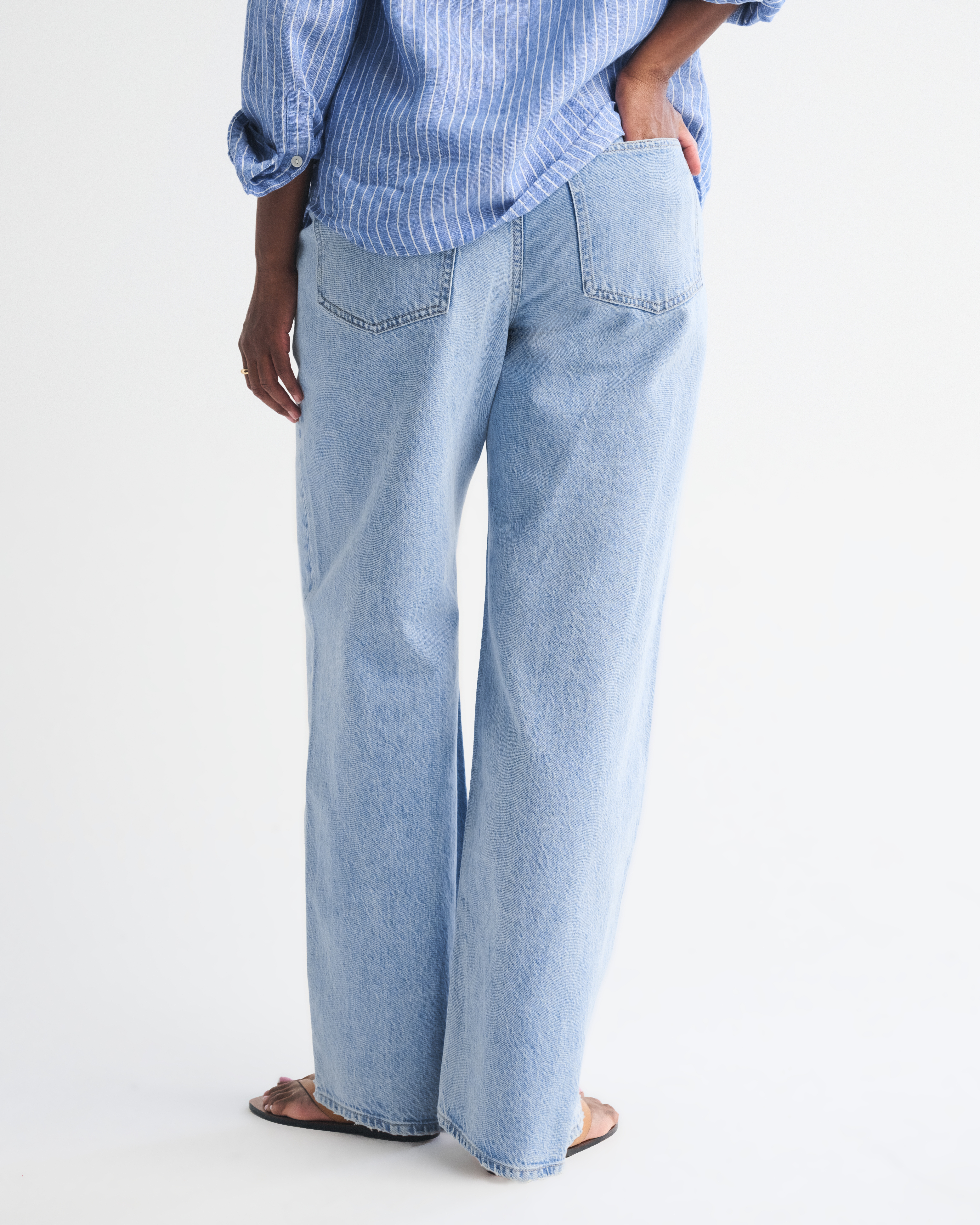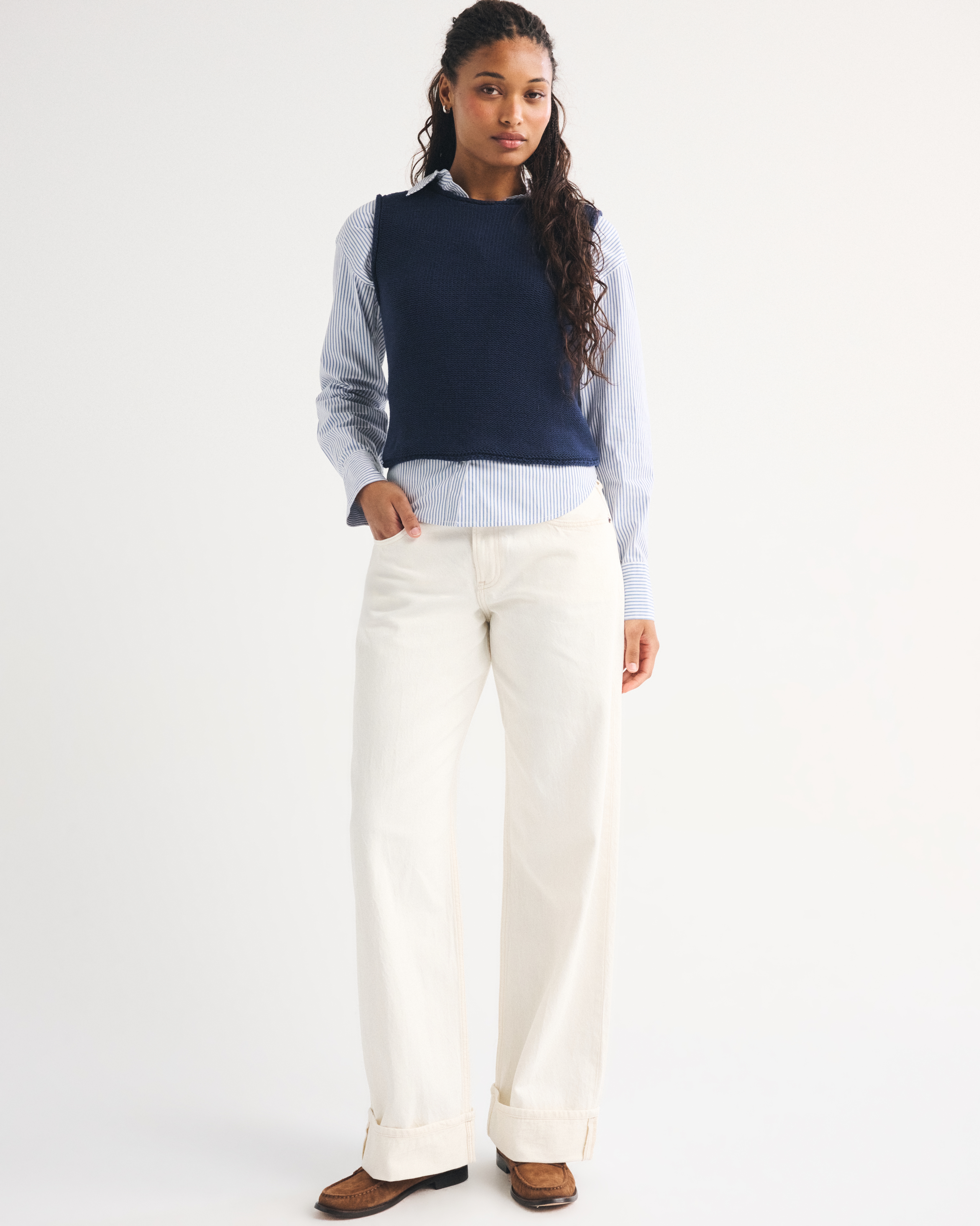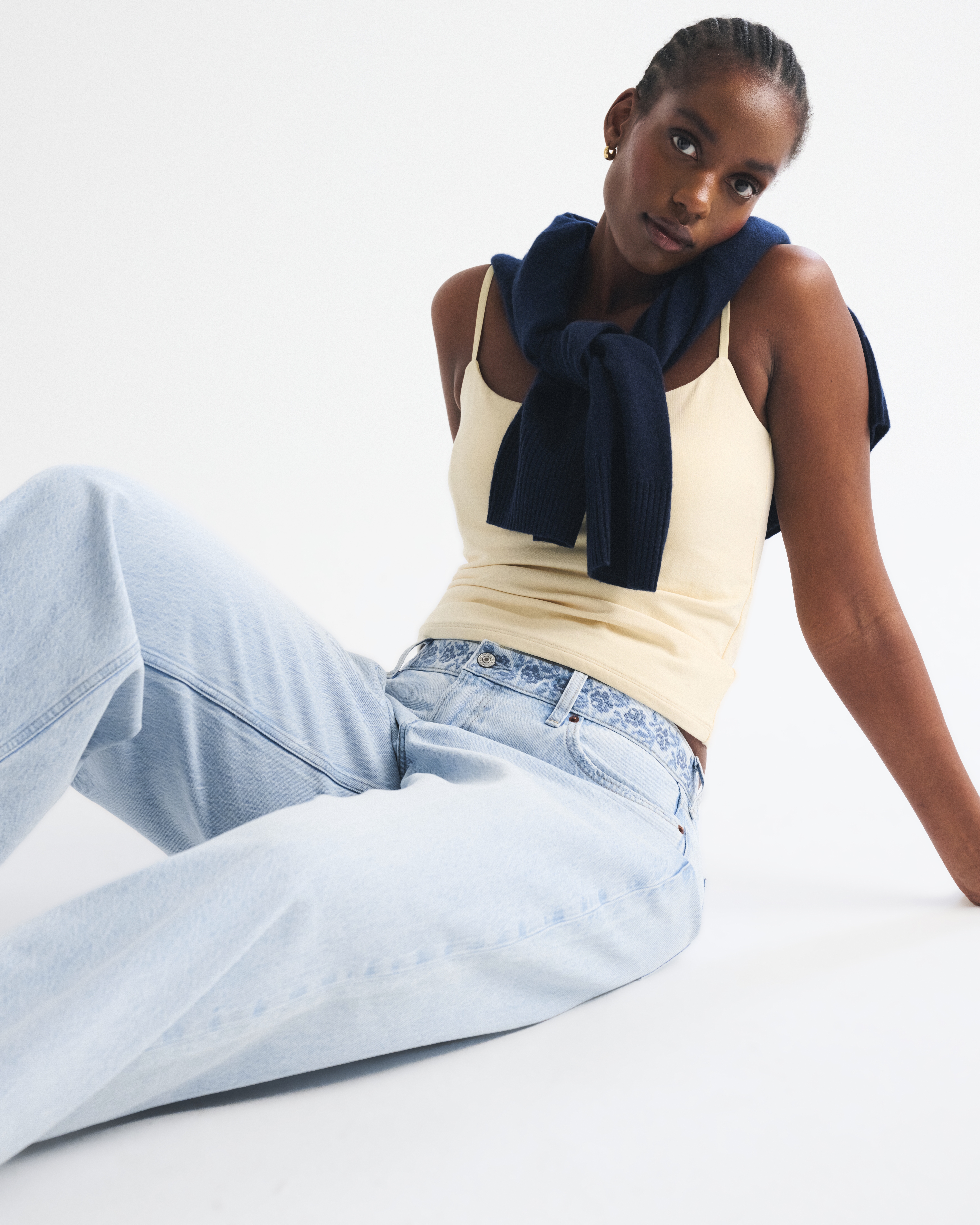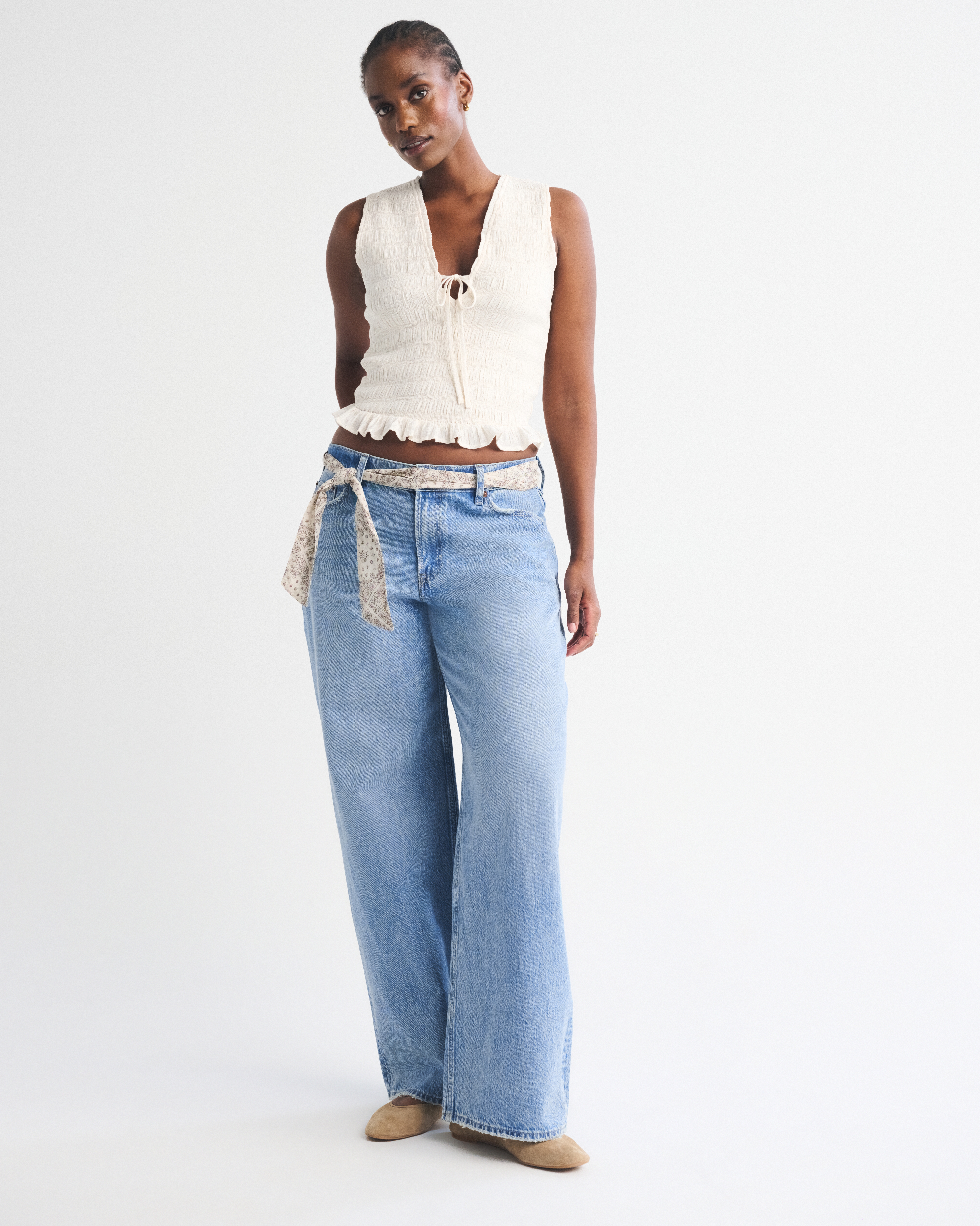 Our Curve Love ultra loose jeans in a dark wash with a cuffed hem. This fit features a low rise, is relaxed at the waist and hips and eases at the thigh into an ultra loose leg shape with a full-length inseam. We recommend buying your true size for a baggier fit. Size down for a closer fit. The viral fit that eliminates waist gap: Curve Love features additional room through the hip and thigh for curve-hugging comfort. This jean is made from our Drapey Rigid denim, a super soft authentic cotton fabric with no stretch. Imported.