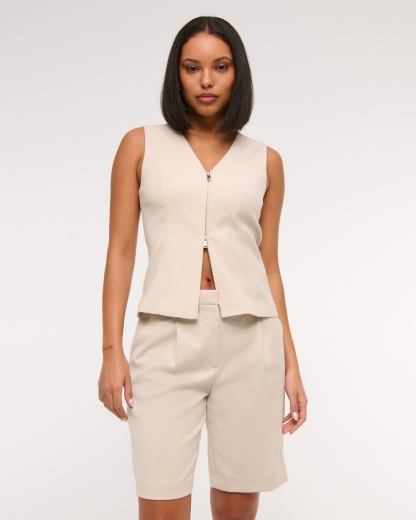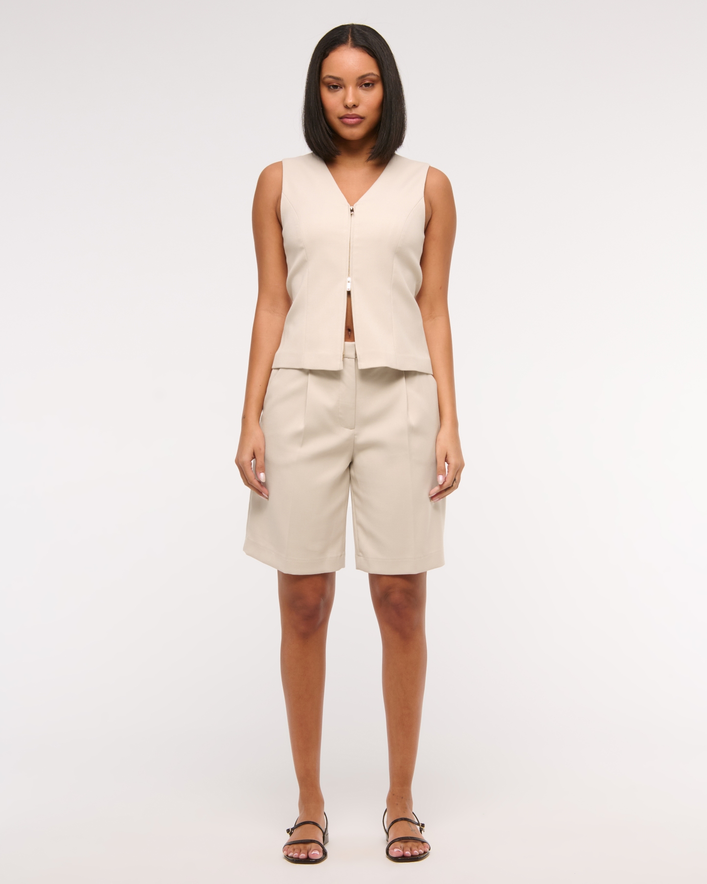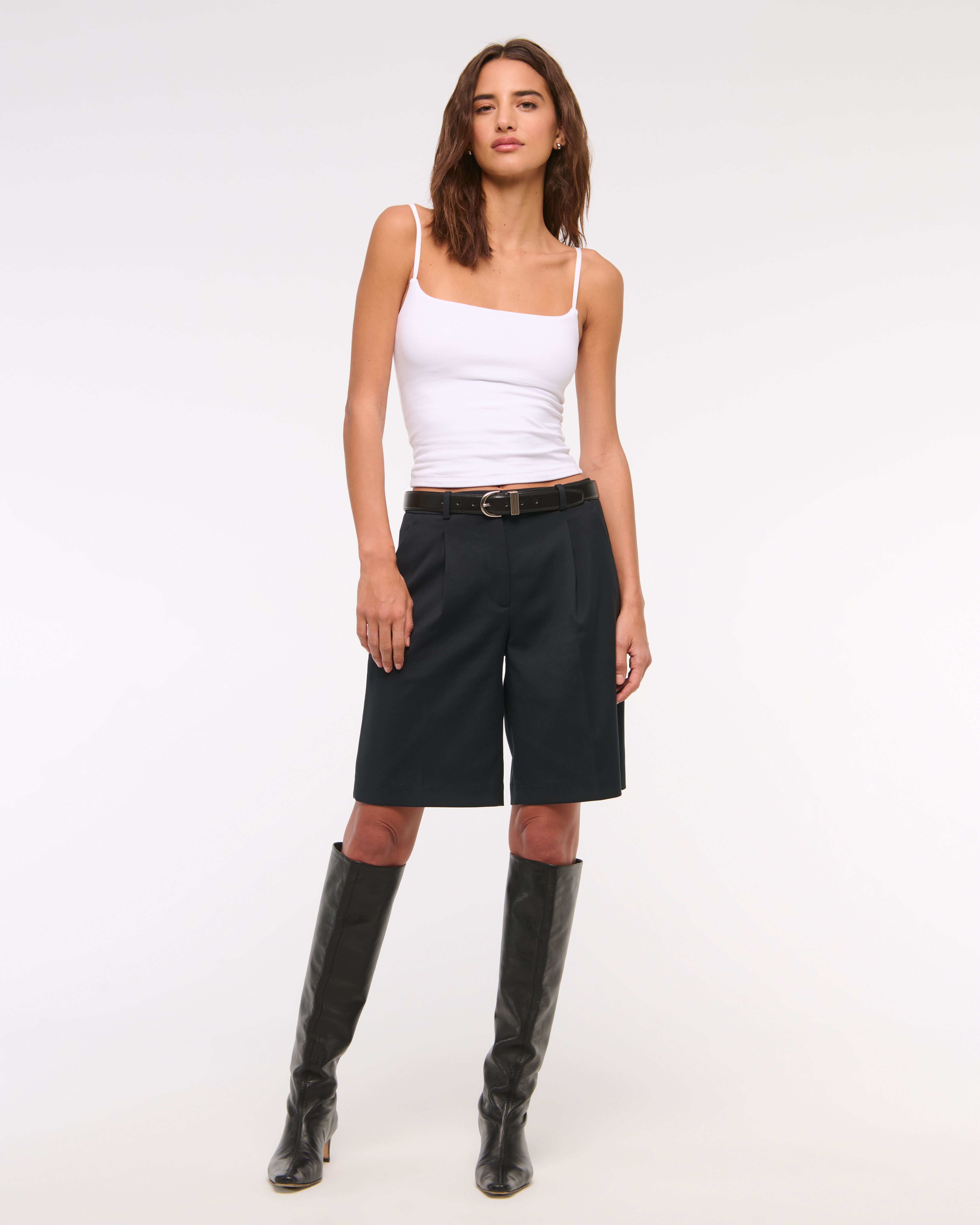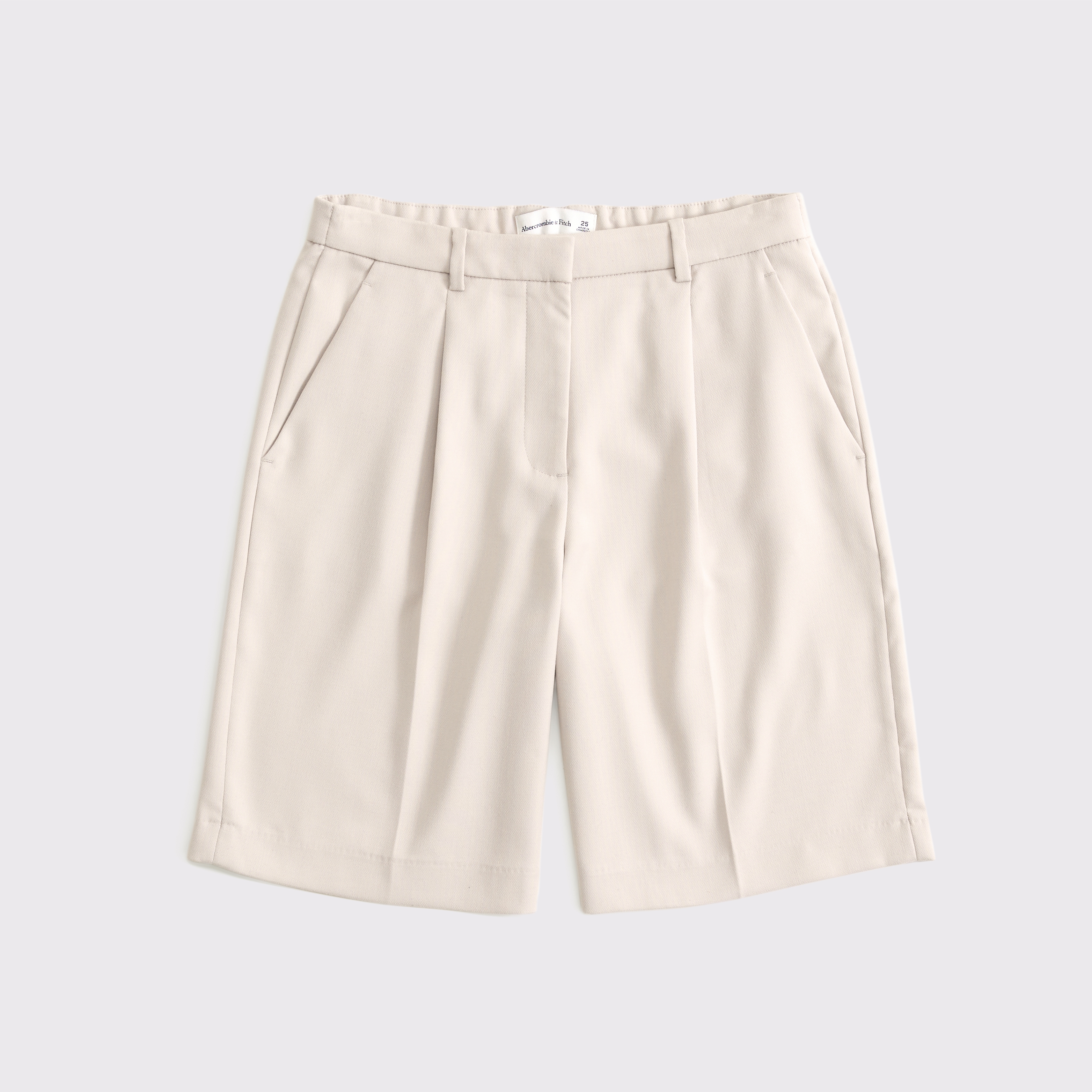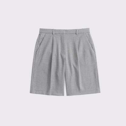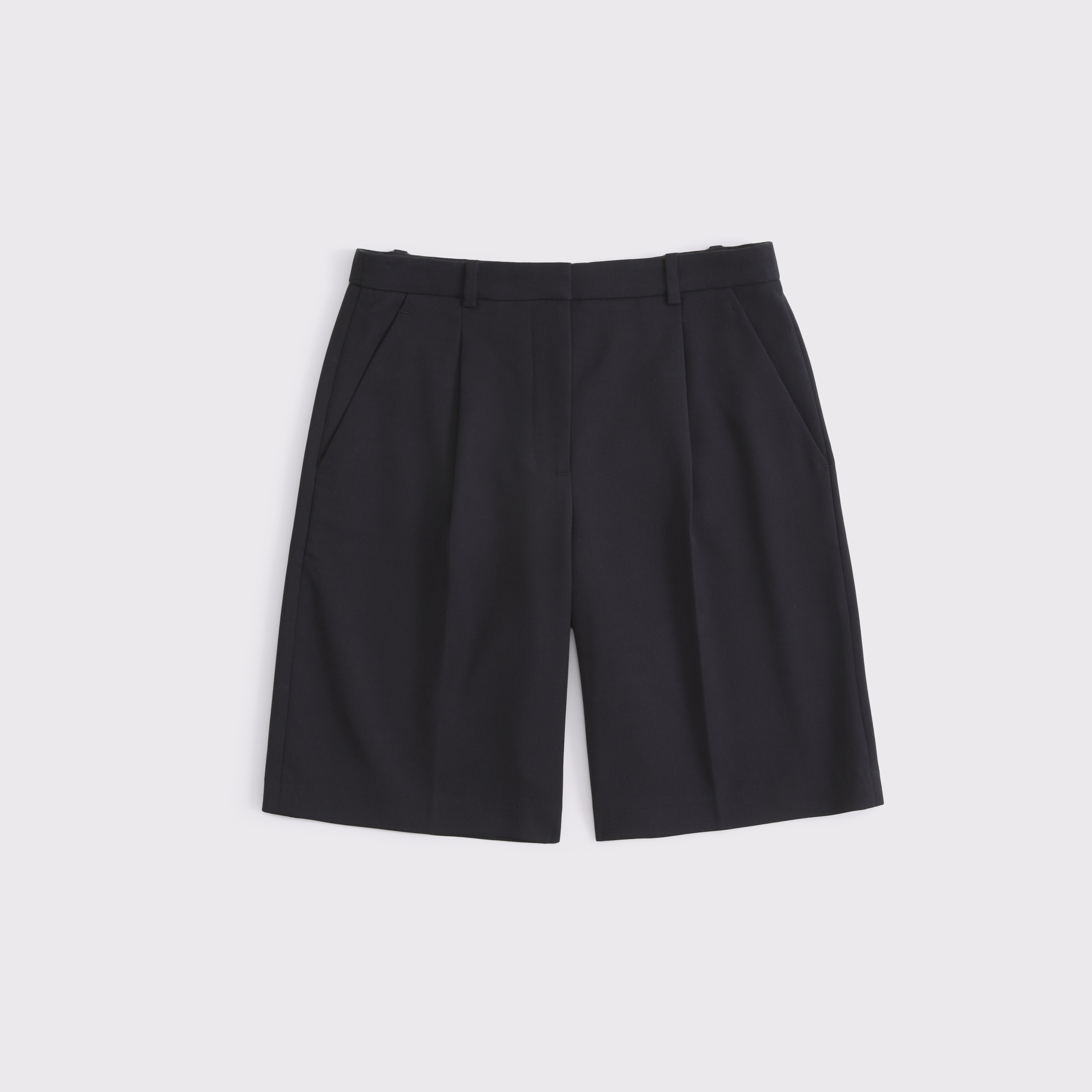 Our new mid rise comfy 9.5 inch (24 cm) shorts in a midweight suiting fabric, featuring on-trend pleating details, functional fly closure, belt loops, front pockets and non-functional back pocket. Imported.