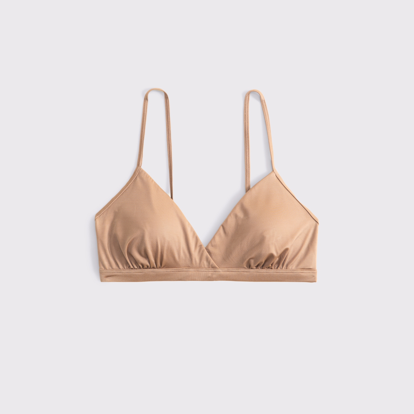 Our new soft v-neck bralette in our no-show satin fabric you'll love. Features removable pads, bottom band detail, adjustable straps and adjustable back clasp. Imported.