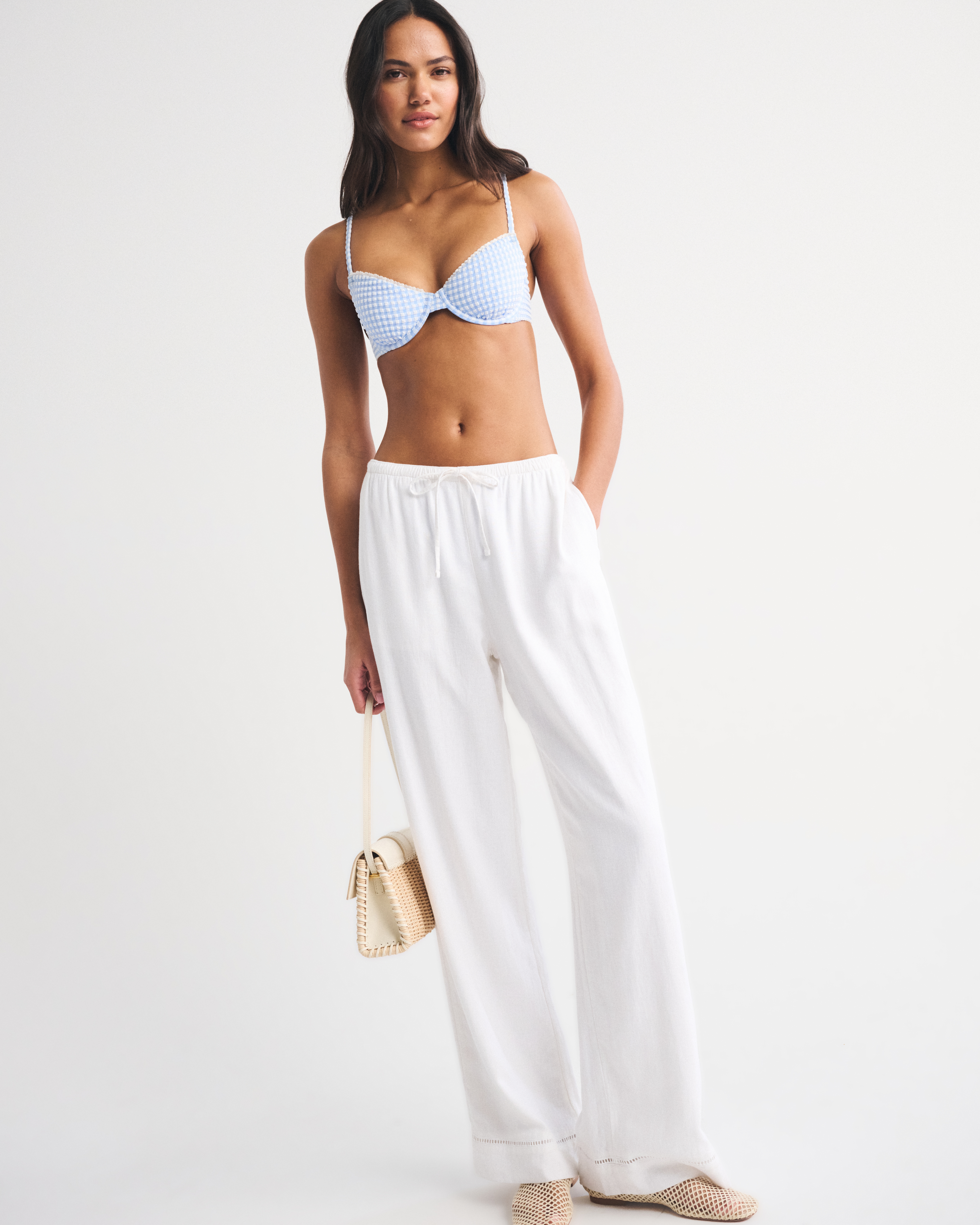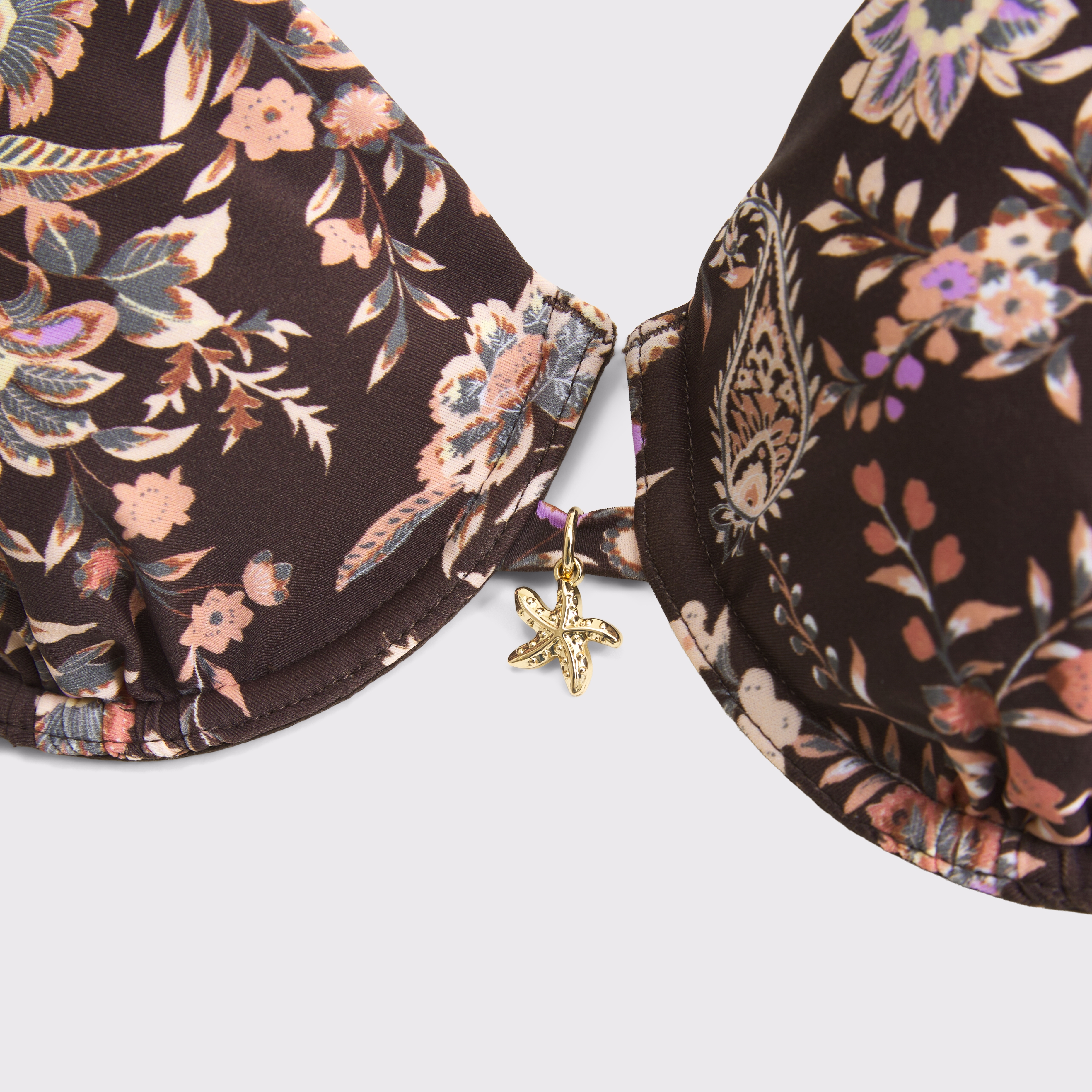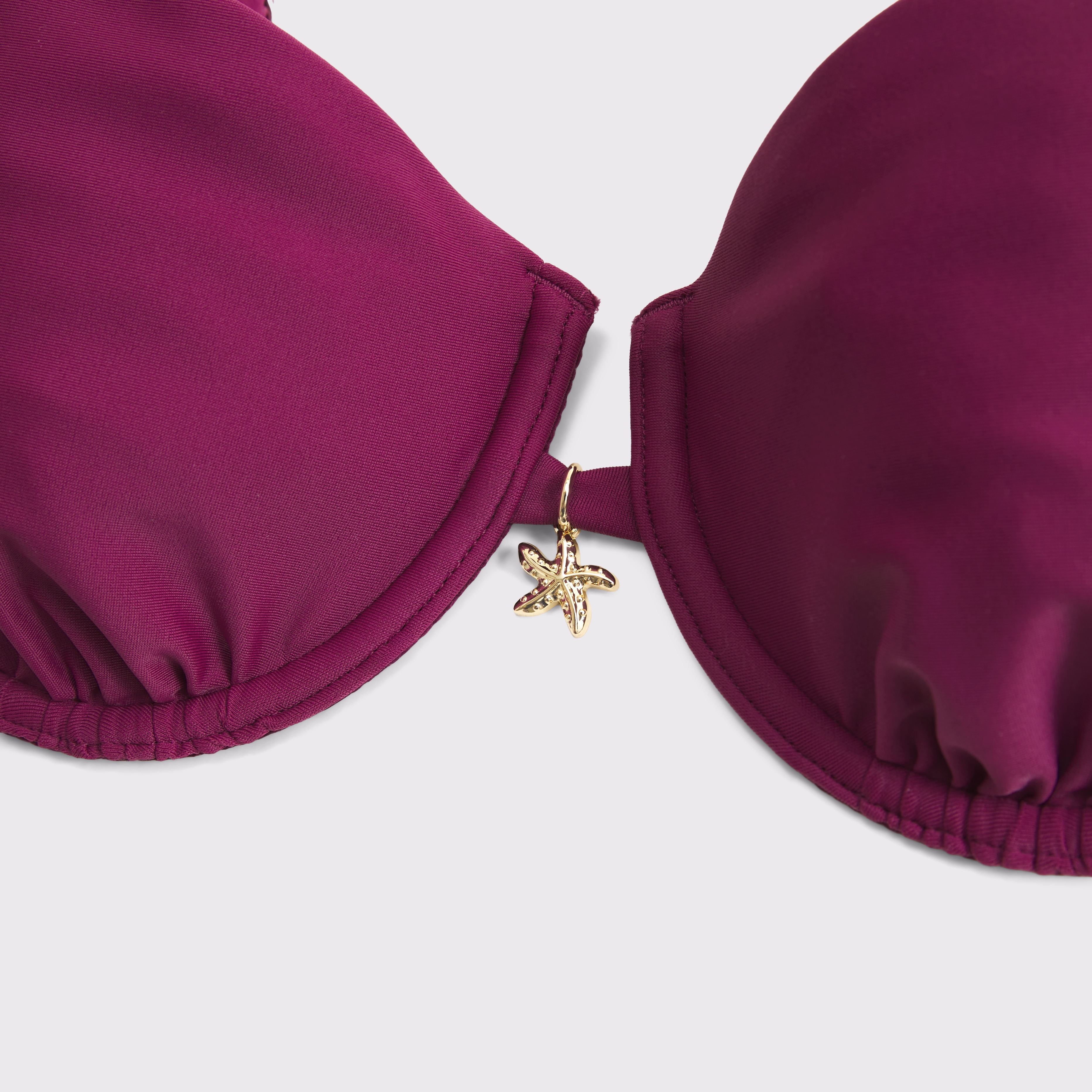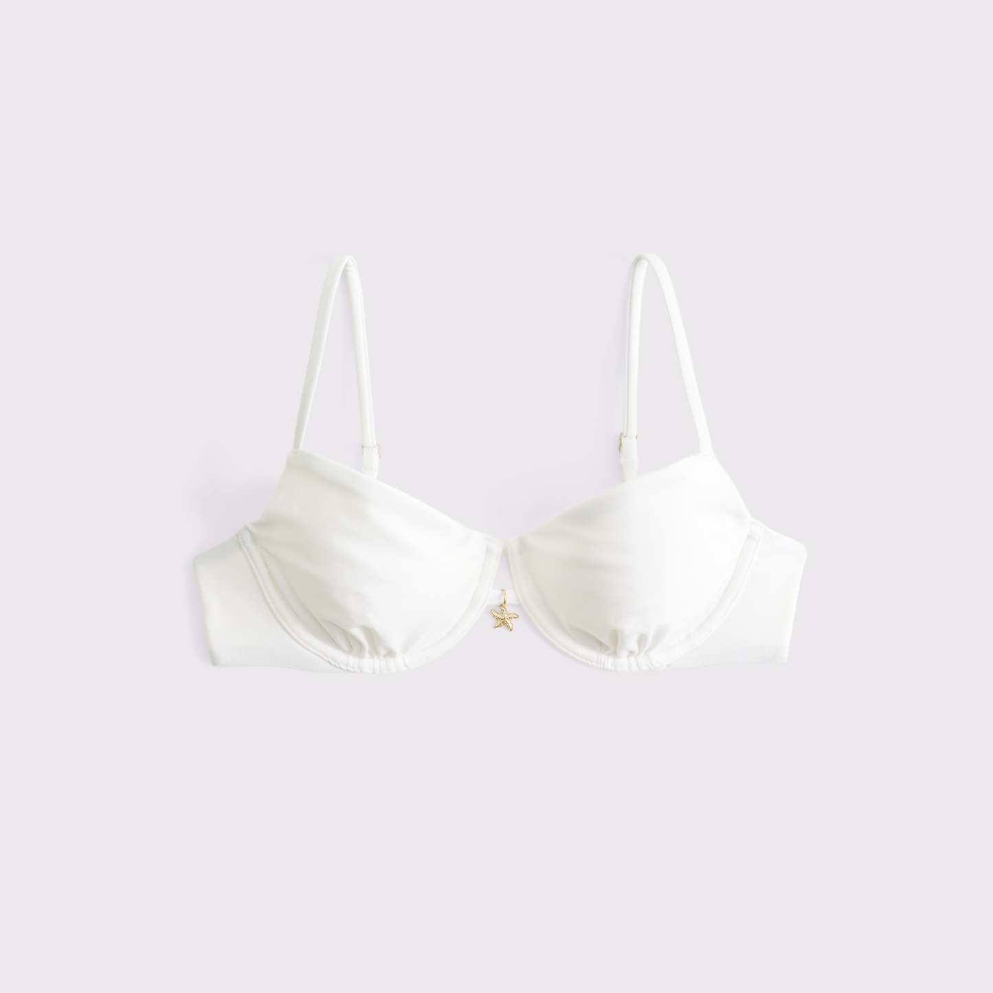 Our underwire bikini top in our core swim fabric. Features unlined cups, a flattering balconette-shaped neckline, adjustable straps and a back hook detail. Imported.