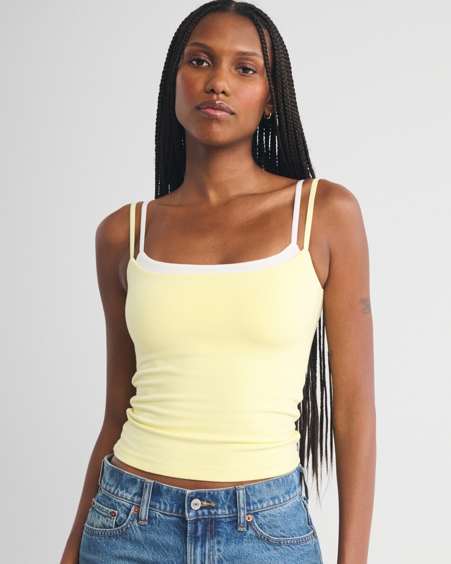Our new collection built to make going bra-free that much smoother. This slim-fitting 90's-style top is in our softAF cotton-blend seamless fabric, featuring double-layer detail, removable pads for added coverage and a square neckline. Our cotton-blend seamless fabric is an ultra soft, brushed jersey fabric, that gives you a casual seamless look. Imported.