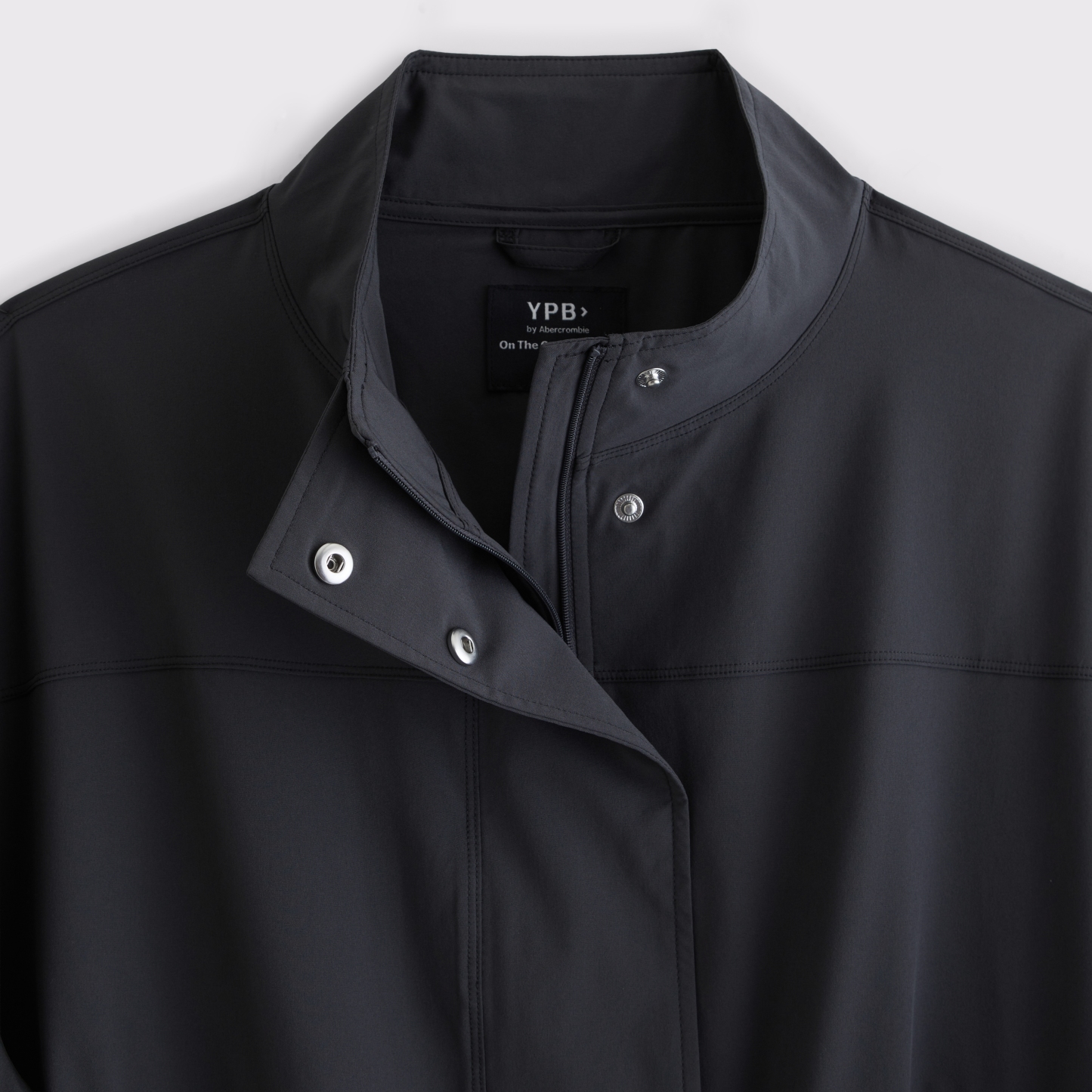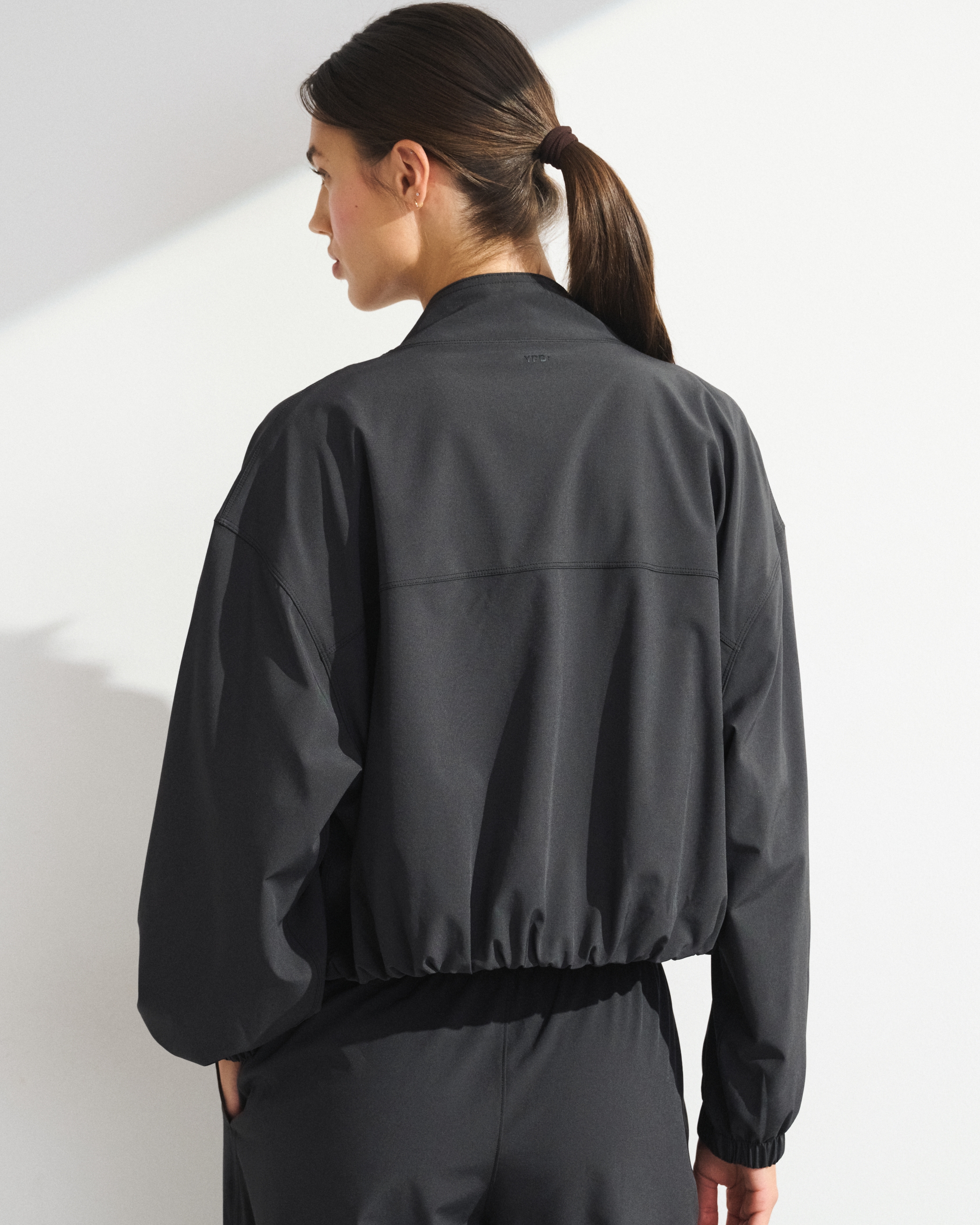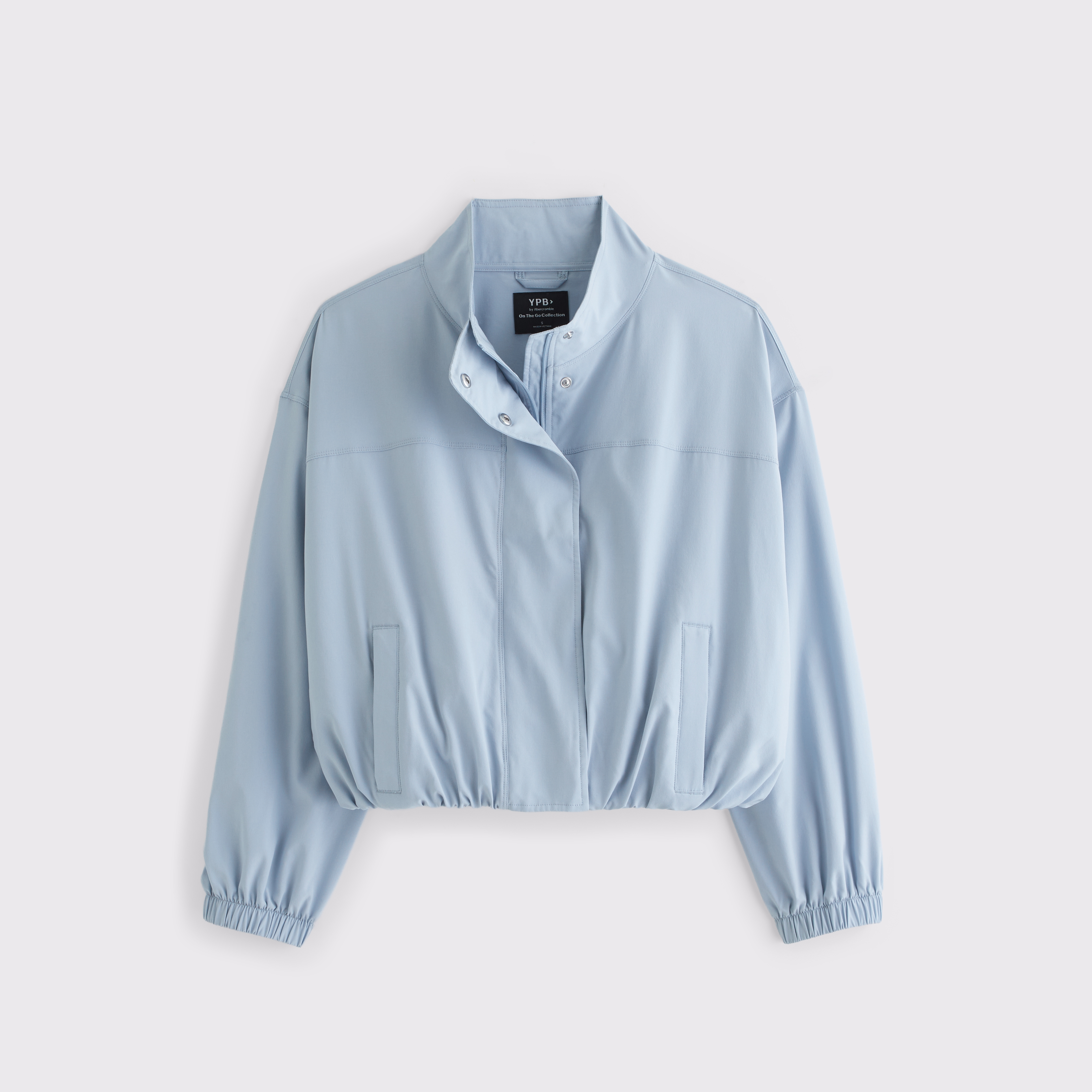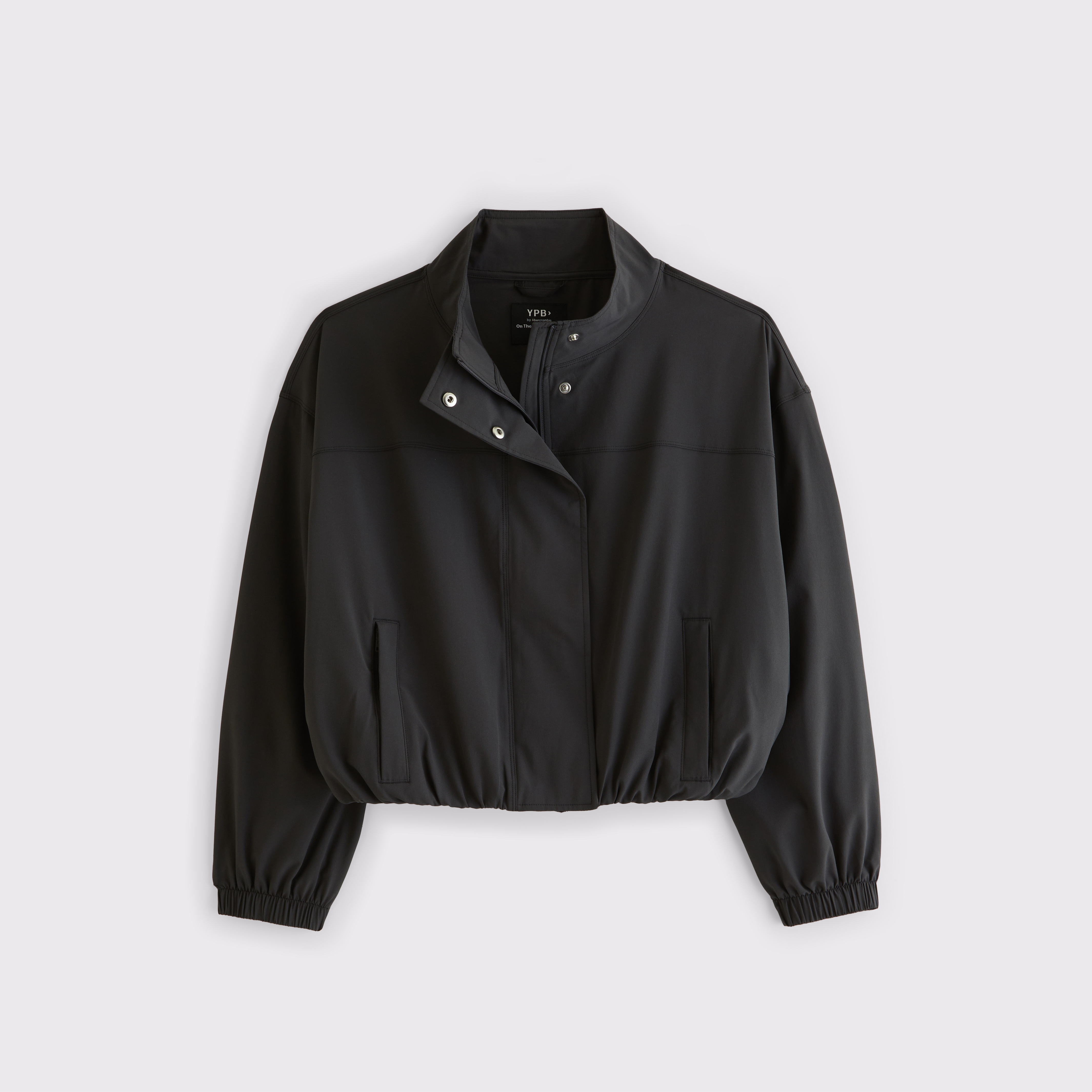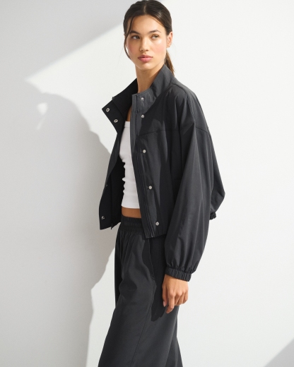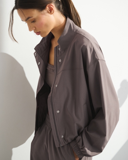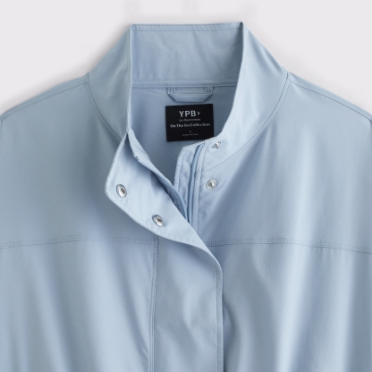 Our easy-fitting jacket in our lightweight motionTEK active fabric. Designed to move with you, our motionTEK fabric is lightweight, stretchy and breathable. Features an easy silhouette, a high-neck collar, zip- and snap-up front, pockets and a cinched hem and cuffs. Perfect to throw on over YPB sets pre- or post-workout. Imported.